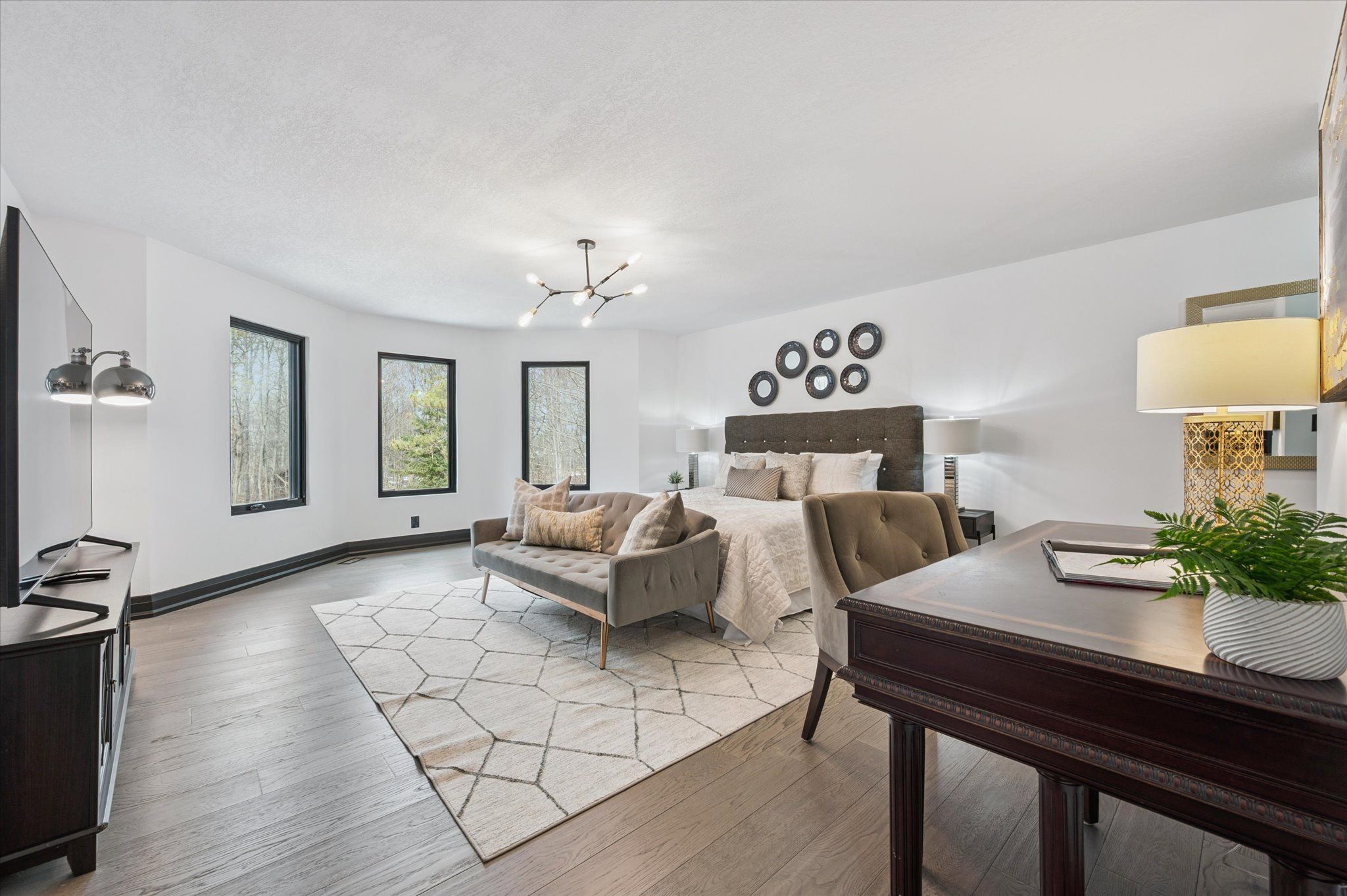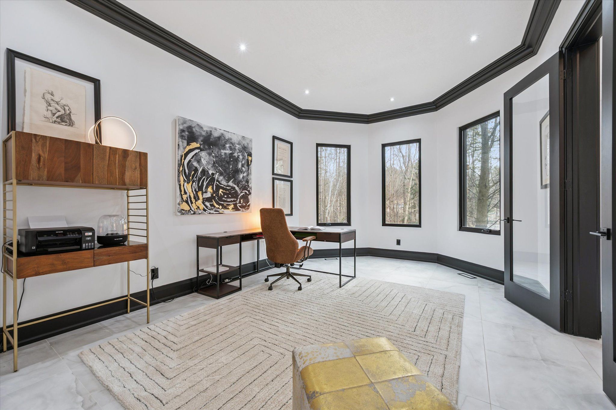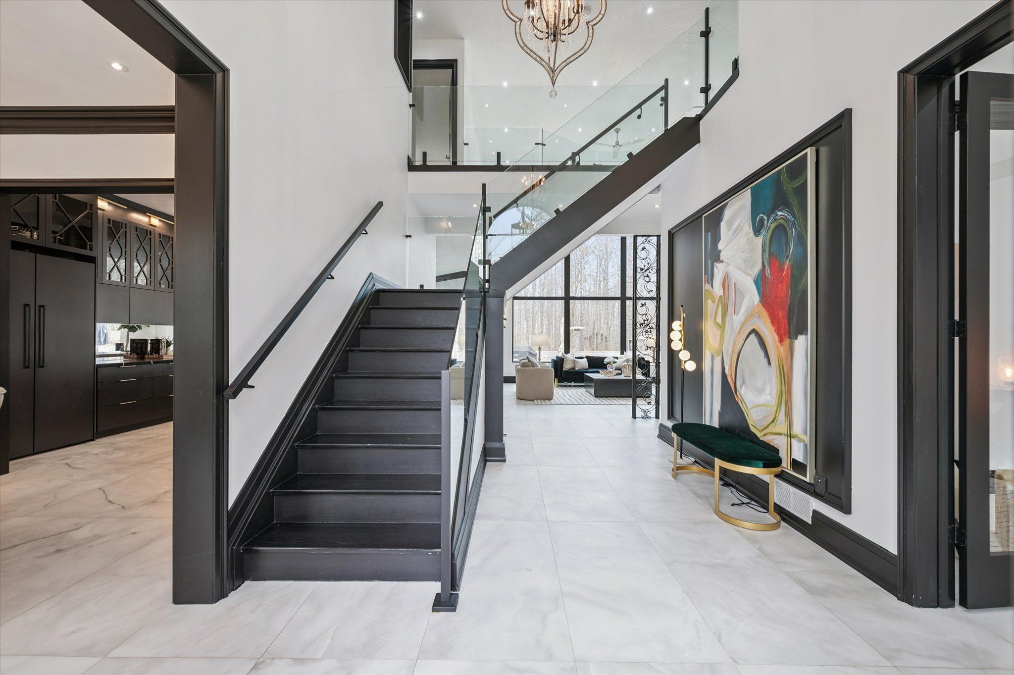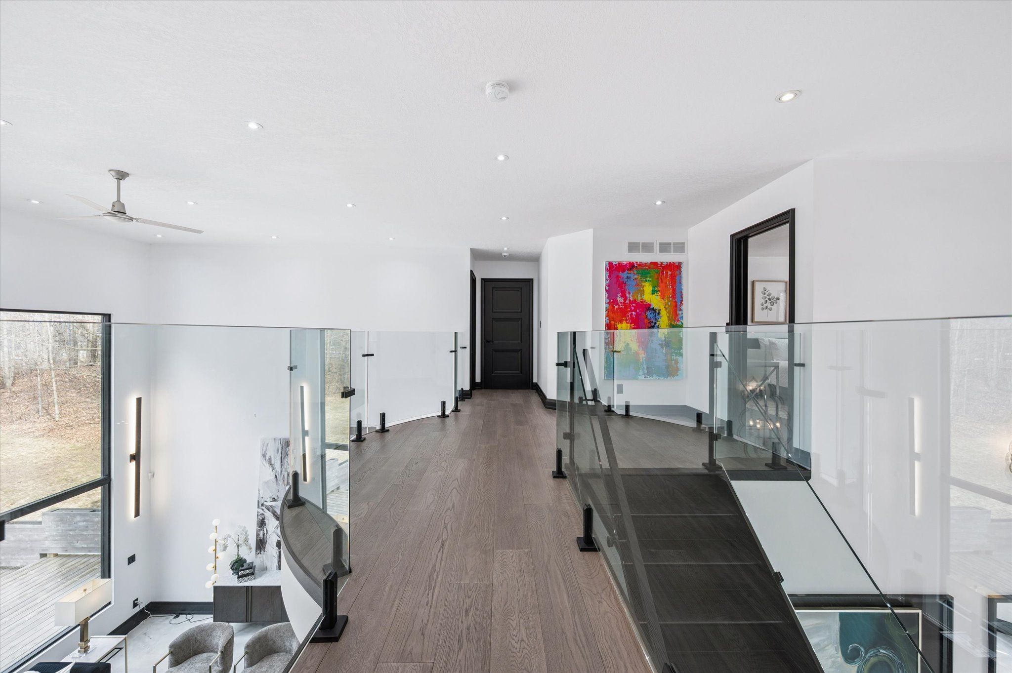 Welcome to a home where country serenity meets contemporary elegance. Set on just over 2 acres of lush, tree-lined property, this exceptional 5-bedroom, 6-bath residence offers a rare blend of modern luxury and natural beauty-creating a truly private and picturesque retreat. Thoughtfully designed with clean architectural lines and an open-concept layout, the home is filled with natural light, seamlessly connecting the indoors with the surrounding landscape. Every detail has been carefully considered to enhance both everyday living and effortless entertaining. At the heart of the home, the gourmet kitchen is a true showpiece-featuring top-of-the-line appliances, abundant storage, and a striking waterfall island that invites gathering and connection. The living area is equally impressive, with soaring ceilings and expansive windows that frame breathtaking views of the backyard oasis. Whether hosting guests or enjoying a quiet evening in, this space offers warmth, comfort, and a constant connection to nature. Step outside to the expansive deck-perfect for morning coffee or long summer evenings under the open sky. The heated saltwater pool introduces a resort-like feel, creating the ultimate setting to relax and unwind. Surrounded by mature trees and open green space, the property offers a sense of peace and privacy that is truly unmatched. Beautiful in every season, the landscape transforms throughout the year-from vibrant autumn colors to peaceful winter snowfall, and the lush greenery of spring and summer. Thoughtfully designed to suit every stage of life, the home features a stunning main floor primary suite, along with four generously sized bedrooms on the second level. Ideally located just minutes from two world-class equestrian facilities and some of the most scenic hiking trails in southwestern ontario, this property also offers convenient access for commuters, with easy routes to pearson international airport and go transit connections to downtown toronto.
