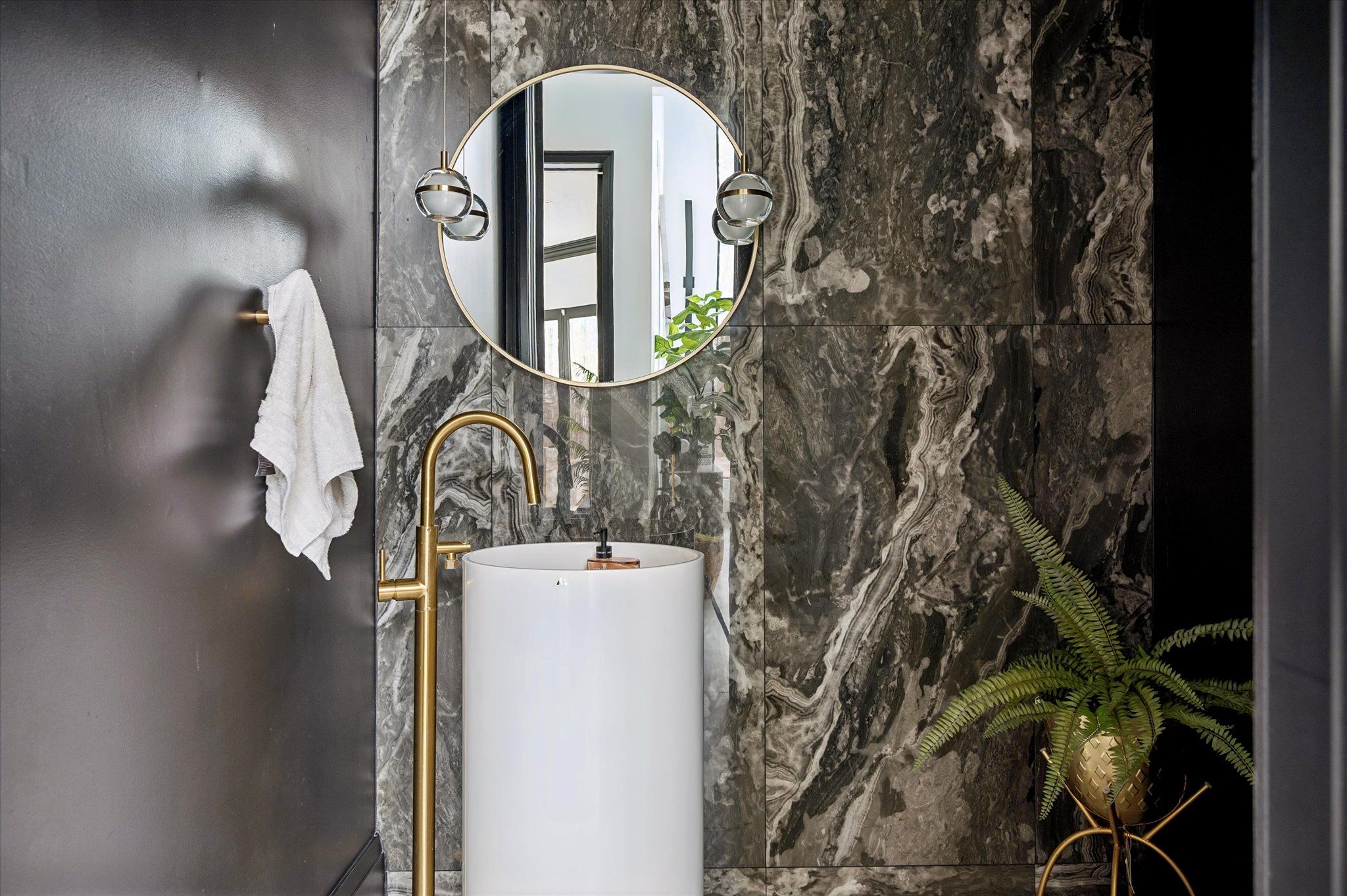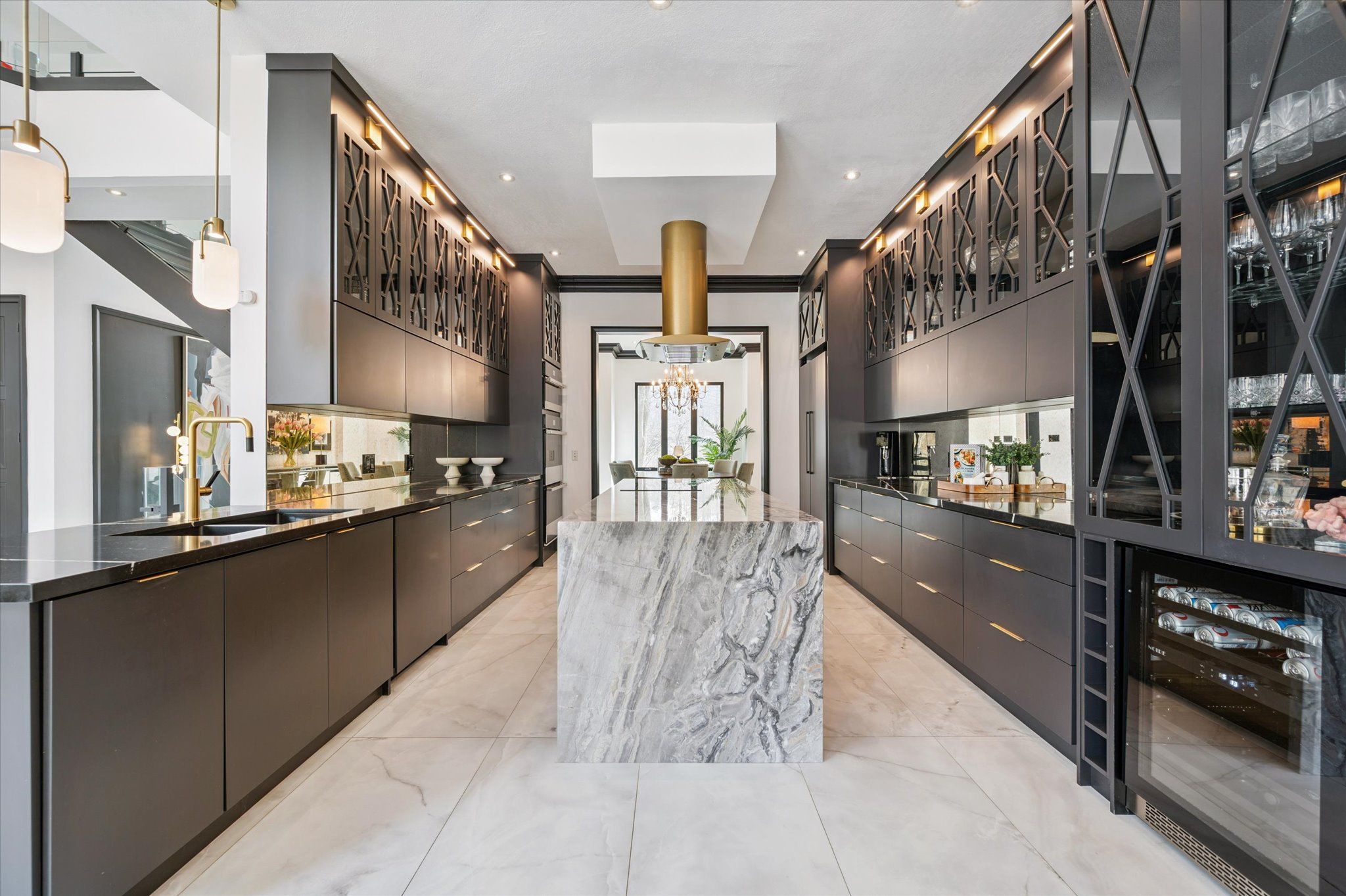 • Gourmet kitchen with high-end appliances and a gathering-friendly waterfall island.