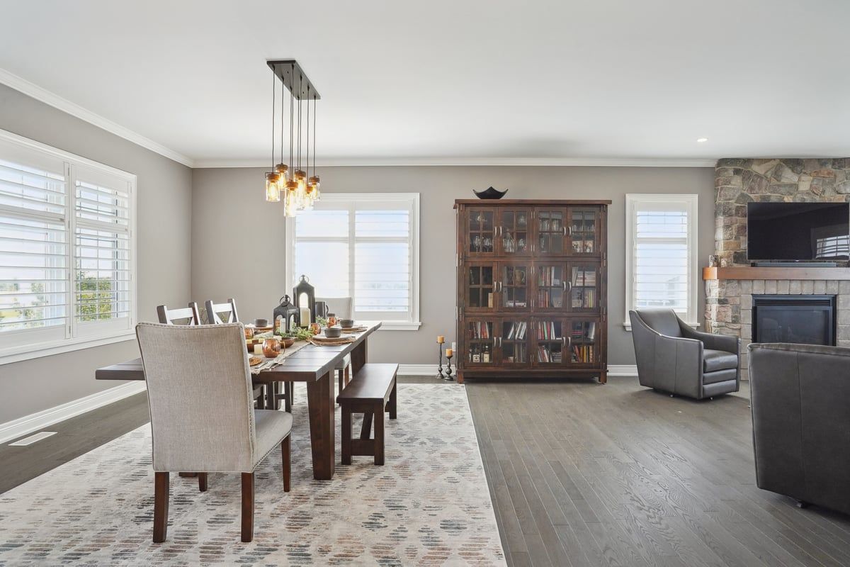 Your new country home is a spectacular open concept bungalow on over 3 professionally landscaped acres. Executive chef kitchen that includes a 48" dual fuel wolf range w/matching wolf pro range hood. A 36" sub-zero fridge, integrated kitchen aid dishwasher. The solid maple kitchen cabinetry is finished with a cambria quartz counter top. The oversize dining room space has a walk-out to sun deck/bbq area. Open concept to the living room where the center piece is a stone surround wood mantle gas fireplace. Large windows come complete with 4 1/2' wide eclipse shutters throughout the entire home. Primary ensuite has heated tile floors, heated towel bar & a large walk-in closet. Plus, a walkout to sun deck. The main floor has 3. 25" ash hardwood throughout. The finished basement has radiant in- floor heating throughout. A lrg 4th bedroom (in-law space) & large office. The exercise room has quick fit interlocking rubber gym tile and has walkout to ground level.