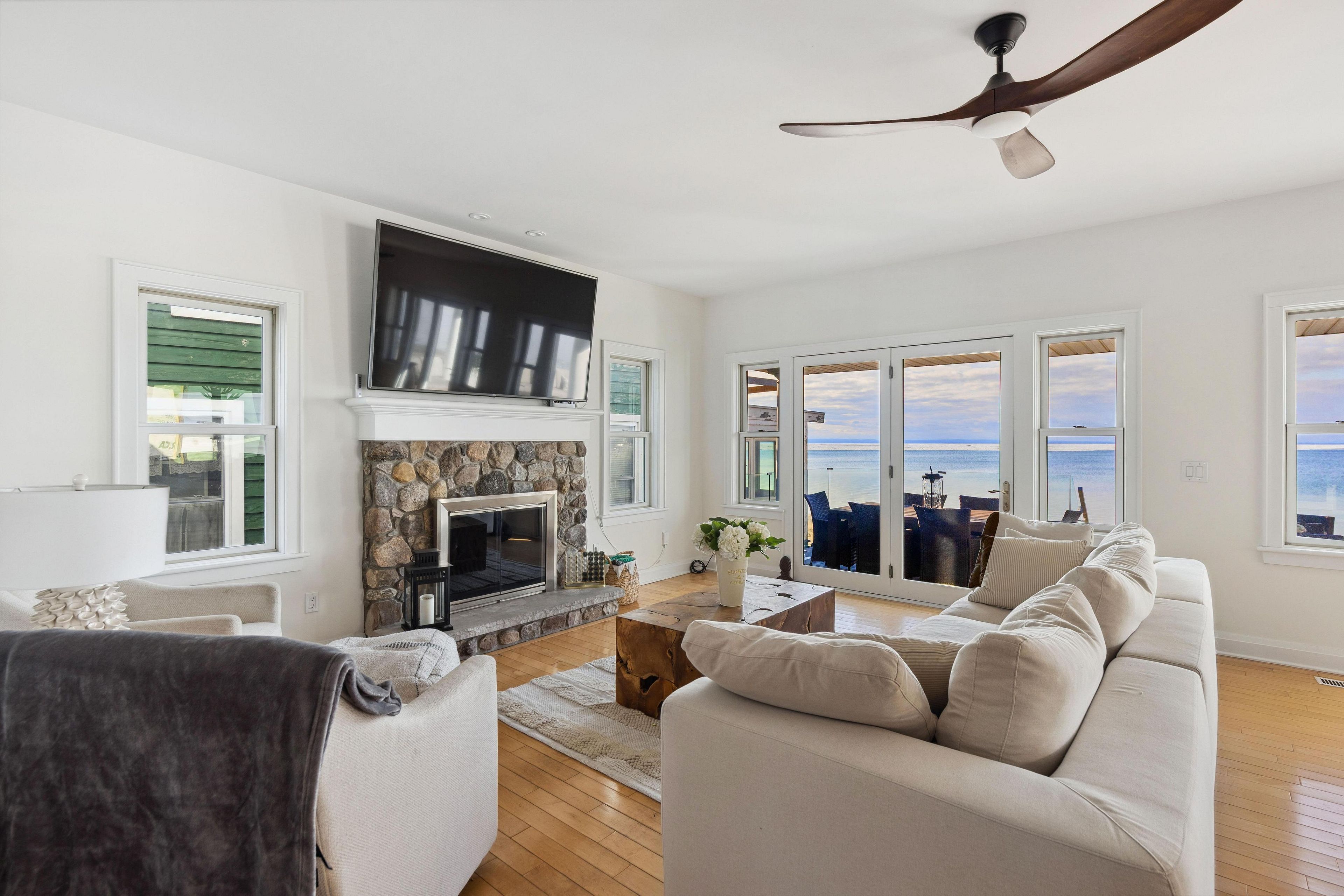 • Expansive lake views from every window and spacious deck for gatherings.