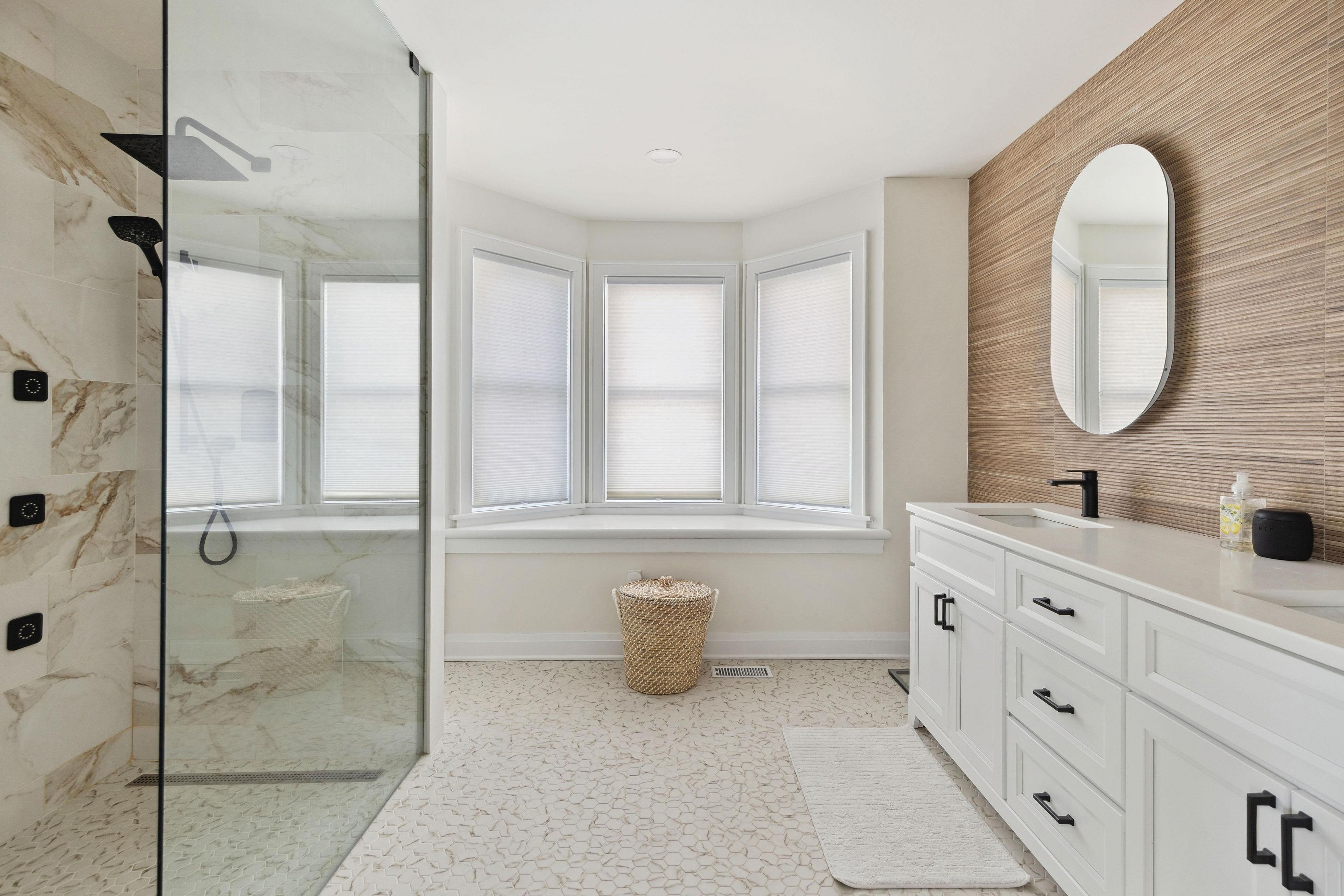 • Three bedrooms with charming bay windows for beautiful views.