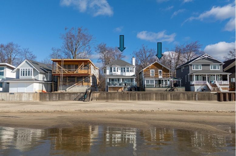 • Two side-by-side lakefront properties with direct access to a sandy beach.