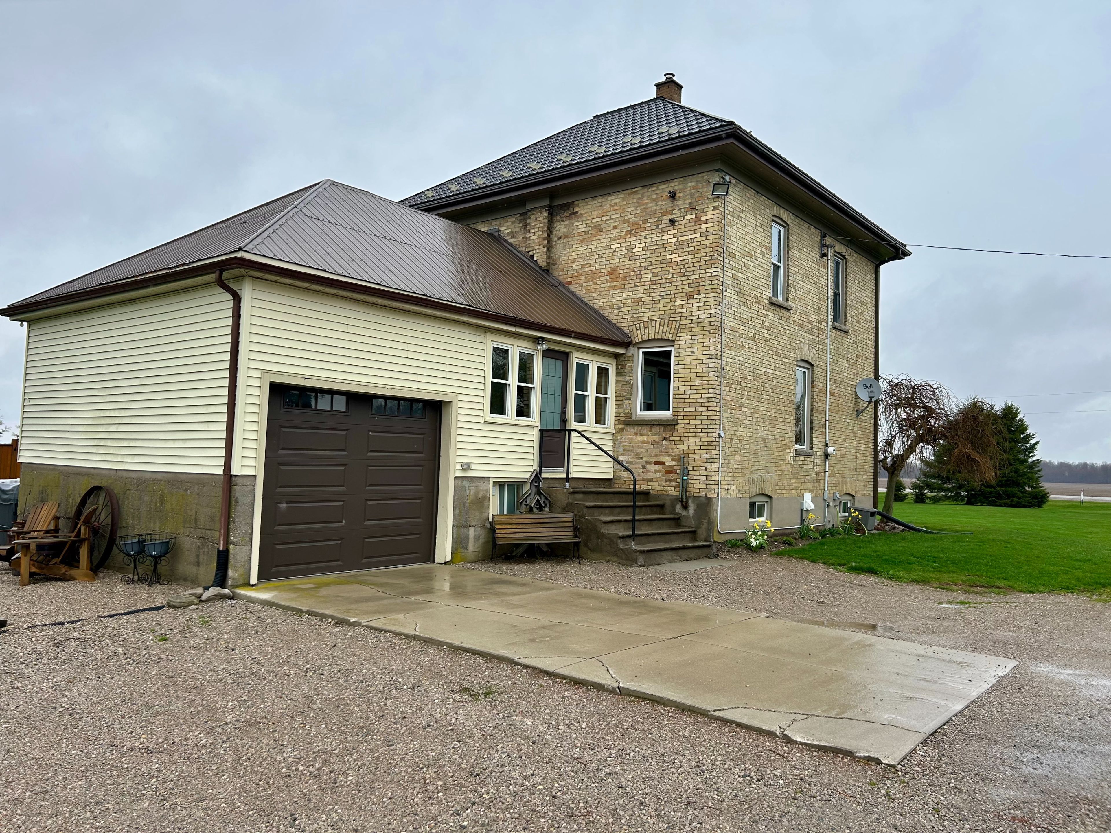 Charming yellow-brick century home set on a picturesque country property surrounded by open skies and mature trees. This stunning property blends timeless character with thoughtful modern updates. Original details such as tall ceilings, oversized baseboards and large windows highlight the home's historic appeal, while the renovated kitchen offers today's must-have features. Enjoy ceiling-height cabinetry, a farmhouse sink, stainless steel appliances, and a spacious kitchen island - the perfect hub for everyday living and entertaining. Bright, generous principal rooms provide comfortable living space, complemented by well-sized bedrooms and peaceful countryside views. Tasteful updates throughout ensure modern convenience without compromising charm. The expansive yard offers privacy, green space, and endless potential for gardens, or simply enjoying rural living - all within easy reach of nearby amenities. A rare opportunity to own a beautifully updated century home in a serene country setting.