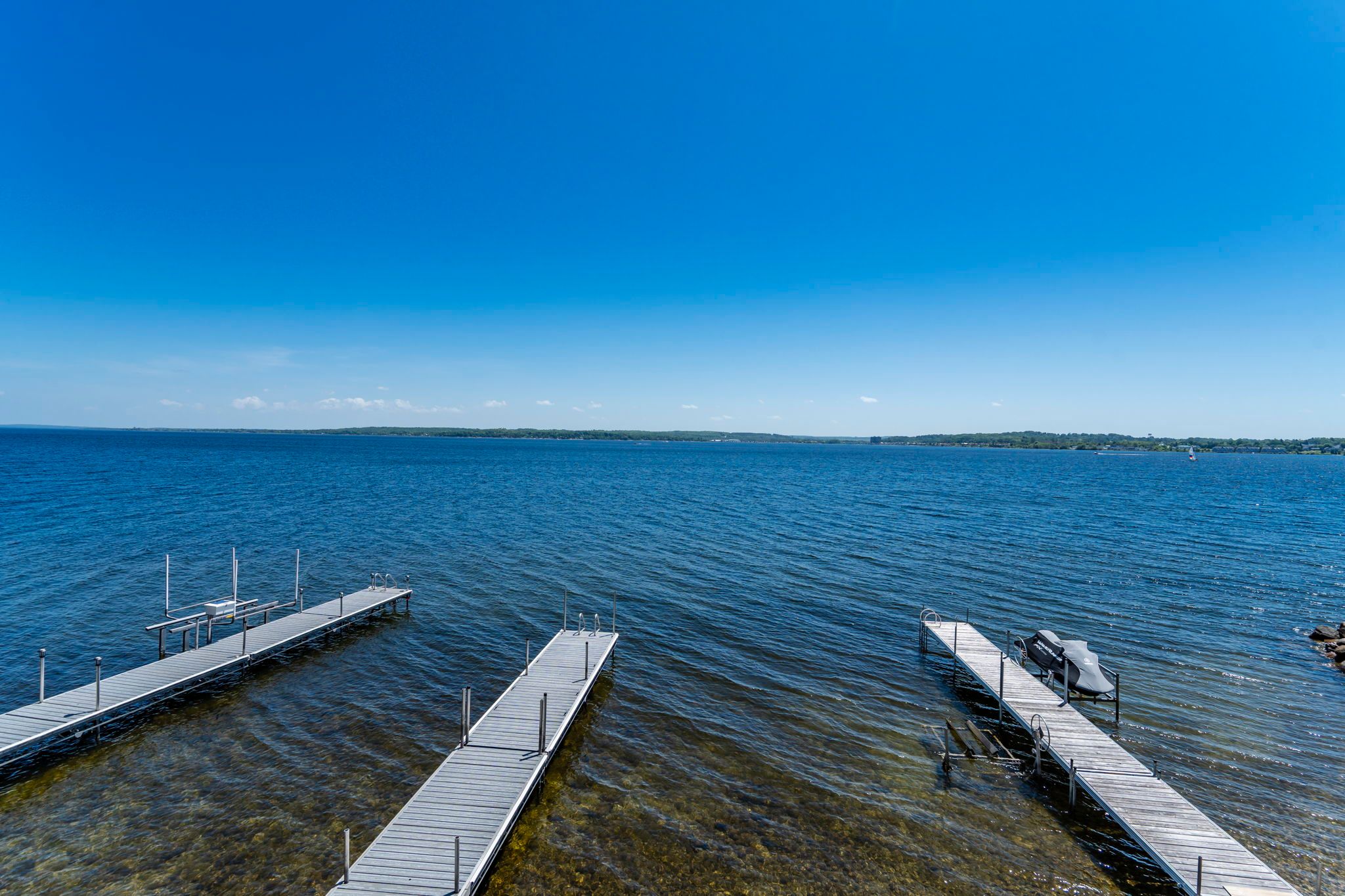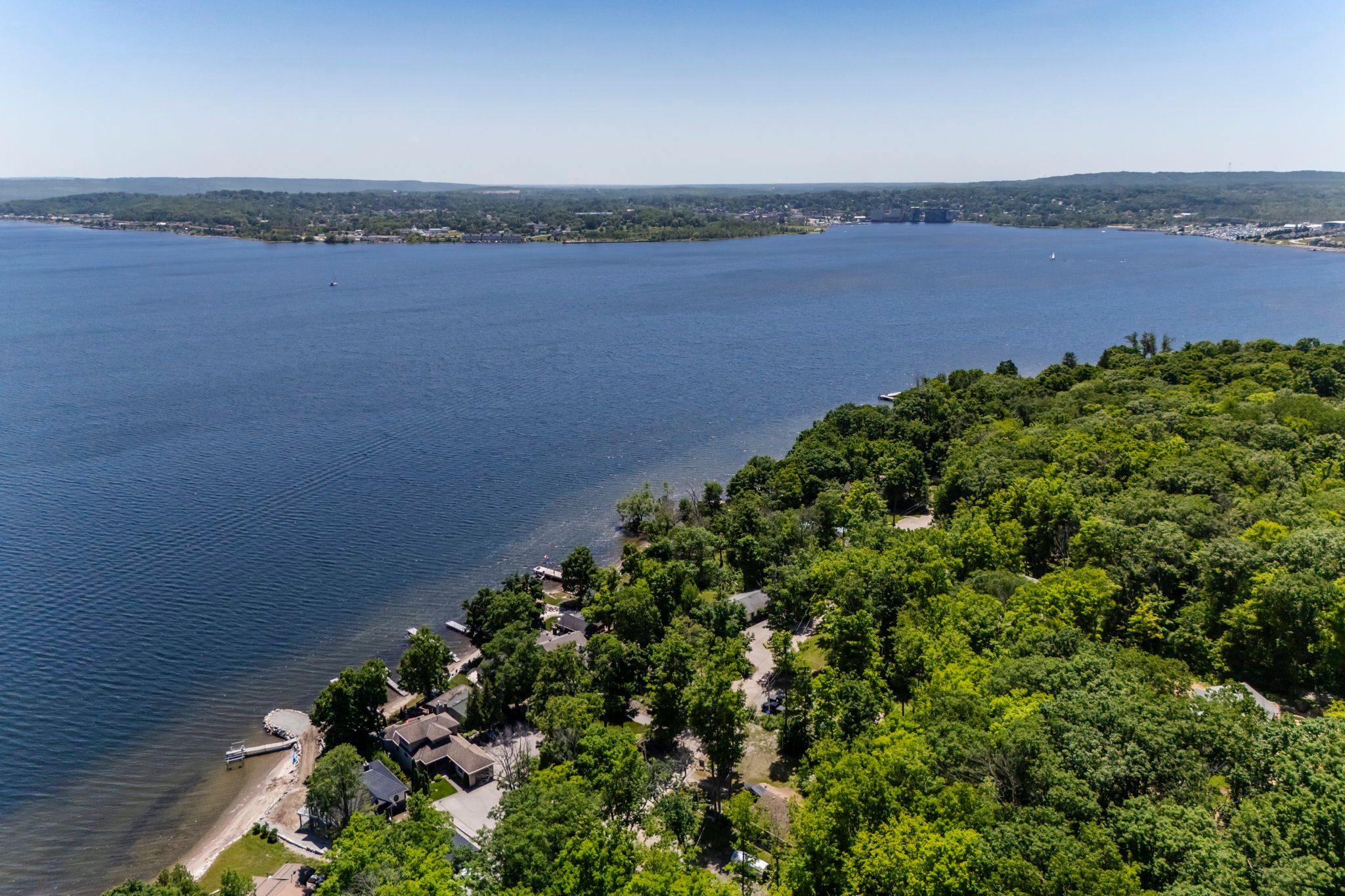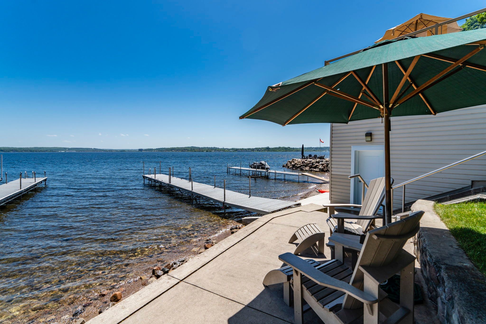 • 48 feet of south-facing shoreline with renovated pier and dock for water access.