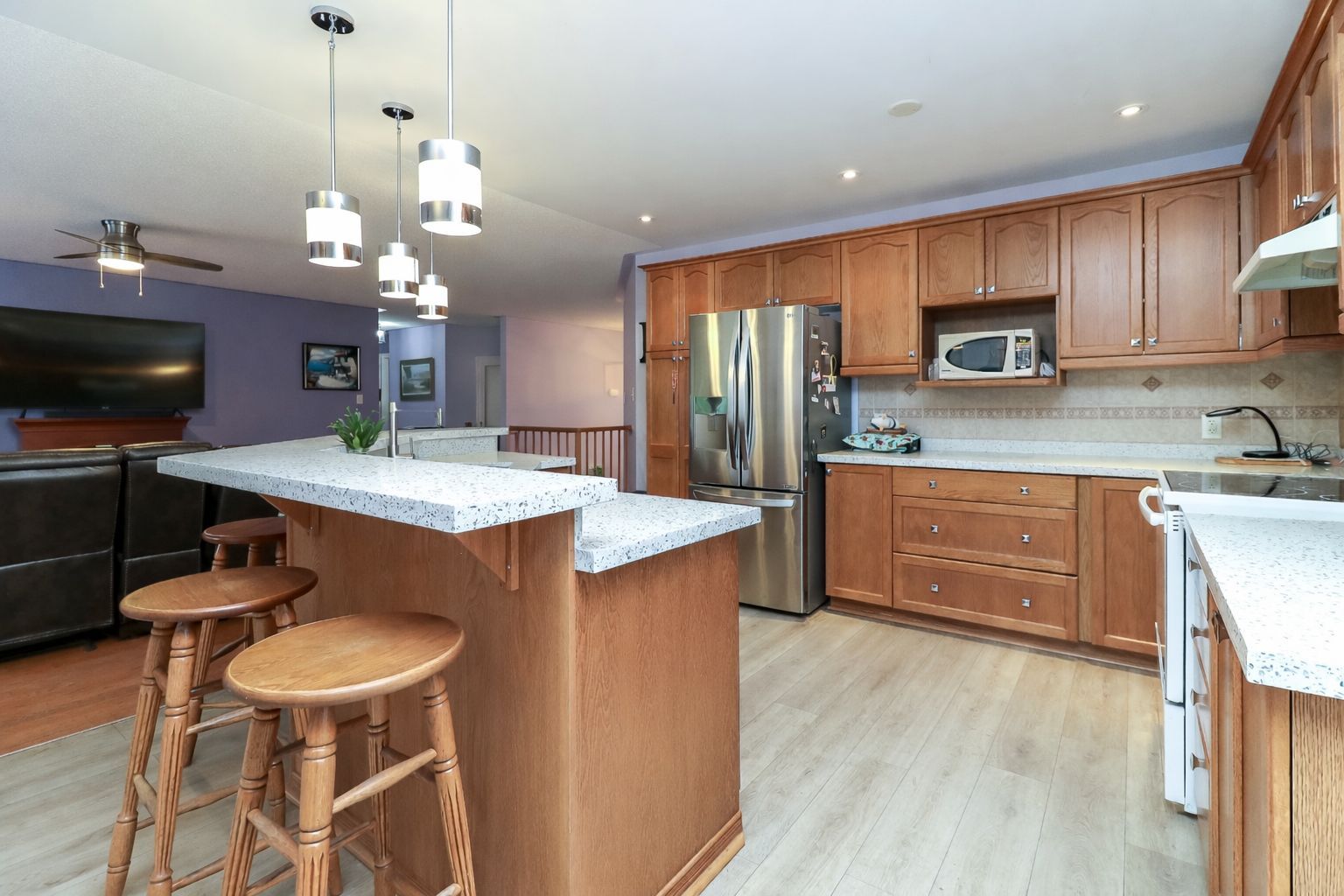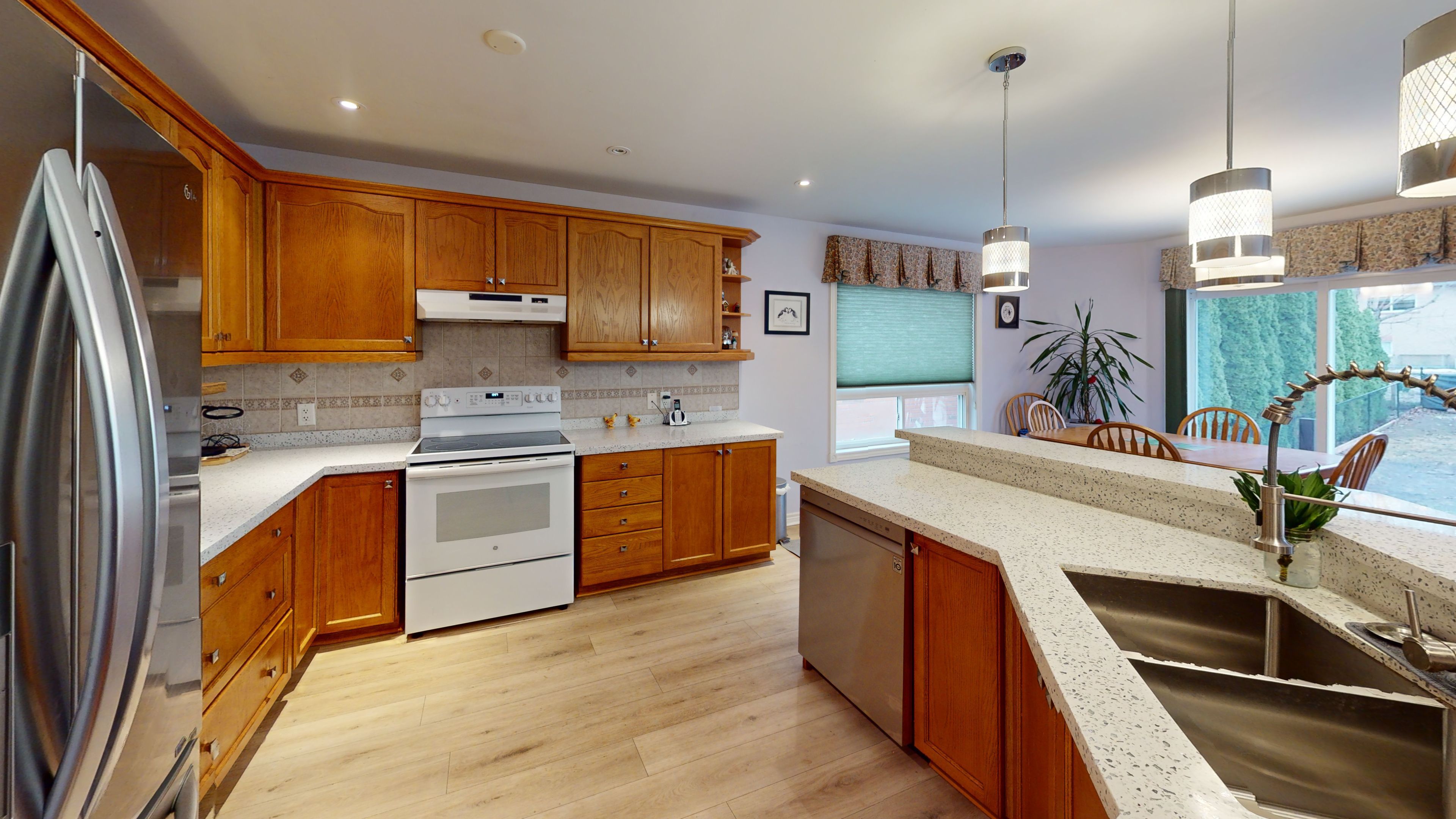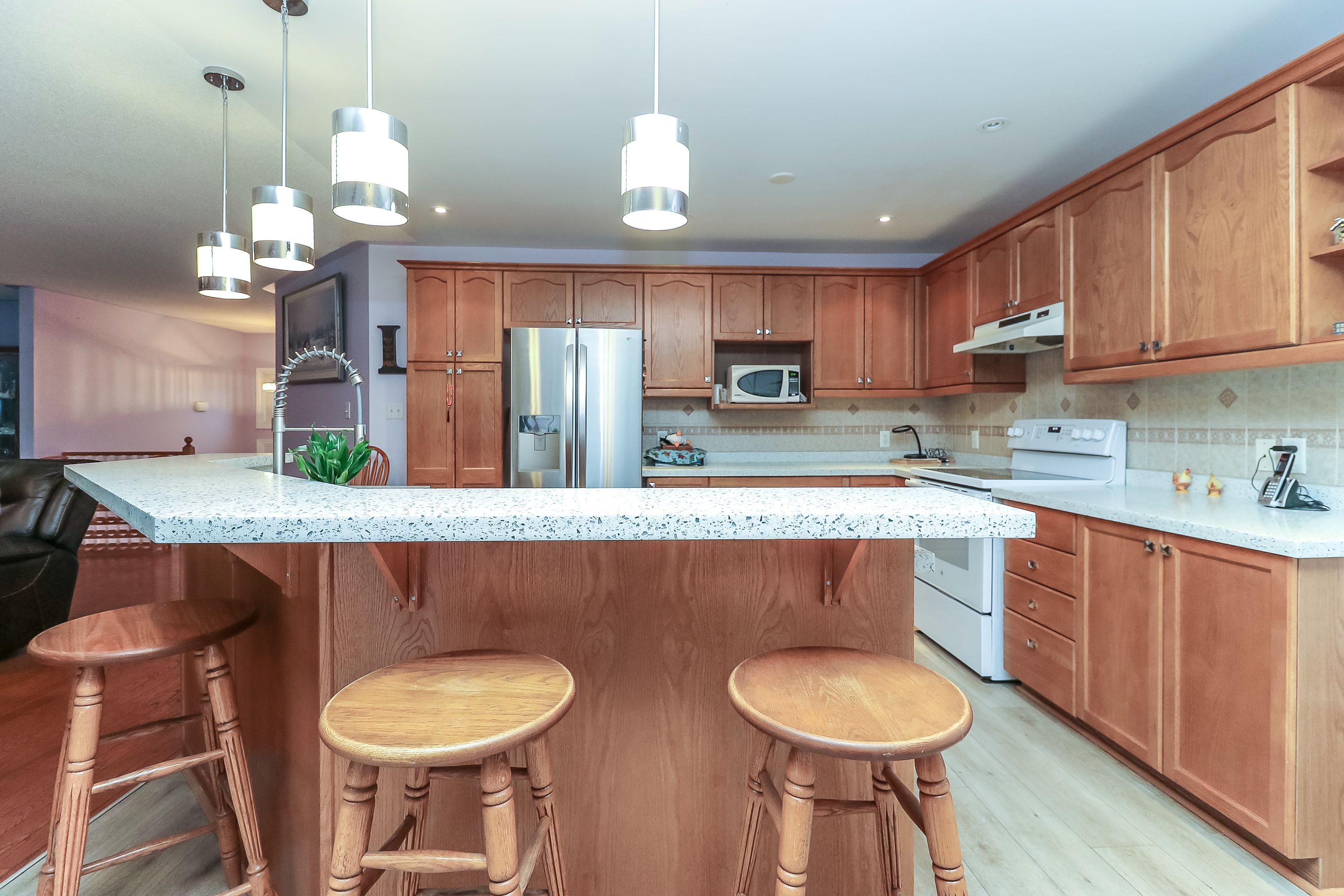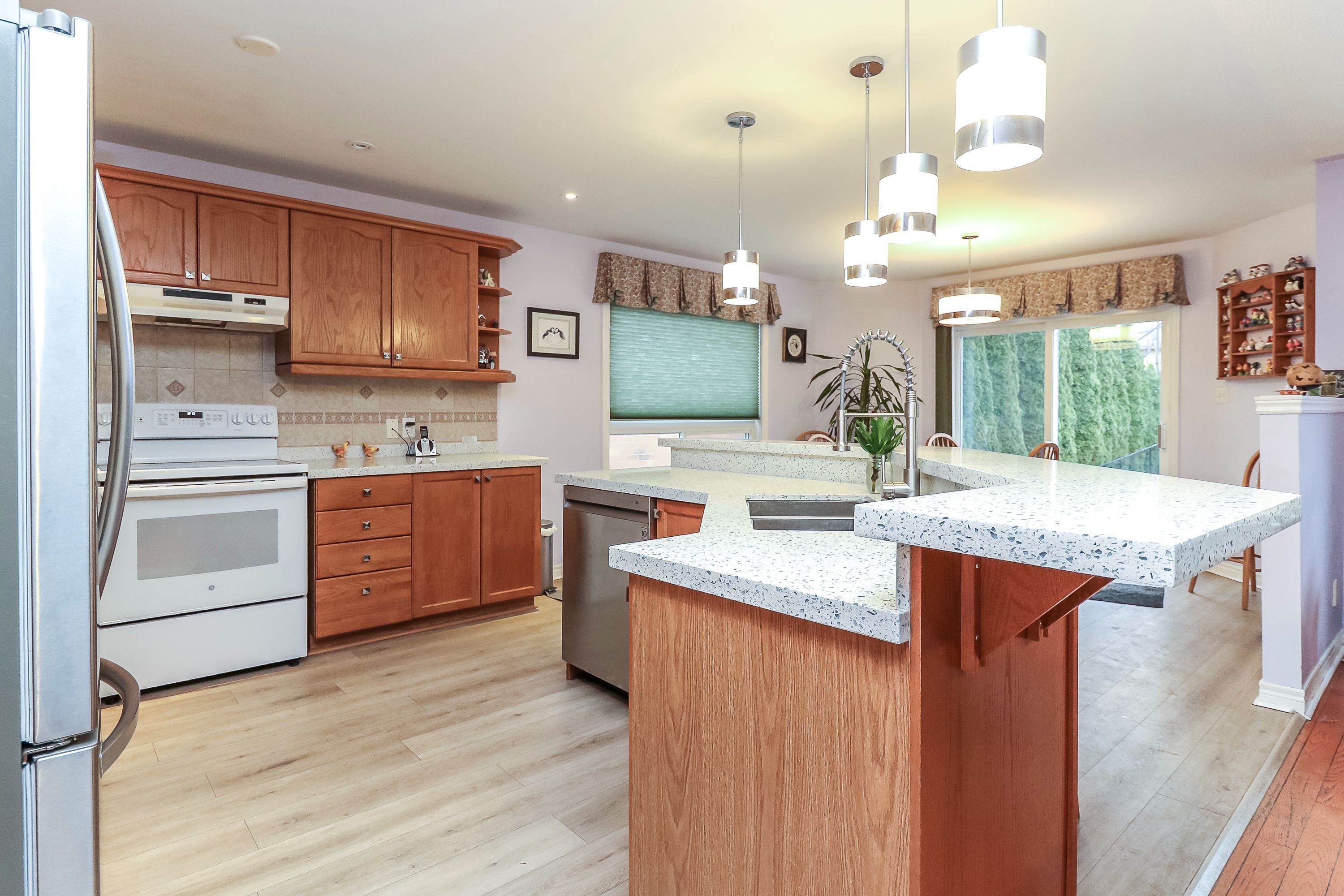 • Stylish upgraded kitchen featuring quartz countertops and updated flooring.