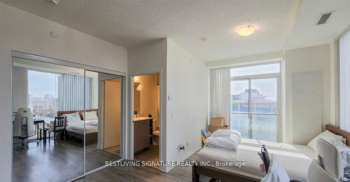 Welcome to the fabrik condo by menkes! Conveniently located in heart of queen west, rarely offered corner studio unit. This sun-filled studio unit offers spacious open concept layout surrounded with floor-to-ceiling windows. Modernized unit with integrated kitchen, closet organizers, and hardwood flooring. Steps from shopping district, restaurant, public transit & experience toronto nightlife. Overlooking downtown toronto skyline.