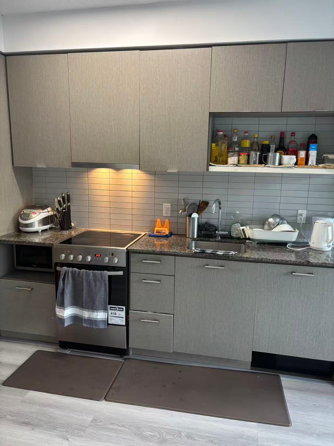 "shared one room with bathroom", live in toronto's fashion district at fabrik condos at richmond and spadina. Ensuite laundry, stainless steel kitchen appliances included. Engineered hardwood floors, granite countertops + balcony with south views. Steps from spadina streetcar & ttc, queen street shopping, university of toronto, built-in fridge & dishwasher, stove, stack washer & dryer, existing window coverings. **extras** built-in fridge & dishwasher, existing window coverings. Rooftop amenities include garden, lounge, gym and bbq area. Come to see it and you will live it.