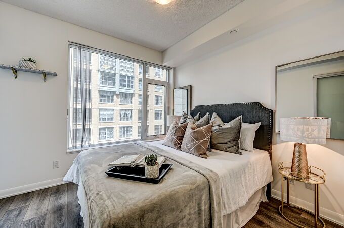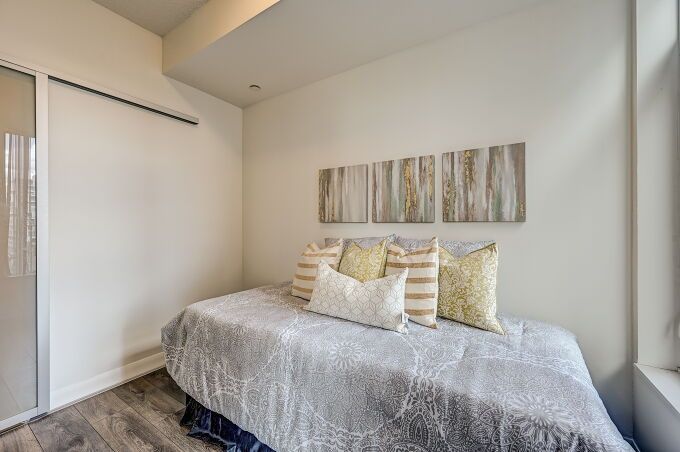 "the fabrik residences" heart of fashion district, down town toronto. Move in to your dream home . Stunning 3 bedrooms layouts over 800 sqft. Steps to 510 spadina street car. 5 minutes to u of t. Walk to restaurants, row/boutique/cafes/galleries/theatres/parks. Gorgeous rooftop amenities with soaring views. Walk score 100,transit score 100, 24 hours gym.