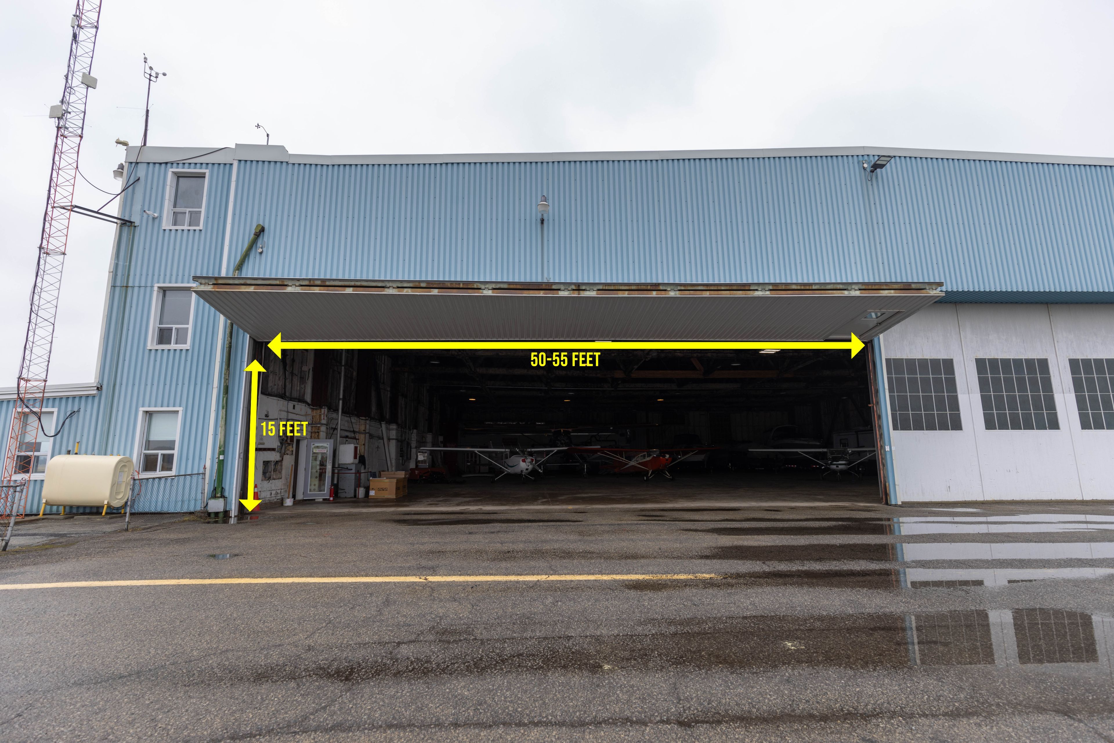 • Large airport hangar with 14,700 square feet of flexible open space.
