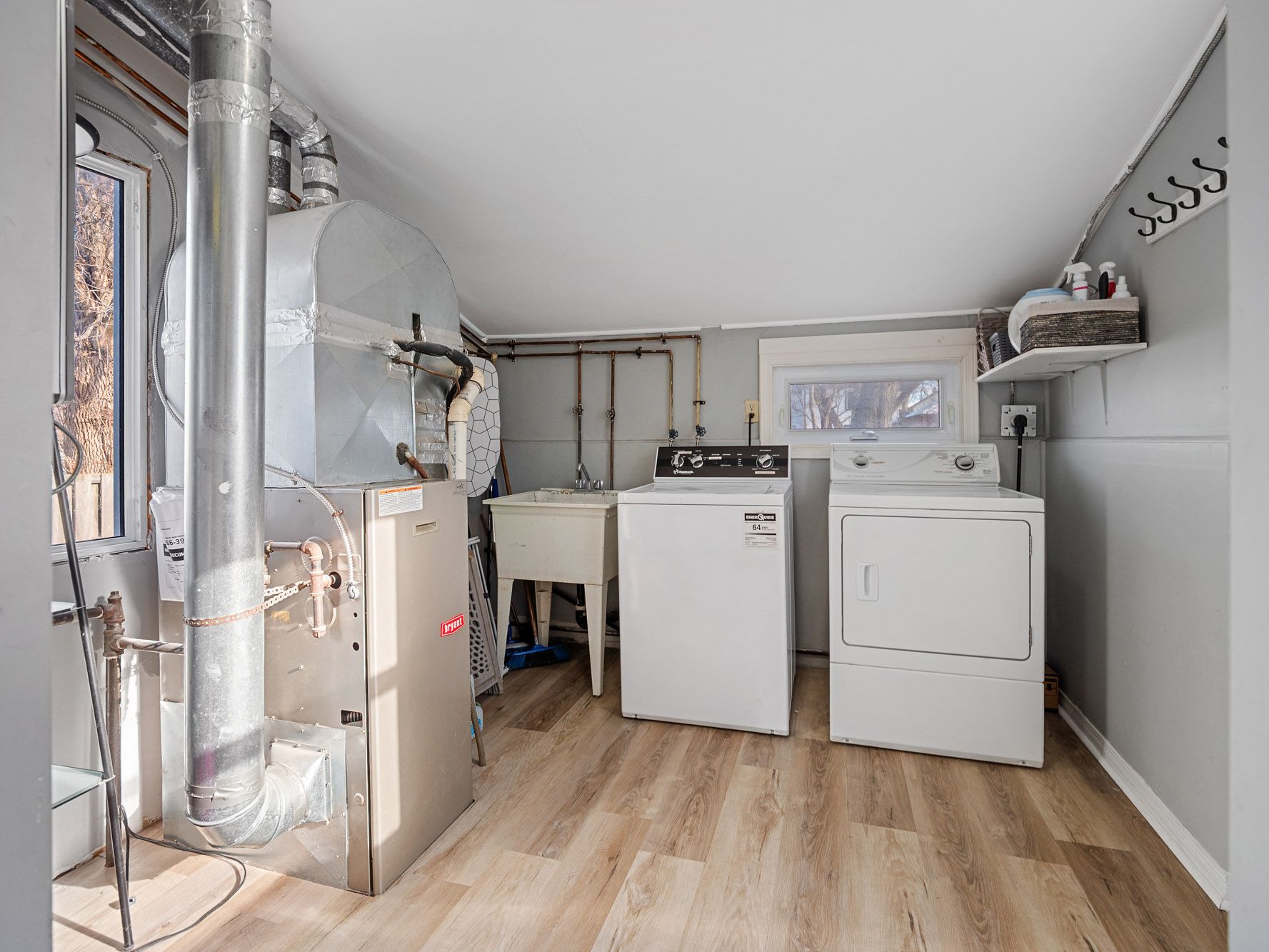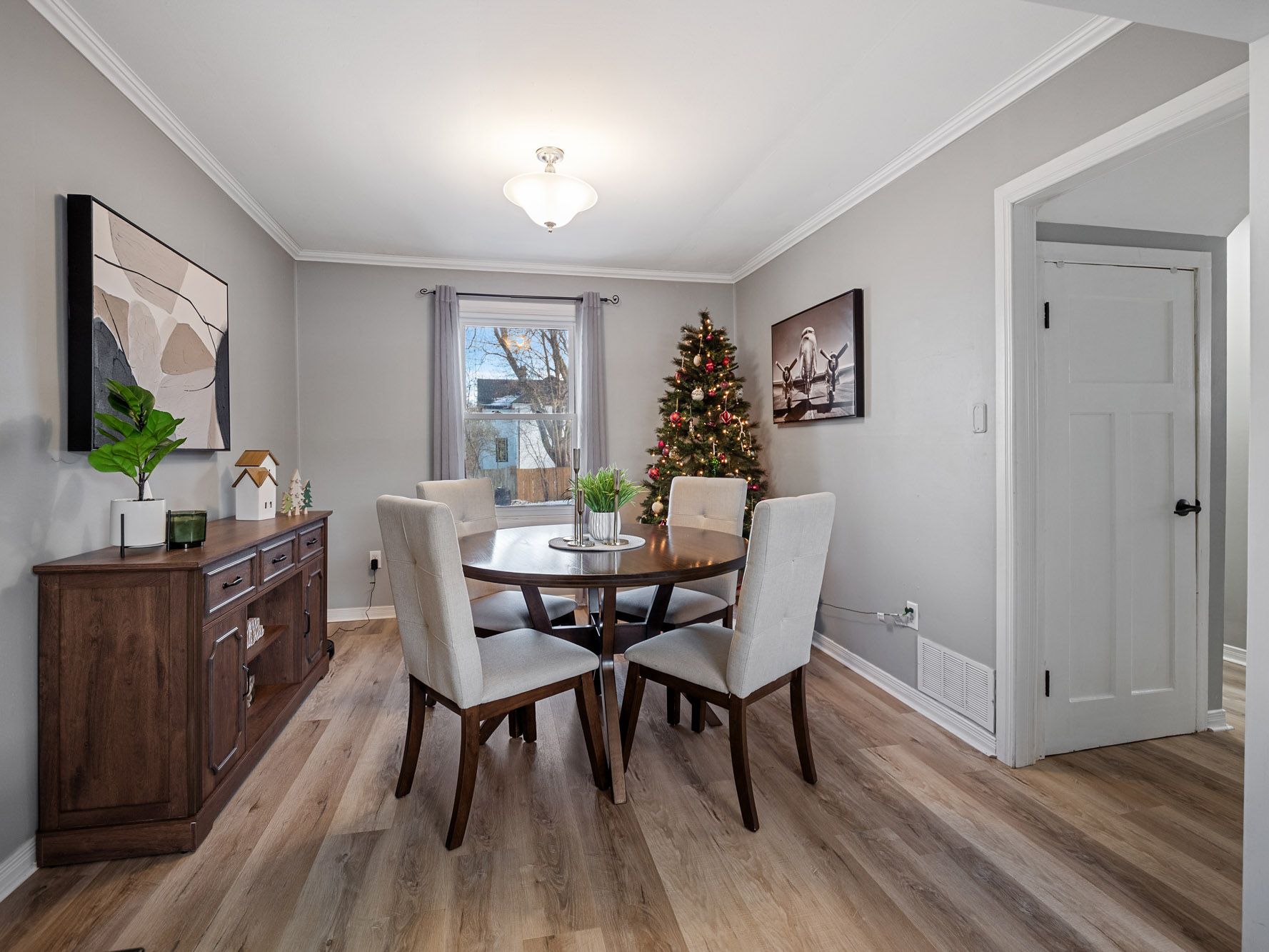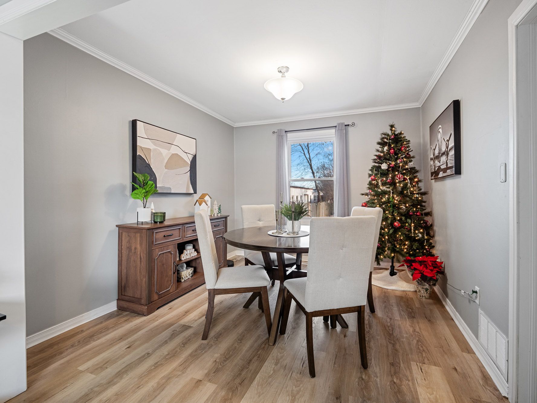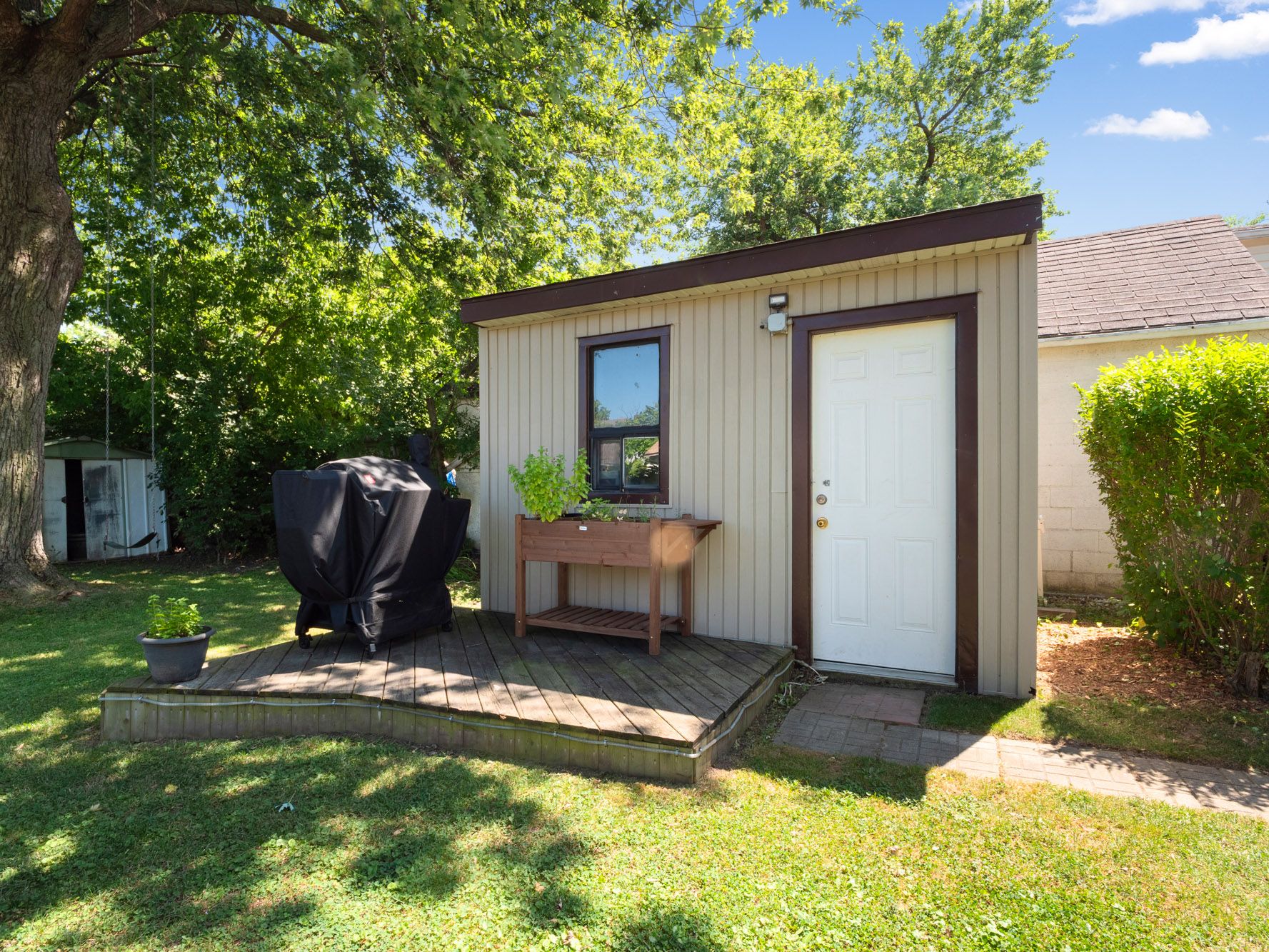 A wonderful opportunity for first time home buyers in niagara falls. This welcoming one and a half storey home sits on a mature tree lined lot and offers an inviting blend of comfort and updates, beginning with a bright kitchen featuring stylish white cabinetry (updated 2021), stainless steel appliances and generous counter space along with a convenient coat closet at the main entry. Sun filled dining and living areas highlight the updated vinyl flooring and large windows that create an open and airy feel throughout the main floor. The four-piece bathroom offers a tiled tub and extra storage, and the main floor laundry adds everyday ease. Upstairs you will find two spacious bedrooms each large windows (2021). The backyard is a true extension of the living space with a private outdoor setting that includes a relaxed fire pit seating area, a gazebo, a powered shed plus room to enjoy the mature trees that surround the space. Located close to schools, parks, library and community center, this home is move in ready and offers incredible value for first time buyers looking for comfort, convenience and a place to make their own.