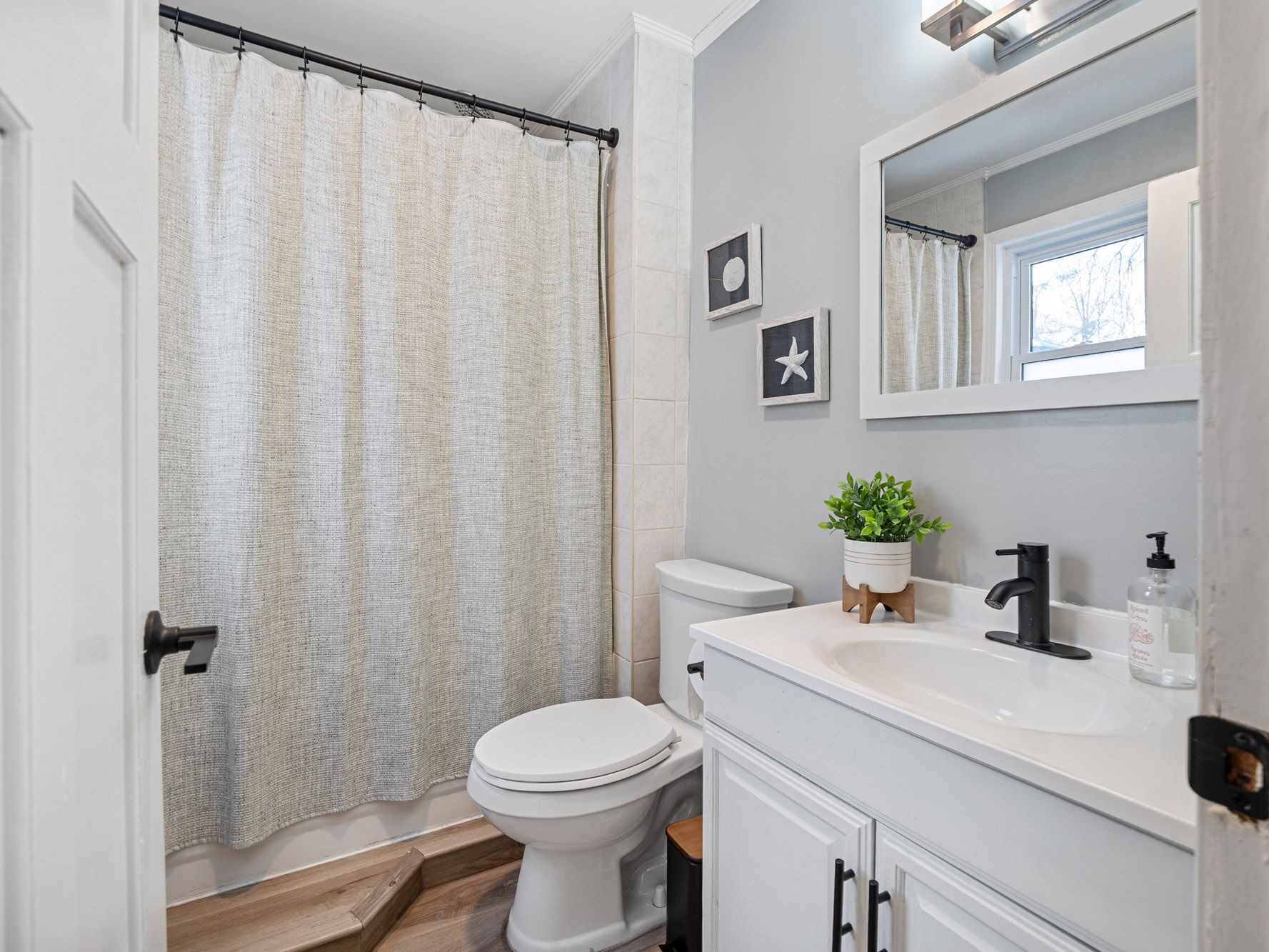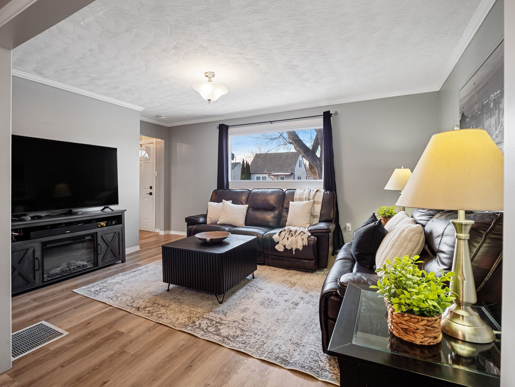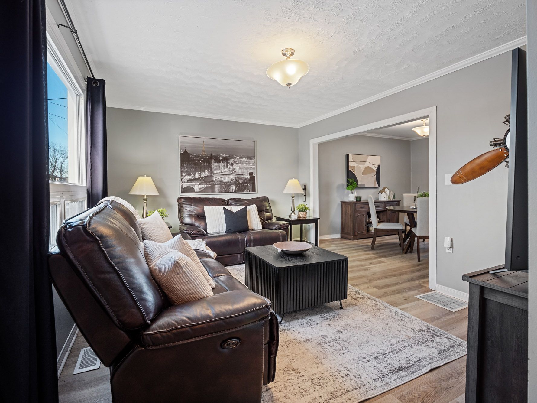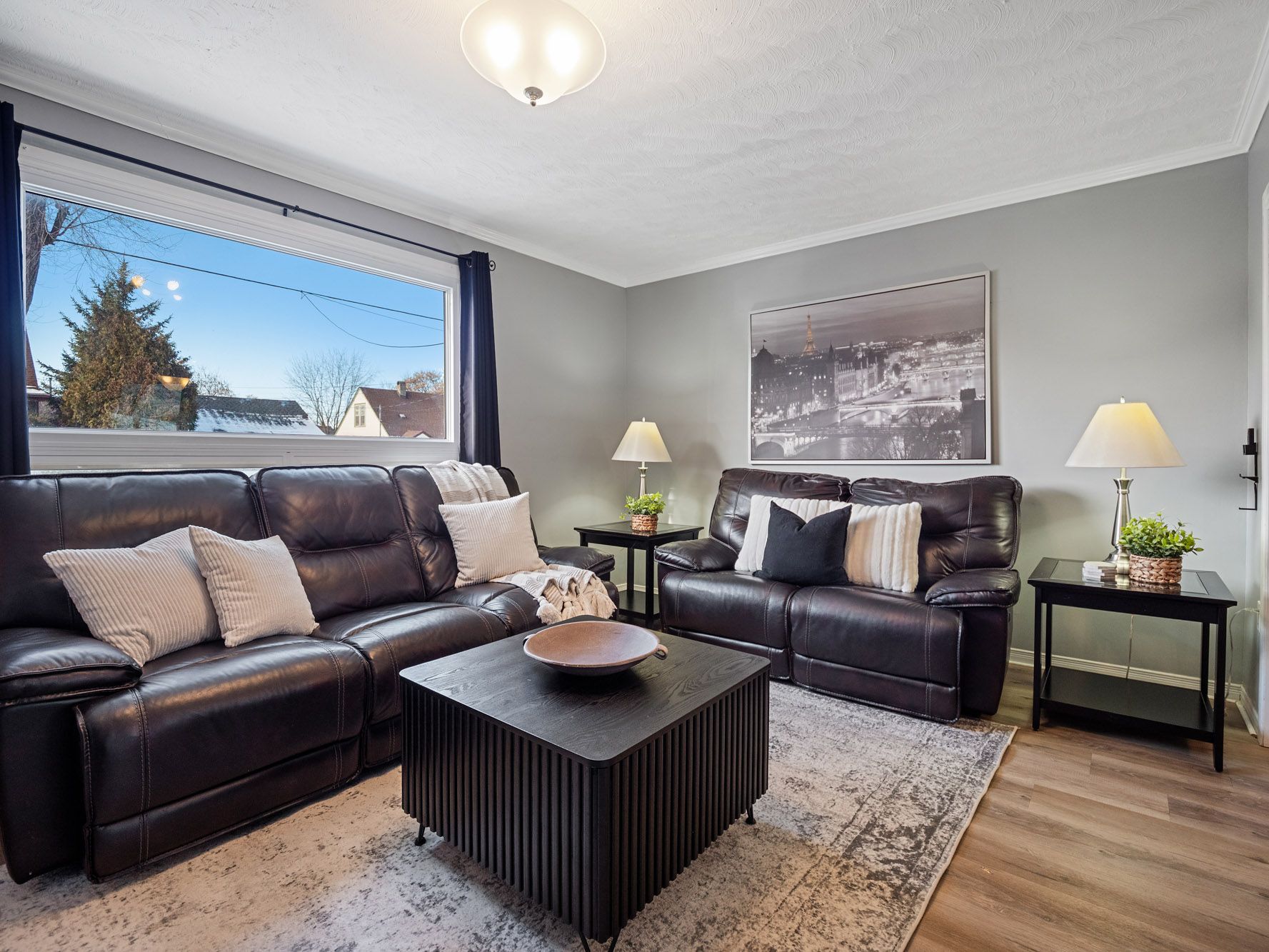 • Sun-filled living areas with updated vinyl flooring and large windows.