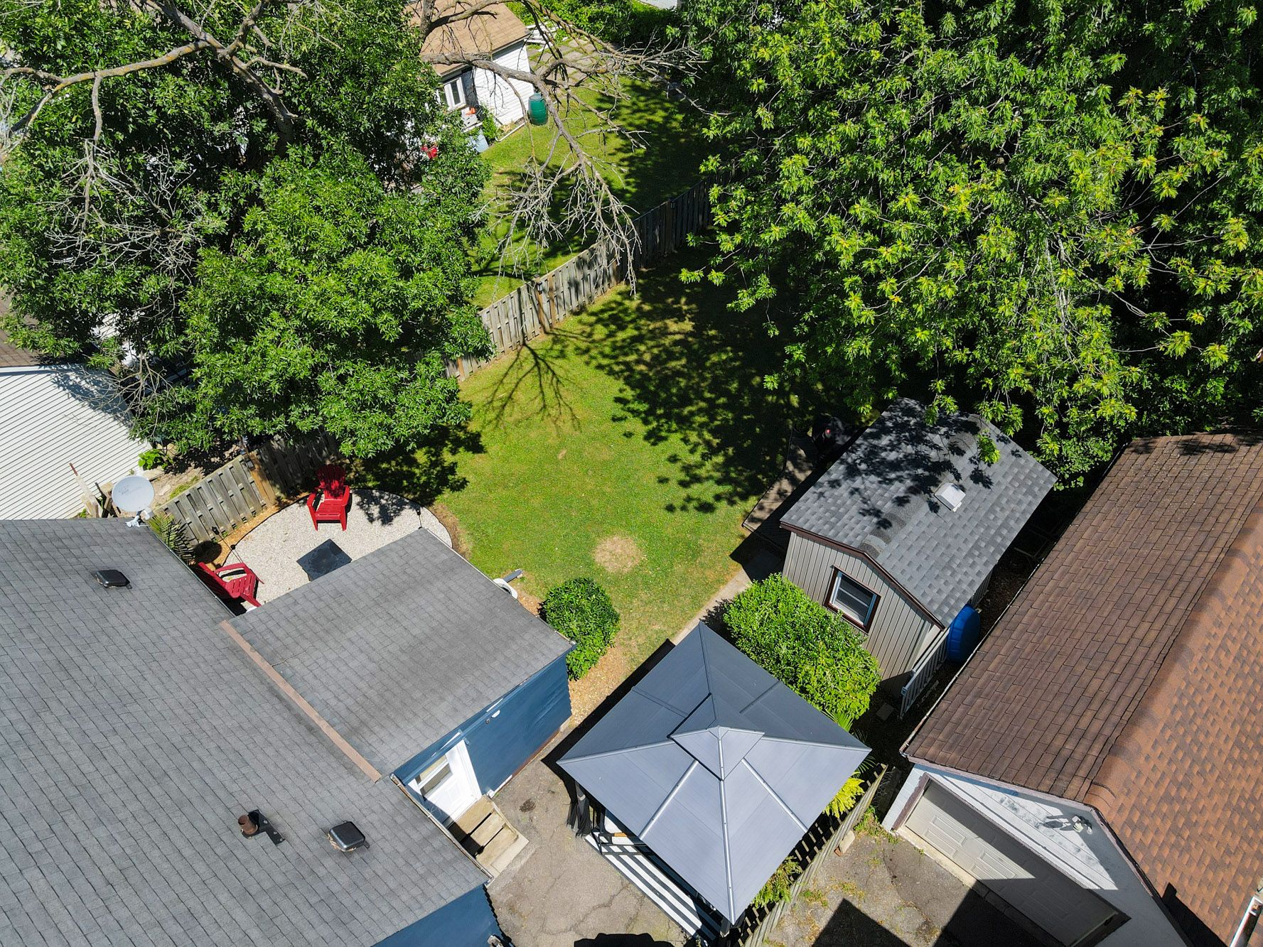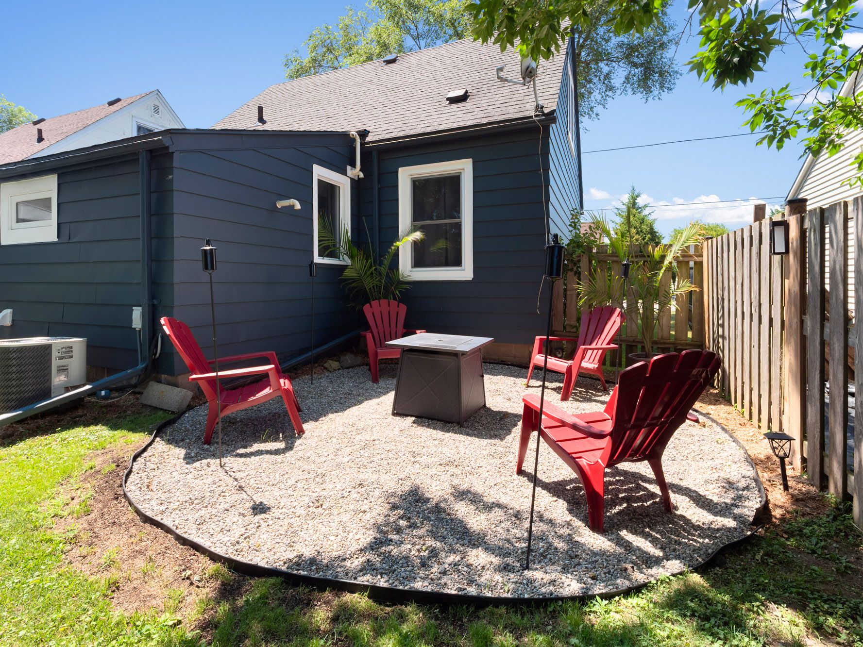 • Private backyard with fire pit seating and gazebo for outdoor relaxation.