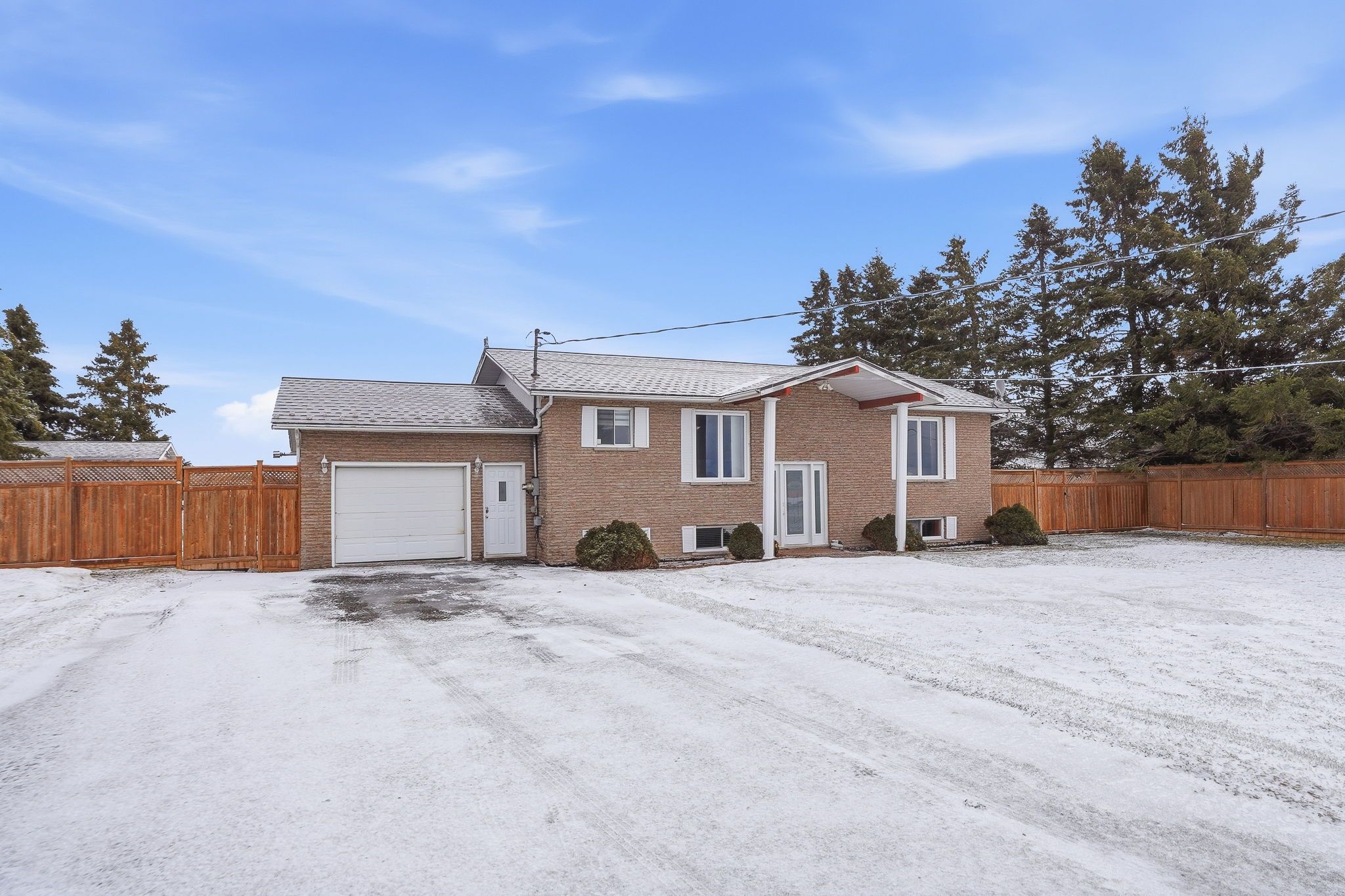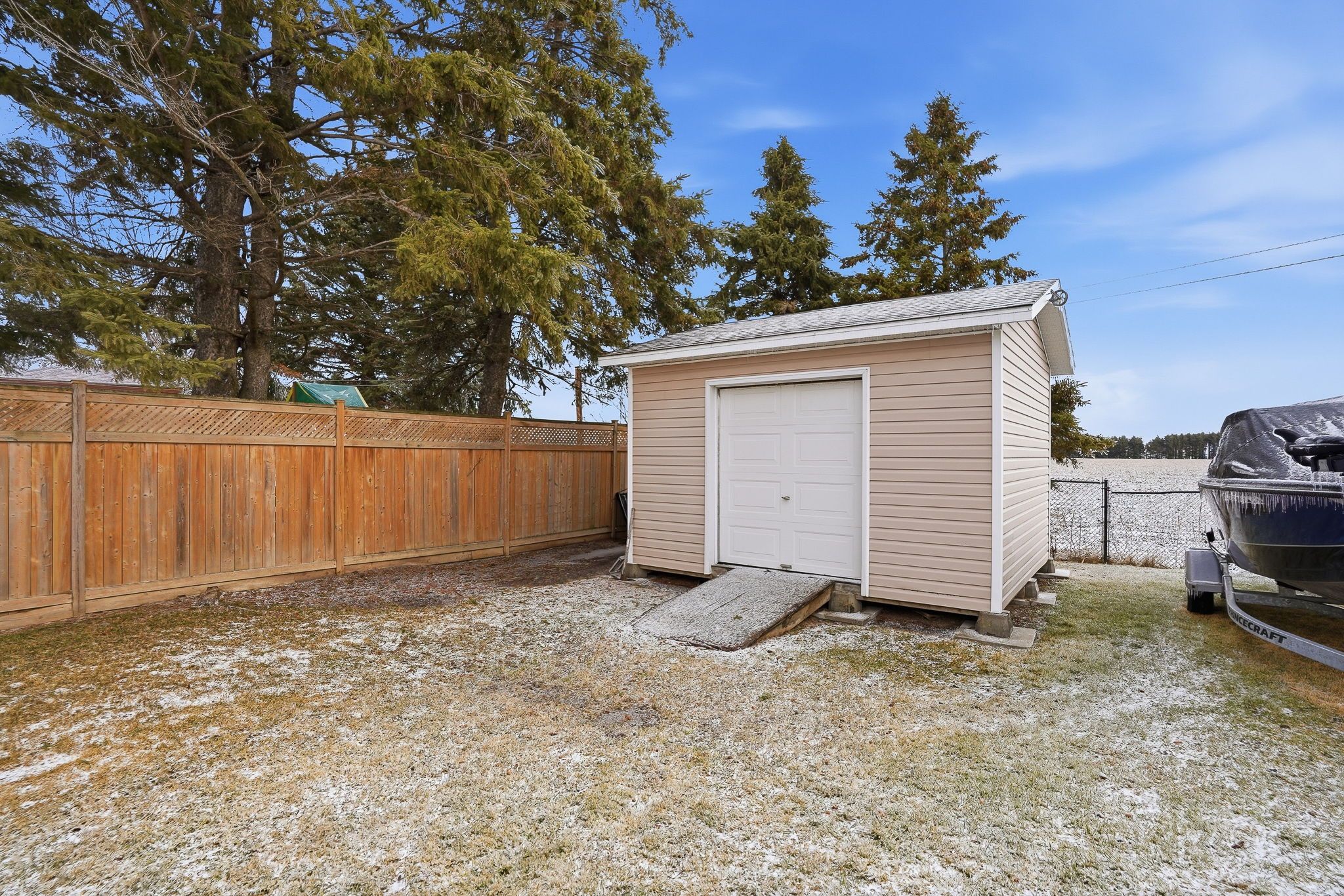 This all-brick raised bungalow features a spacious layout with two large bedrooms, an office that can double as a small bedroom, and an updated bathroom with a soaking tub, standalone shower, and ample storage. The kitchen connects to the eating area and living room via elegant french doors, offering a welcoming space for gatherings. Step out to the private backyard with a large deck and on-ground pool, perfect for enjoying open field views. The basement provides two fireplaces and two additional bedrooms, while the laundry area includes abundant cabinetry, two sinks, a shower, and a toilet for added convenience. An attached garage and 12x12 shed offer plenty of storage for tools and equipment. Experience peaceful country living with modern amenities, including municipal water service. This property offers open fields and a tranquil environment without sacrificing essential conveniences. Move in for summer and enjoy an on-ground pool and spacious deck-perfect for relaxing, family gatherings, or outdoor fun. The pool area provides a refreshing escape all season long.