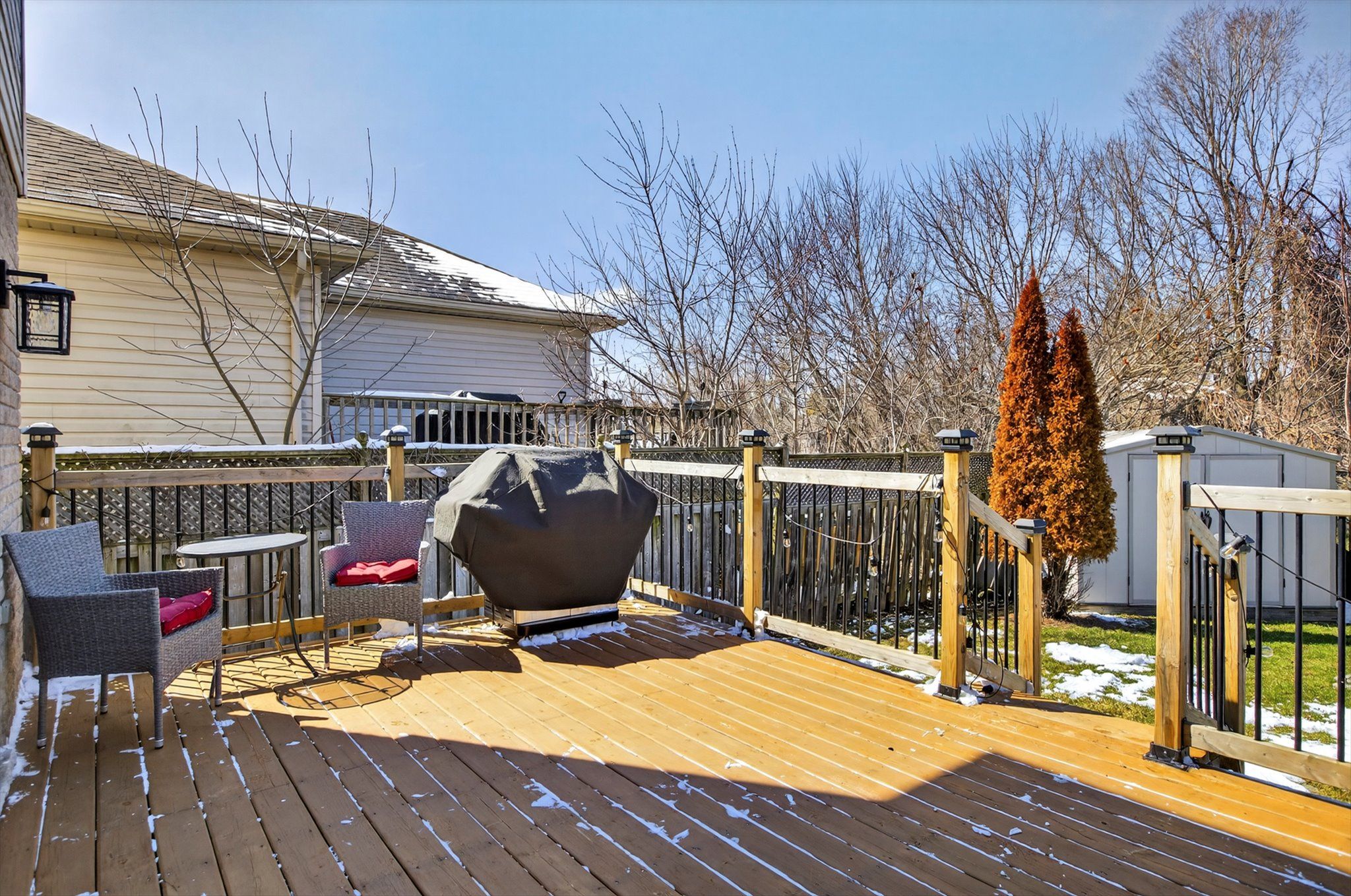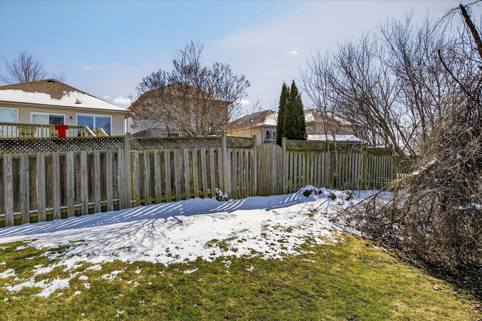 • Fully fenced backyard backing onto greenspace for privacy and relaxation.