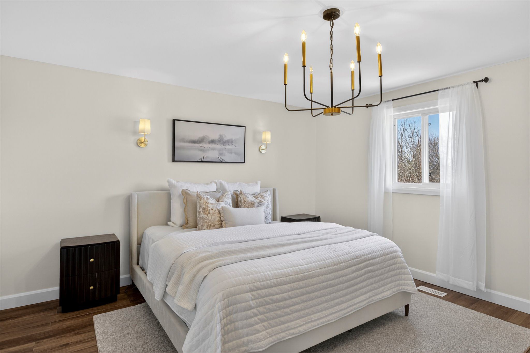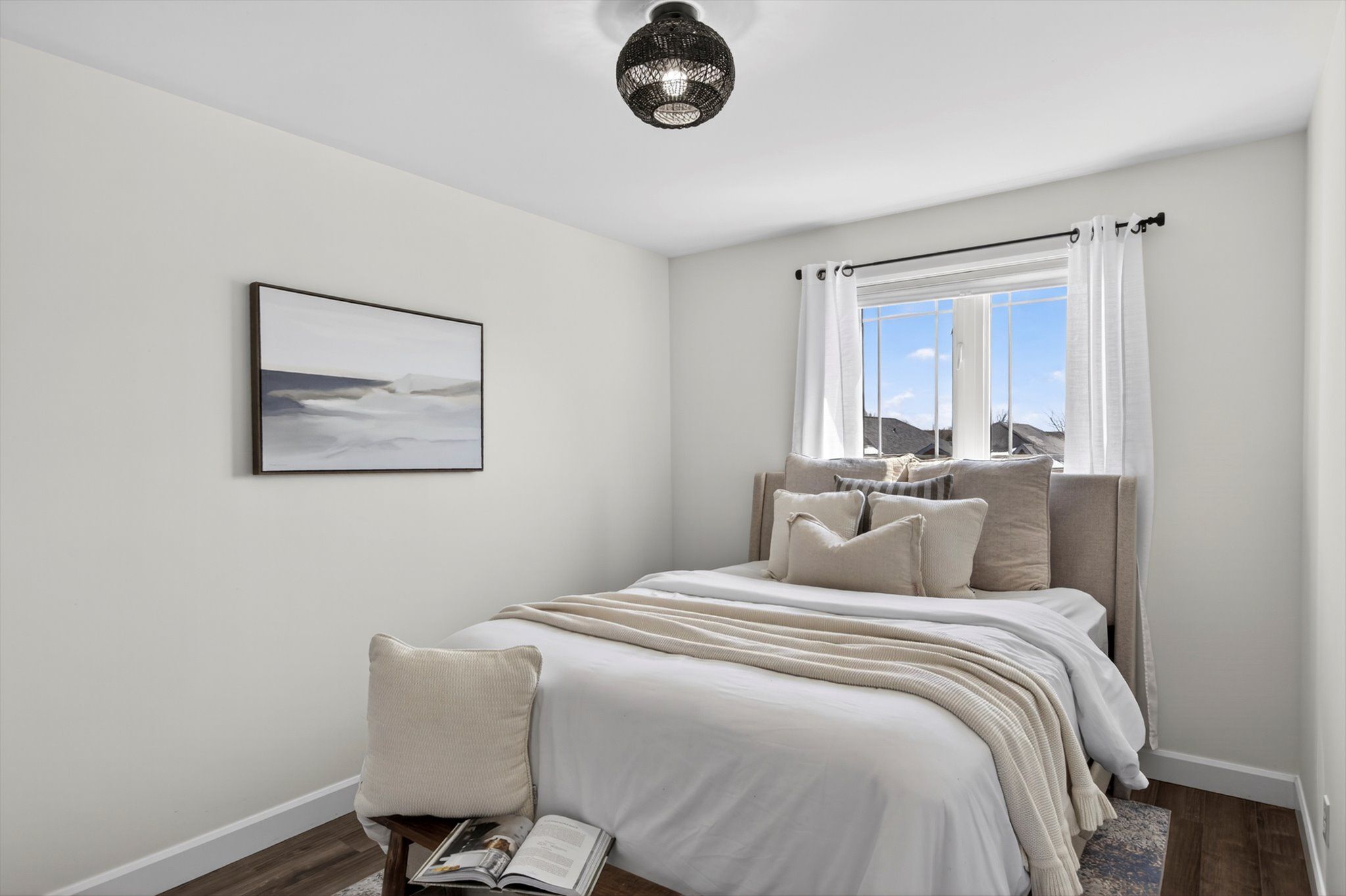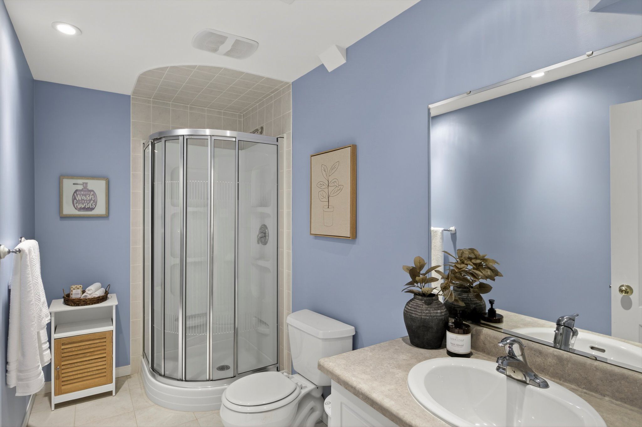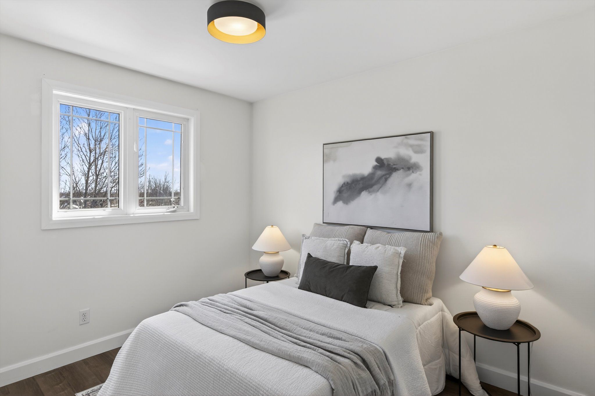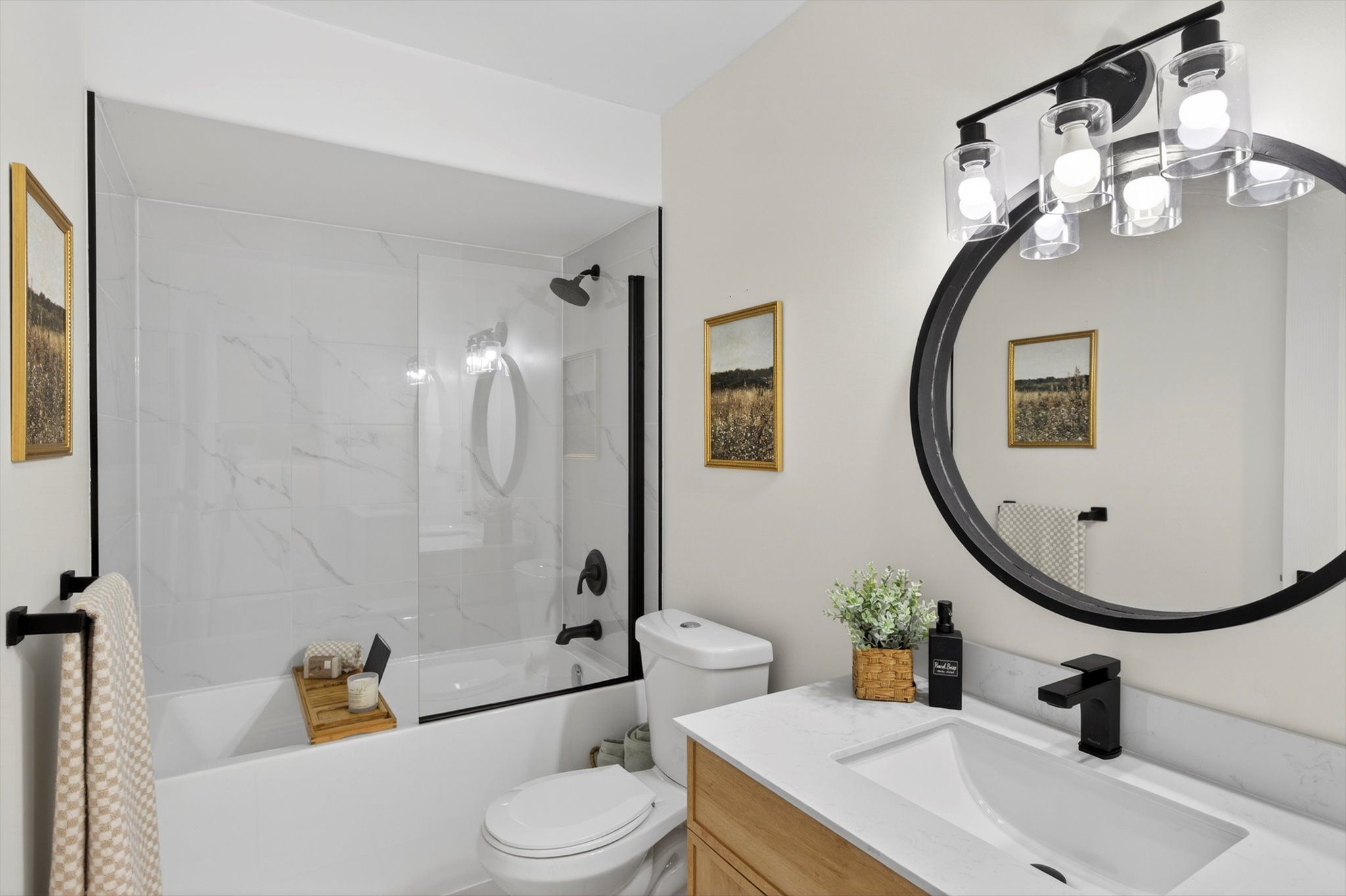 • Custom kitchen with quartz countertops, perfect for cooking and entertaining.