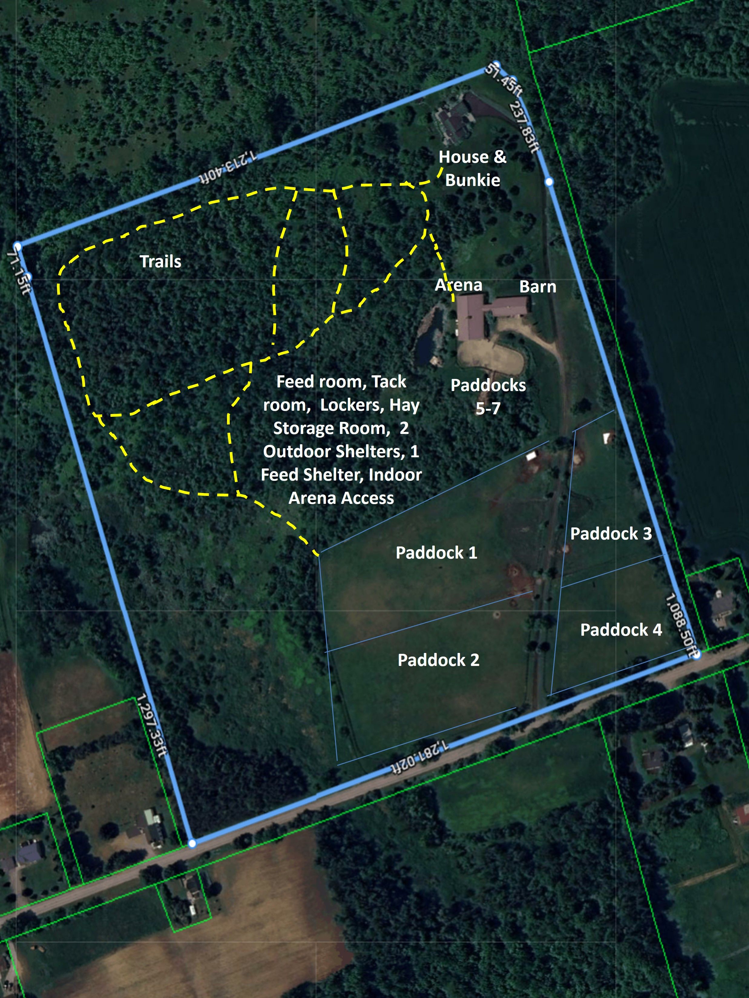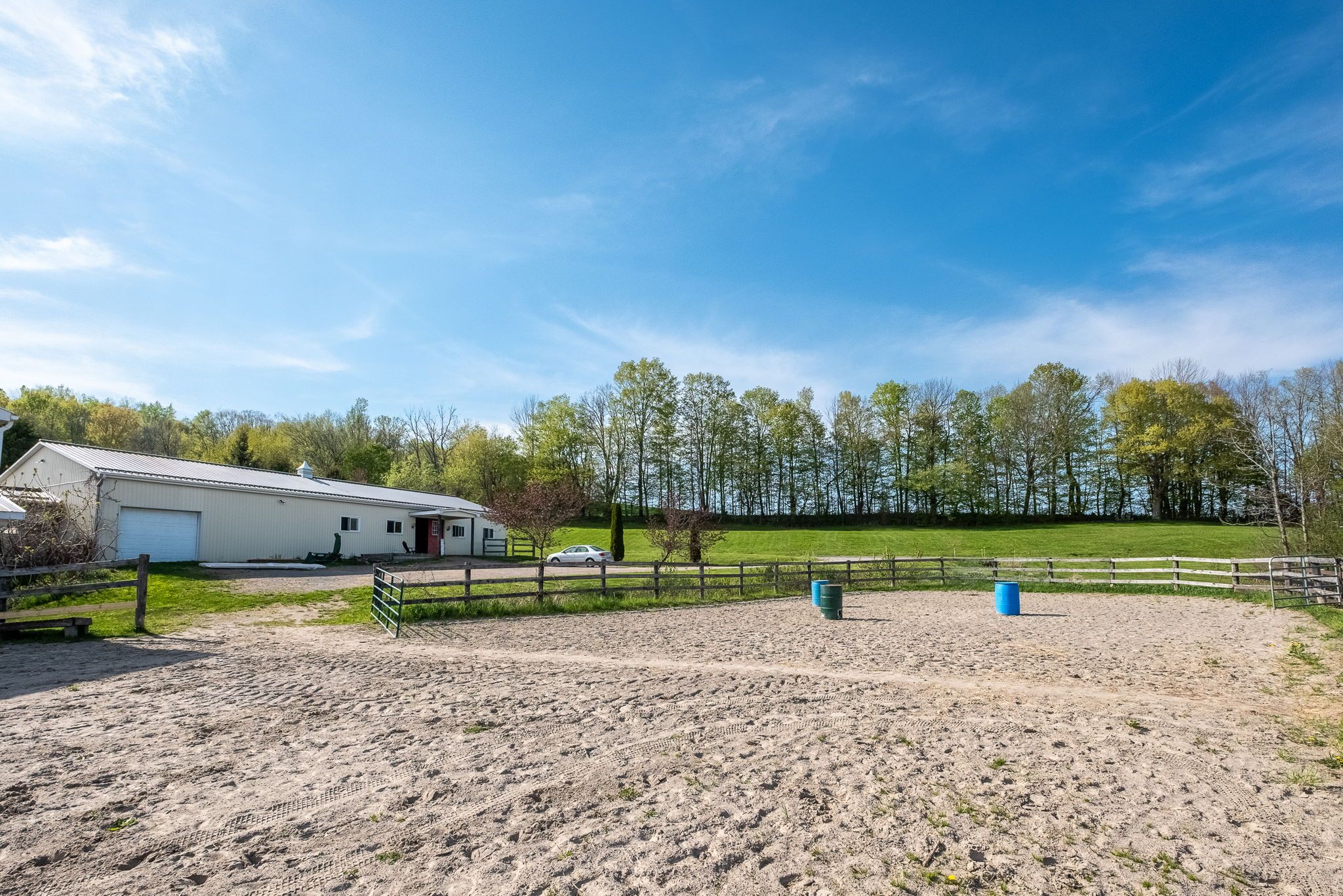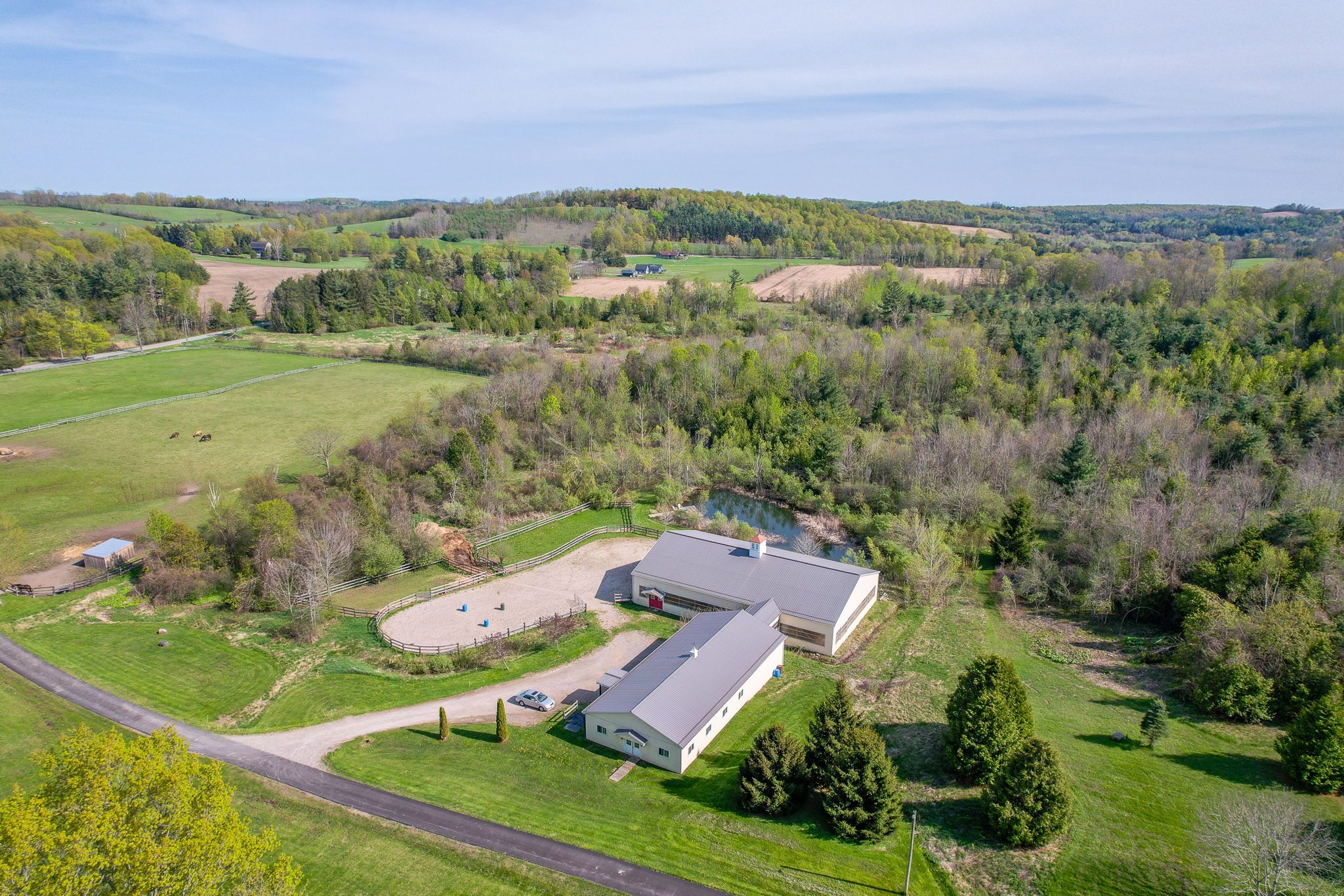 Turnkey equestrian training & boarding facility - 40 acres | northumberland county. Situated on 40 elevated acres in the rolling northumberland hills, this is a fully developed private equestrian center offering professional-grade infrastructure, year-round usability, and exceptional proximity to the gta. Purpose-built for serious equestrian operations, the facility includes a modern 8-stall barn with dedicated tack room, feed room, and storage areas, directly connected to a bright 6,000 sq ft indoor riding arena with quality footing and excellent ceiling height. The land is thoughtfully configured with seven paddocks, open pasture, established woodland riding trails, and a pond, creating a private and efficient training environment. The property layout supports boarding, coaching, training, or personal equestrian use, with infrastructure already in place to operate immediately. Complementing the operation is a custom-built residence designed for comfortable on-site living, staff accommodation, or client hosting. The home offers refined single-level living with vaulted ceilings, stone fireplace, gourmet kitchen, spacious primary suite, finished lower level with walkouts, and a separate bunkie for extended accommodation. A full backup generator ensures uninterrupted operation. This offering represents a rare opportunity to acquire a complete rural enterprise with professional equestrian infrastructure east of the gta. Ideal for trainers, competitive riders, equestrian entrepreneurs, or investors seeking a turnkey agricultural operation with lifestyle integration. A facility of this scale and quality is seldom available in northumberland county.