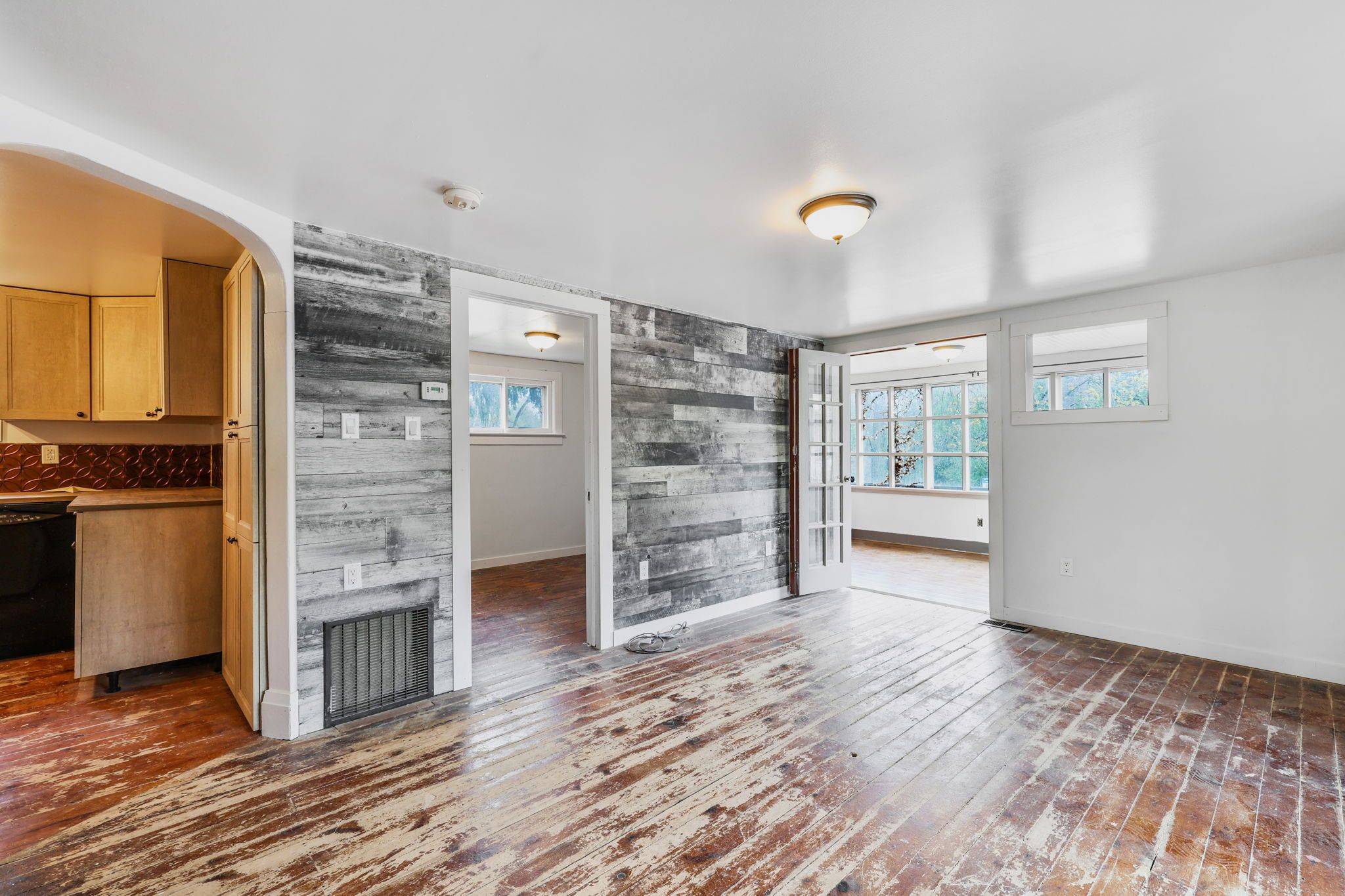 • Bright sunroom entryway leading to cozy living areas.