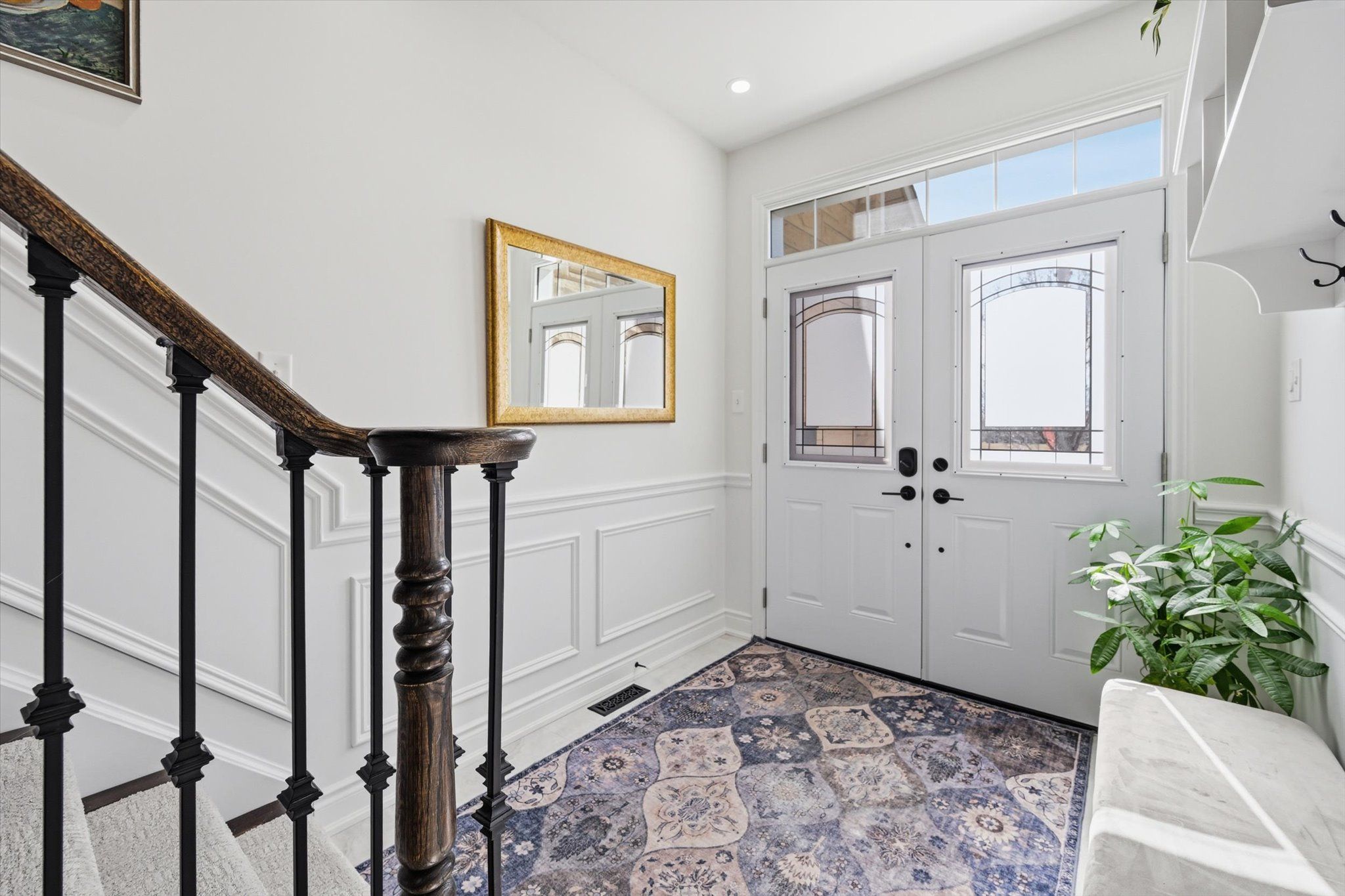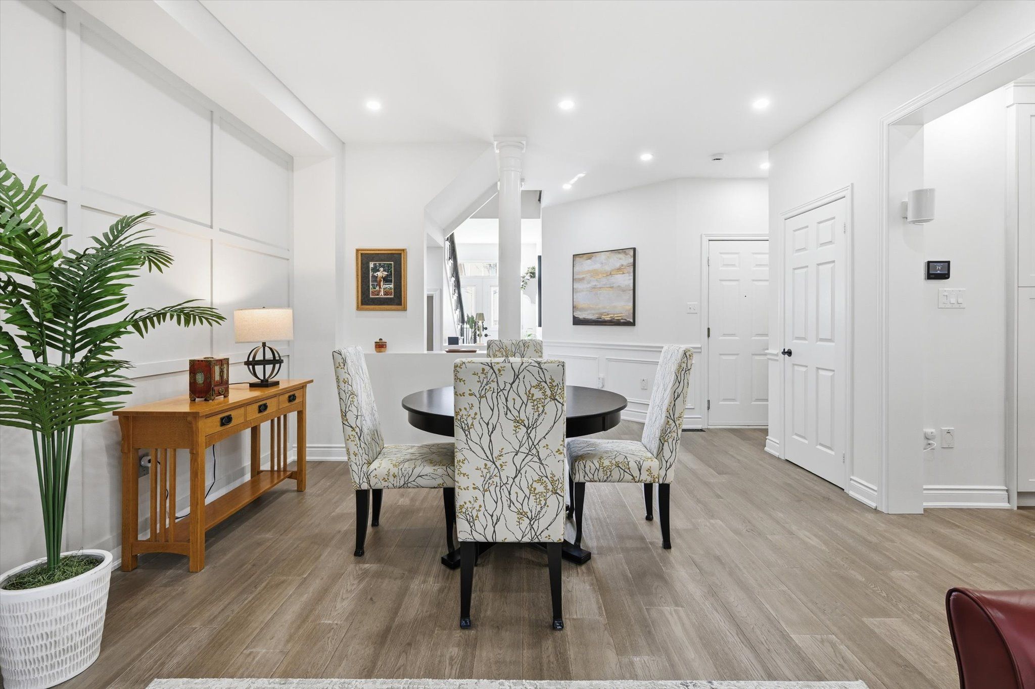 • Fully renovated townhome with modern open-concept design and 9-ft ceilings.