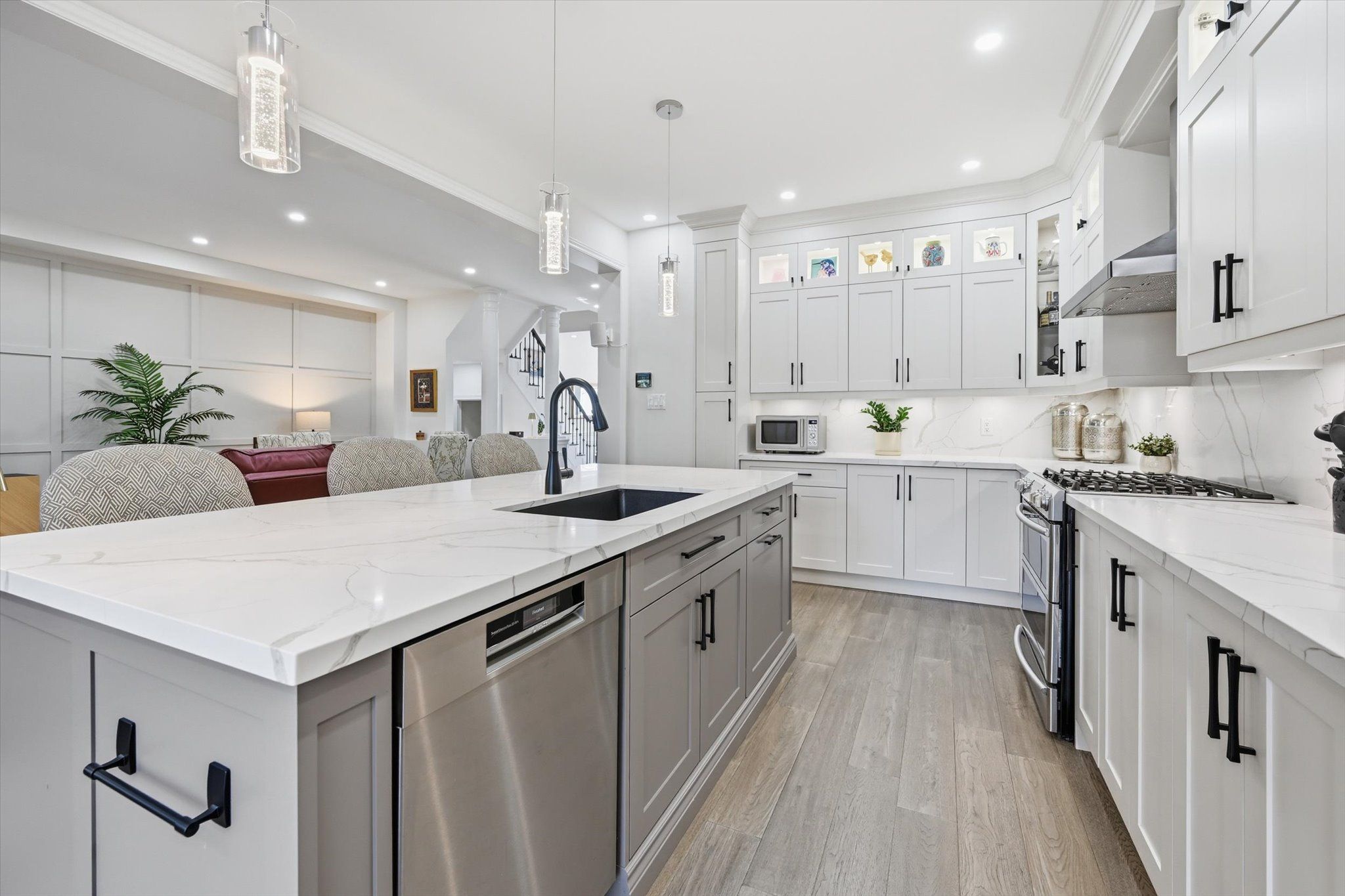 Fully renovated millcroft townhome! Stunning open-concept design, with a double car garage and located right across from taywood park. The main floor was completely opened up for an expansive and flexible living experience. With 9-ft ceilings and a vaulted great room filled with natural light, it offers 2,835 sq. Ft. Of beautifully finished living space. Engineered hardwood floors, custom millwork, wainscoting, and a hardwood staircase with wrought iron spindles. The chef's kitchen features a large island with breakfast bar, quartz countertops, extended cabinetry with glass displays, under-cabinet lighting, stylish backsplash, pendant lights, and chimney-style vent hood. Premium stainless steel appliances include dual zone oven, gas range, fridge, and bosch dishwasher. Upstairs, the spacious primary retreat offers a designer feature wall, spa-like ensuite inluding a toto washlet bidet/toilet, and a custom california walk-in closet built-ins. A convenient upper-level laundry room features a brand new washer & dryer (2025). Step outside to your private deck oasis with built-in planter boxes, mature cedars, and trees - perfect for relaxing or entertaining. Additional highlights include double-car garage with inside entry and 2 new garage door openers (2025), parking for four in the driveway, new front door (2023), new roof (2023), carrier furnace & a/c (2019), and upgraded r60 attic insulation. Anti-shatter film installed on patio doors, rear deck window and front door for added security. Located directly across from taywood park in sought-after millcroft, this home is close to top schools, trails, shopping, dining, go transit, highways, downtown, and the lake in burlington. Meticulously maintained, and fully upgraded - nothing to do but move in and enjoy!