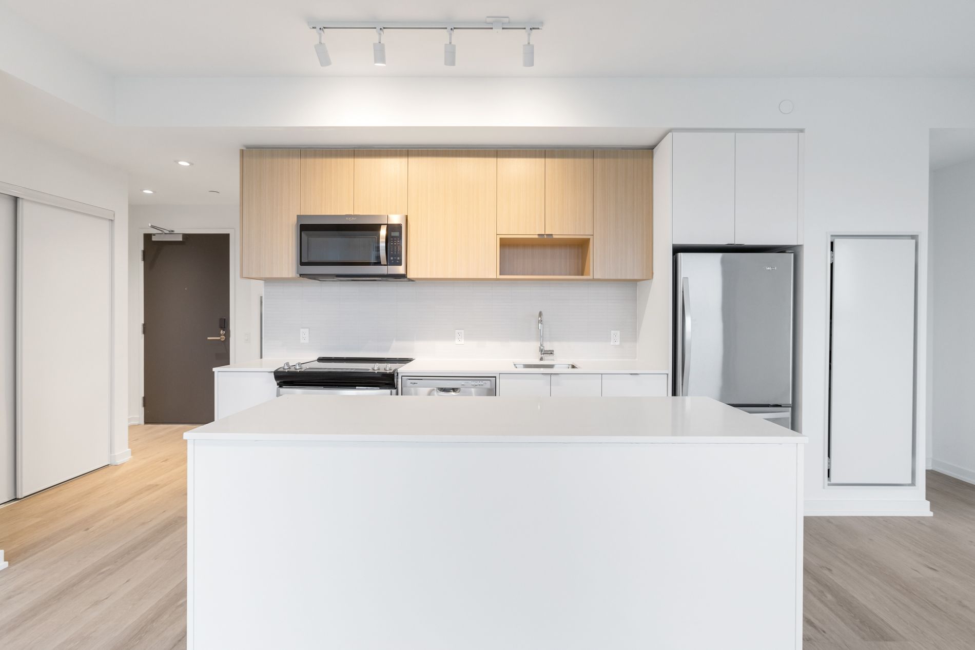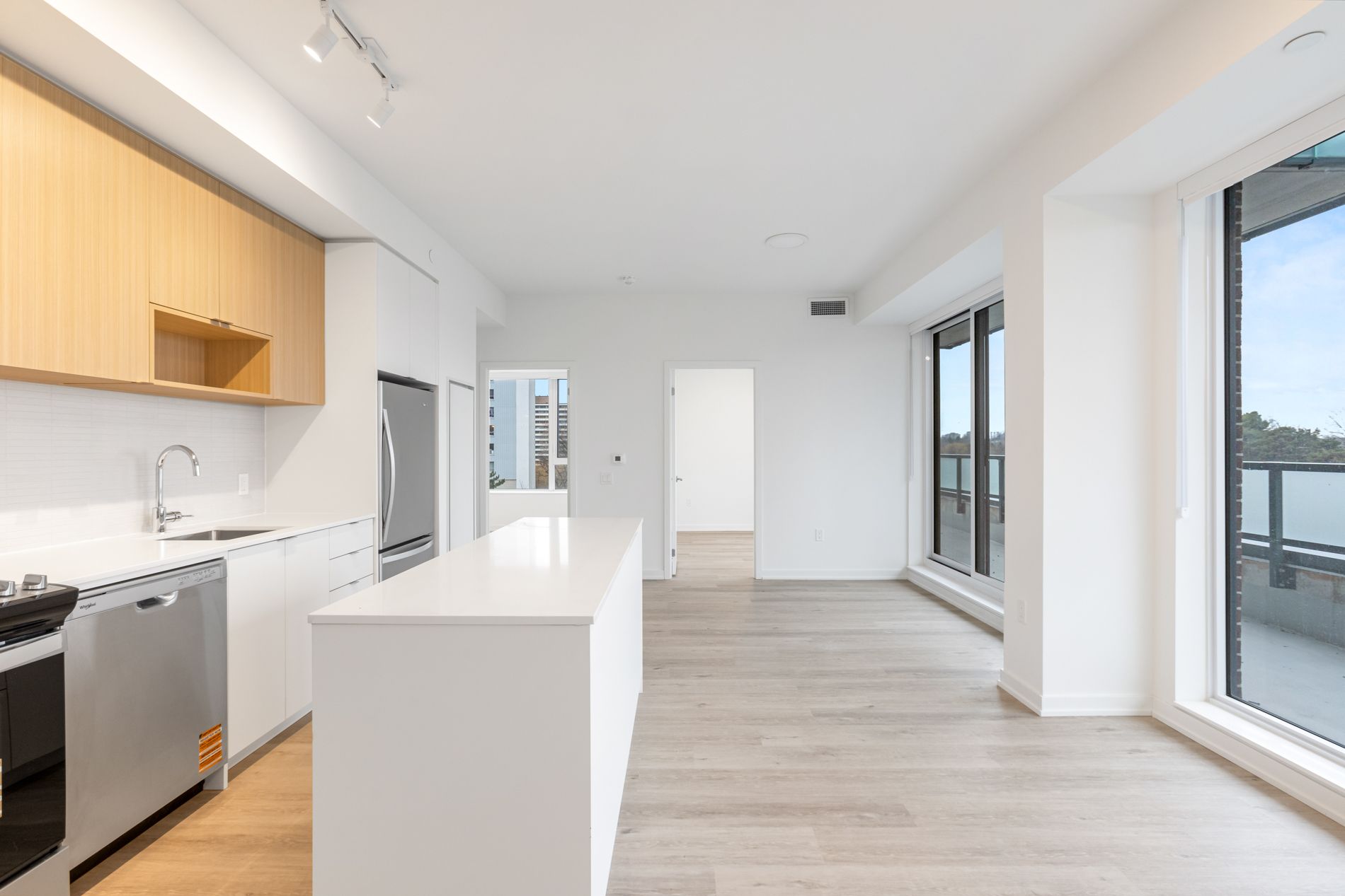 Elevated living, exceptional rewards! Sign a 14-month lease and receive two months free rent, three months free parking, six months free locker, plus for a limited time, complimentary wifi. Welcome to the markwood - a thoughtfully designed rental community nestled in the heart of markland wood. Be the first to call this beautifully appointed 3 bedroom, 2 full bathroom suite home. This exceptional corner suite features a smart, open-concept layout designed for comfortable everyday living. The modern kitchen is finished with sleek quartz countertops & large island, full size stainless-steel appliances, including a dishwasher, creating a space that's both functional and stylish. Three well-proportioned bedrooms provide generous closet space, including a primary bedroom with an ensuite bathroom, while a second spa-inspired bathroom adds convenience and comfort. Extending your living space outdoors, the wrap around, private terrace offers the perfect setting for relaxing or entertaining at home. This suite is truly move-in ready, complete with all light fixtures, roller blinds, and in-suite stacked laundry included. Individually controlled thermostats ensure year-round comfort - cool summers and cozy winters, exactly how you like it. Residents enjoy access to an impressive collection of state-of-the-art amenities, including a fully equipped fitness centre and yoga studio, party room and social lounge, media/movie room, co-working space, children's play area, and a pet wash station. Coming late spring 2026, outdoor amenities will further enhance the community with an outdoor courtyard and bbq area, children's playground, and a fenced dog run. Tenant to pay hydro and water. Perfectly located steps from ttc, parks, schools, and everyday conveniences, the markwood offers elevated rental living in a well-connected, family-friendly neighbourhood.