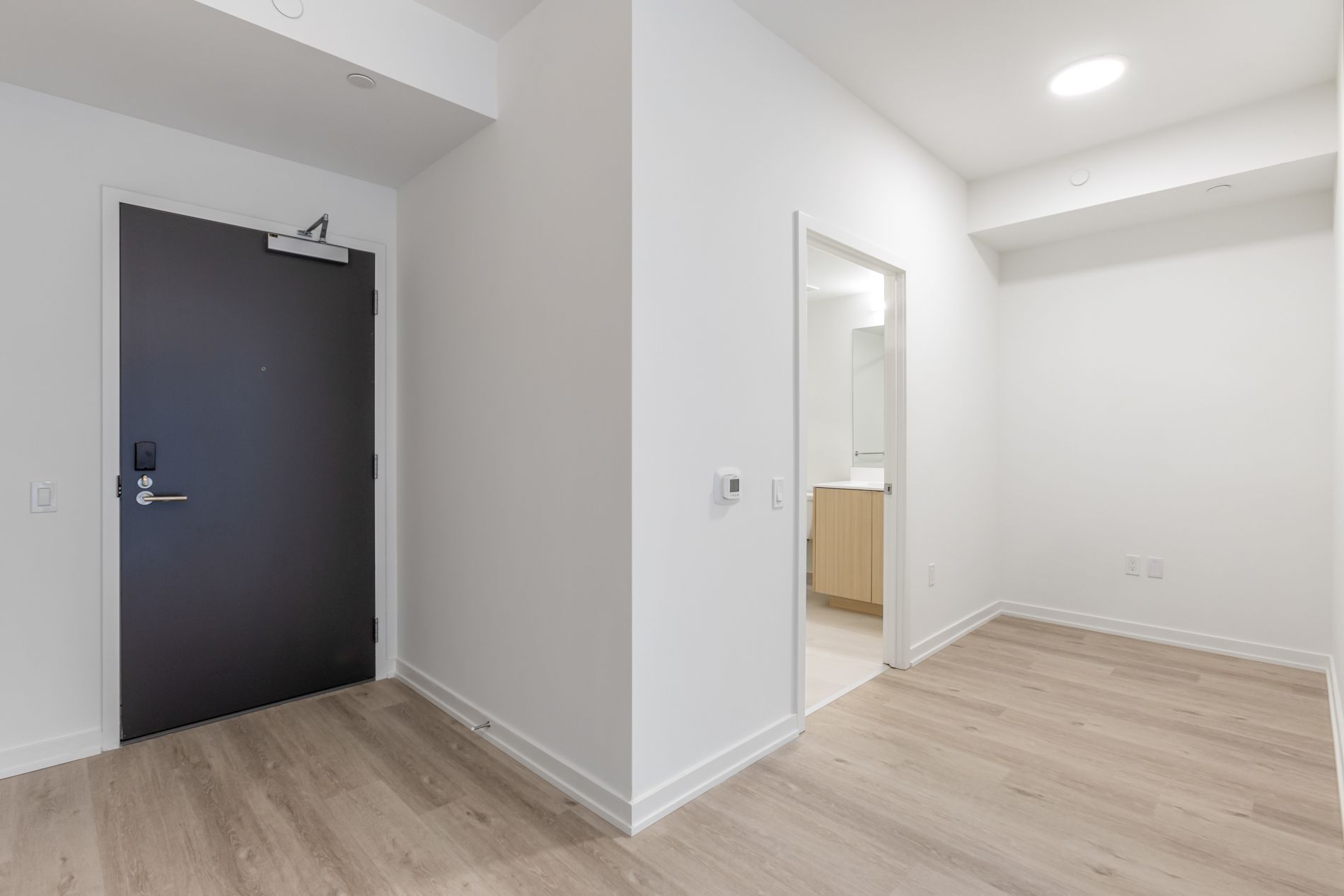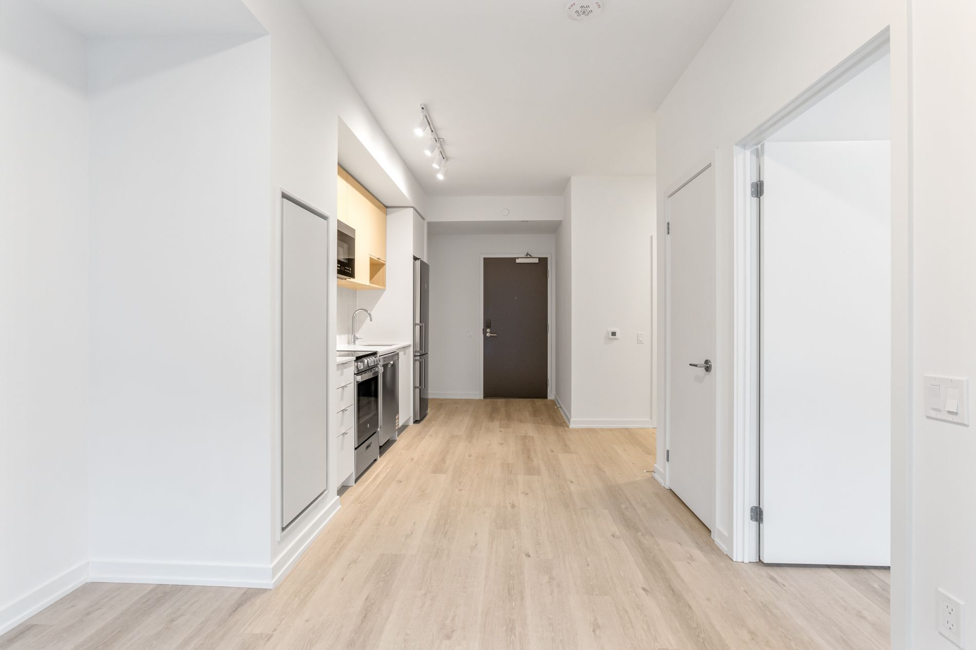 Elevated living, exceptional rewards! Sign a 14-month lease and receive two months free rent, three months free parking, six months free locker, plus for a limited time, complimentary wifi. Welcome to the markwood - a thoughtfully designed rental community nestled in the heart of markland wood. Be among the first to call this beautifully appointed 1 bedroom + den, 1 bathroom suite home. This exceptional suite features a spacious balcony and a smart, open-concept layout designed for comfortable everyday living. The modern kitchen is finished with sleek quartz countertops and stainless-steel appliances, including a dishwasher, creating a space that's both functional and stylish. The spacious bedroom offers generous closet space, while the spa-inspired 4-piece bathroom provides a relaxing retreat at the end of the day. This suite is truly move-in ready, complete with all light fixtures, roller blinds, and in-suite stacked laundry included. Individually controlled thermostats ensure year-round comfort - cool summers and cozy winters, exactly how you like it. Residents enjoy access to an impressive collection of state-of-the-art amenities, including a fully equipped fitness centre and yoga studio, party room and social lounge, media/movie room, co-working space, children's play area, and a pet wash station. Coming late spring 2026, outdoor amenities will further enhance the community with an outdoor courtyard and bbq area, children's playground, and a fenced dog run. Tenant to pay hydro and water. Perfectly located steps from ttc, parks, schools, and everyday conveniences, the markwood offers elevated rental living in a well-connected, family-friendly neighbourhood.