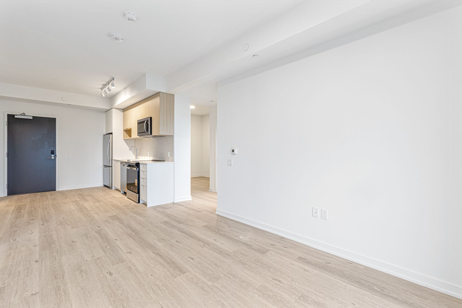 Elevated living, exceptional rewards! Sign a 14-month lease and receive two months free rent, three months free parking, six months free locker, plus for a limited time, complimentary wifi. Welcome to the markwood - a thoughtfully designed rental community nestled in the heart of markland wood. Be the first to call this beautifully appointed 2 bedroom + separate room den, 2 full bathroom suite home with sweeping 250 sf terrace! Did we mention that the den is large enough to act as a 3rd bedroom or private at home office? This exceptional suite features a smart, open-concept layout designed for comfortable everyday living. The modern kitchen is finished with sleek quartz countertops, full size stainless-steel appliances, including a dishwasher, creating a space that's both functional and stylish. Two well-proportioned bedrooms provide generous closet space, including a primary bedroom with an ensuite bathroom, while a second spa-inspired bathroom adds convenience and comfort. Extending your living space outdoors, private terrace offers the perfect setting for relaxing or entertaining at home. This suite is truly move-in ready, complete with all light fixtures, roller blinds, and in-suite stacked laundry included. Individually controlled thermostats ensure year-round comfort - cool summers and cozy winters, exactly how you like it. Residents enjoy access to an impressive collection of state-of-the-art amenities, including a fully equipped fitness centre and yoga studio, party room and social lounge, media/movie room, co-working space, children's play area, and a pet wash station. Coming late spring 2026, outdoor amenities will further enhance the community with an outdoor courtyard and bbq area, children's playground, and a fenced dog run. Tenant to pay hydro and water. Perfectly located steps from ttc, parks, schools, and everyday conveniences, the markwood offers elevated rental living in a well-connected, family-friendly neighbourhood.