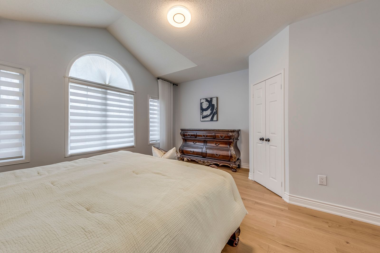 Located in the heart of the highly sought-after millcroft neighbourhood, this rare sprawling bungalow offers an exceptional lifestyle backing directly onto the millcroft golf course. Set on a premium oversized 70 x 120 ft lot backing onto golf greens, the home features beautifully manicured landscaping and an impressive 3-car garage with new high-end garage doors complemented by a 6-car interlock driveway. Inside, 9-foot ceilings and hardwood flooring flow throughout, while the stunning family room showcases soaring cathedral ceilings, a gas fireplace, and expansive windows framing picturesque golf course views. A welcoming foyer opens to a bright front bedroom that can double as a home workspace. Enter the formal dining room with convenient butler's access to the kitchen. The newly fully renovated eat-in kitchen is thoughtfully designed with a skylight, premium floor to ceiling hardwood cabinetry, designer quartz countertops, and ample workspace for everyday living and entertaining. The primary suite offers a peaceful retreat with a large walk-in closet featuring custom cabinetry and a well-appointed ensuite bath. Additional updates include renovated bathrooms and flooring (2023), enhancing the home's modern appeal, custom window treatments, zebra blinds and drapery. The fully finished basement extends the living space with a generous recreation room, additional bedroom, full bathroom, and abundant storage. Extensively updated, this home features a newer interlock driveway, backyard patio, sprinkler system, stone flowerbeds, and fresh paint throughout-offering a perfect blend of comfort, functionality, and refined outdoor living in one of burlington's most desirable communities.