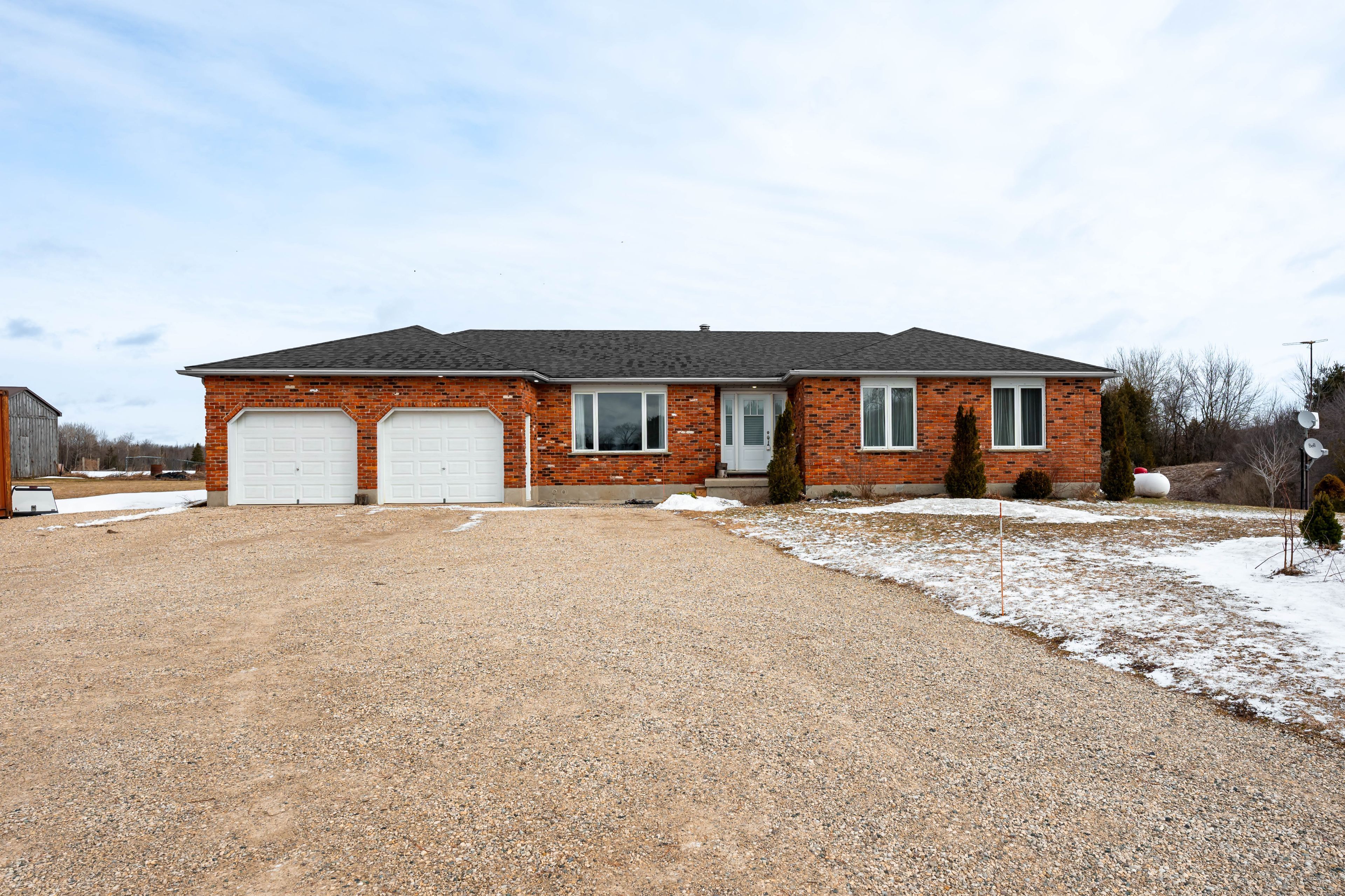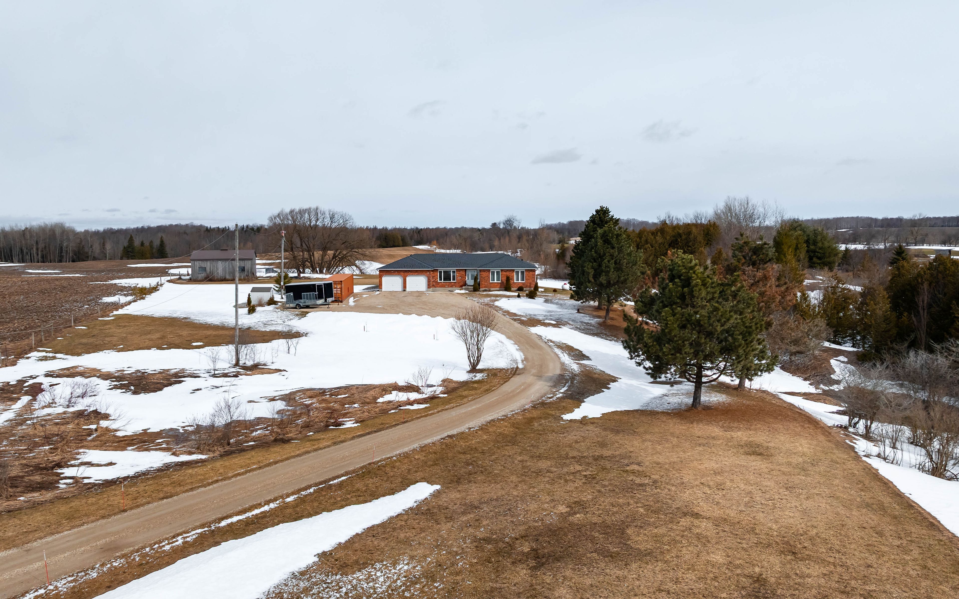 Welcome home to your private country retreat on just over 4 acres, only minutes from mount forest. This well-maintained 3-bedroom, 2-bathroom bungalow offers the perfect blend of peaceful rural living and everyday convenience. Step inside to a warm and inviting front living room featuring rich hardwood flooring and large windows that flood the space with natural light while showcasing scenic views of the surrounding property. The spacious dining area sits just off the kitchen and offers a walkout to the backyard-ideal for seamless indoor/outdoor entertaining, summer bbqs, and family gatherings. The bright, functional kitchen features white cabinetry, ample counter space with a peninsula, stainless steel appliances, and excellent storage including a pantry. Conveniently located near the mudroom/laundry area with direct access to the garage, unloading groceries is effortless. The primary bedroom offers hardwood flooring, a large window overlooking the backyard, and cheater access to a 4-piece bath. Two additional bedrooms provide flexible space for family, guests, or a home office. The full unfinished basement presents incredible potential, with insulation and electrical already in place, plus a walk-up to the garage, ready for your future rec room, additional bedrooms, or home gym. Outside, enjoy endless possibilities with wide open space, a barn for storage or hobbies, a double car garage, and a large driveway with parking for 12+. Located just 8 minutes to town and with easy access to highway 89, this is the perfect opportunity to enjoy country living without sacrificing convenience.