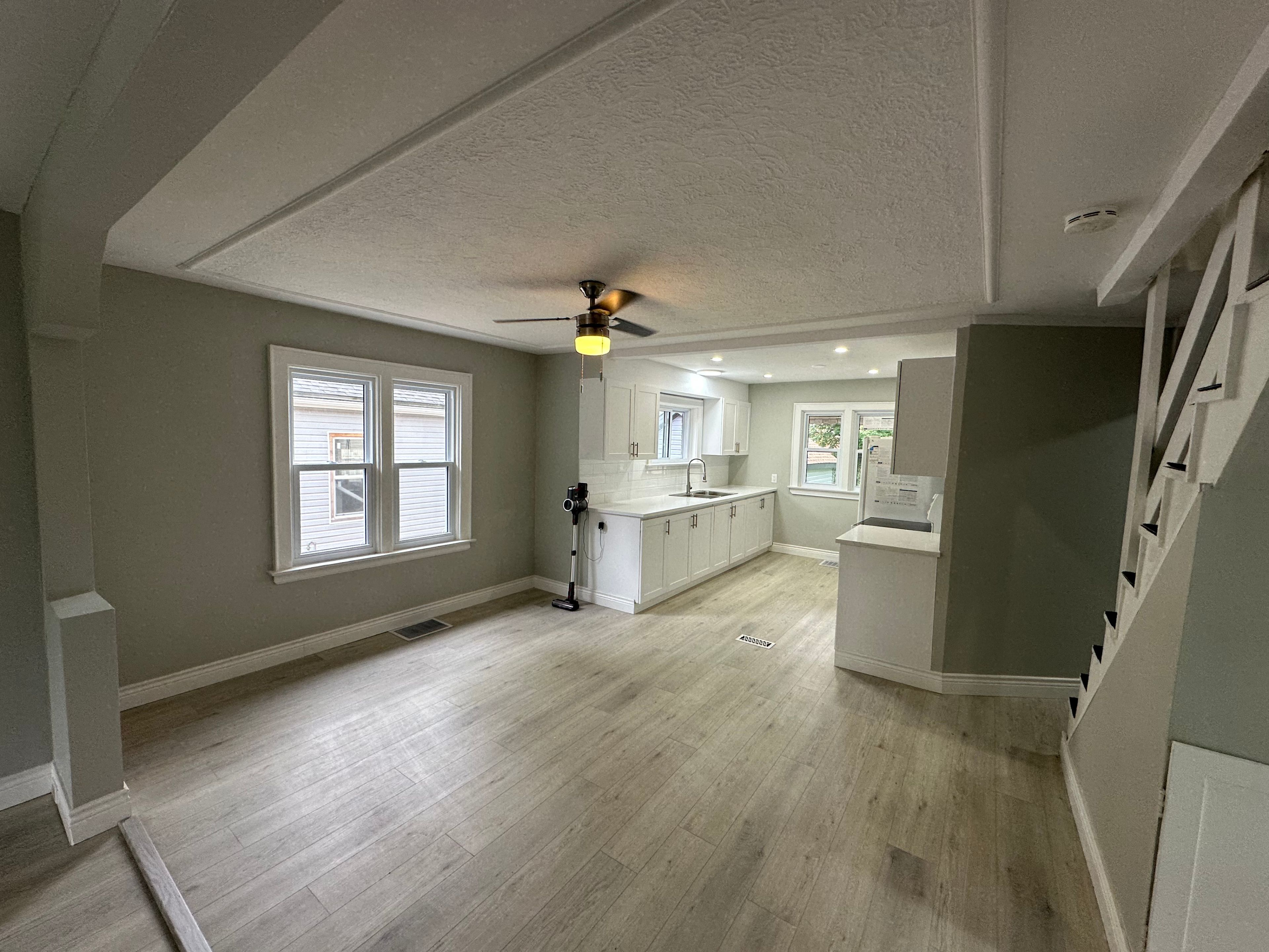 Welcome to this beautifully renovated main-floor unit offering modern, comfortable living in a highly desirable neighborhood. Updated in 2024, the home features new flooring, north star windows, a newer kitchen with quartz countertops, updated bathroom finishes, and refreshed doors, and trims, throughout creating a bright and inviting space. This main level includes 2 full bedrooms, a spacious living area with a cozy fireplace, a bright upgraded kitchen, and a modern full bathroom. Tenants will also have access to a shared laundry area located on the lower level, offering convenience without compromising privacy. A standout feature is the exceptional parking: 4 driveway spaces included plus 1 garage space, providing rare flexibility for families, working professionals, or anyone needing multiple parking options. Located within walking distance to the hard rock hotel, tim hortons, the western fair district, parks, schools, and public transit, this unit offers both comfort and convenience. Tenants are responsible for their own utilities. Perfect for responsible tenants seeking a clean, updated home in a great location.