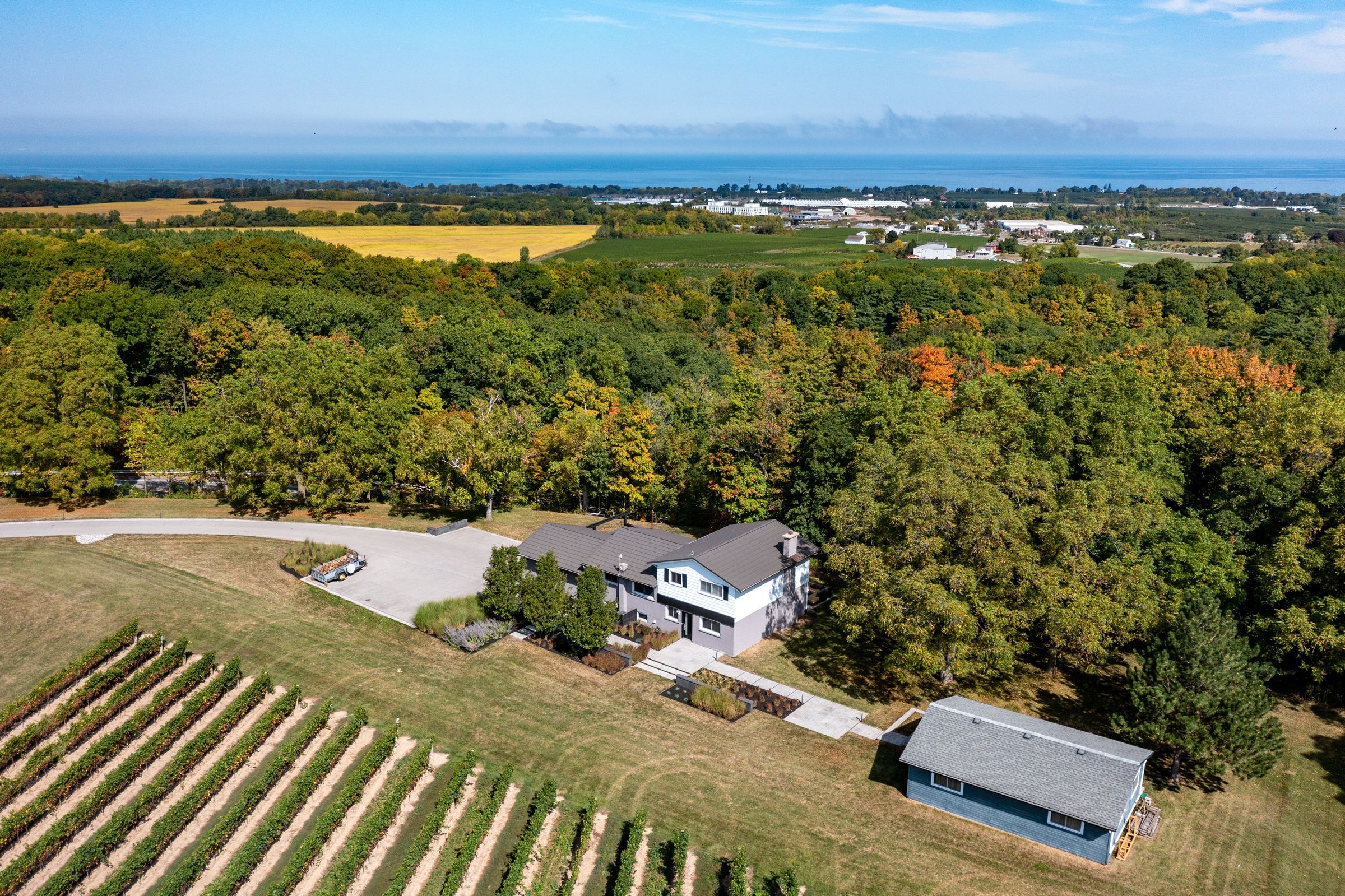• Spectacular estate property with panoramic views of Lake Ontario and vineyards.