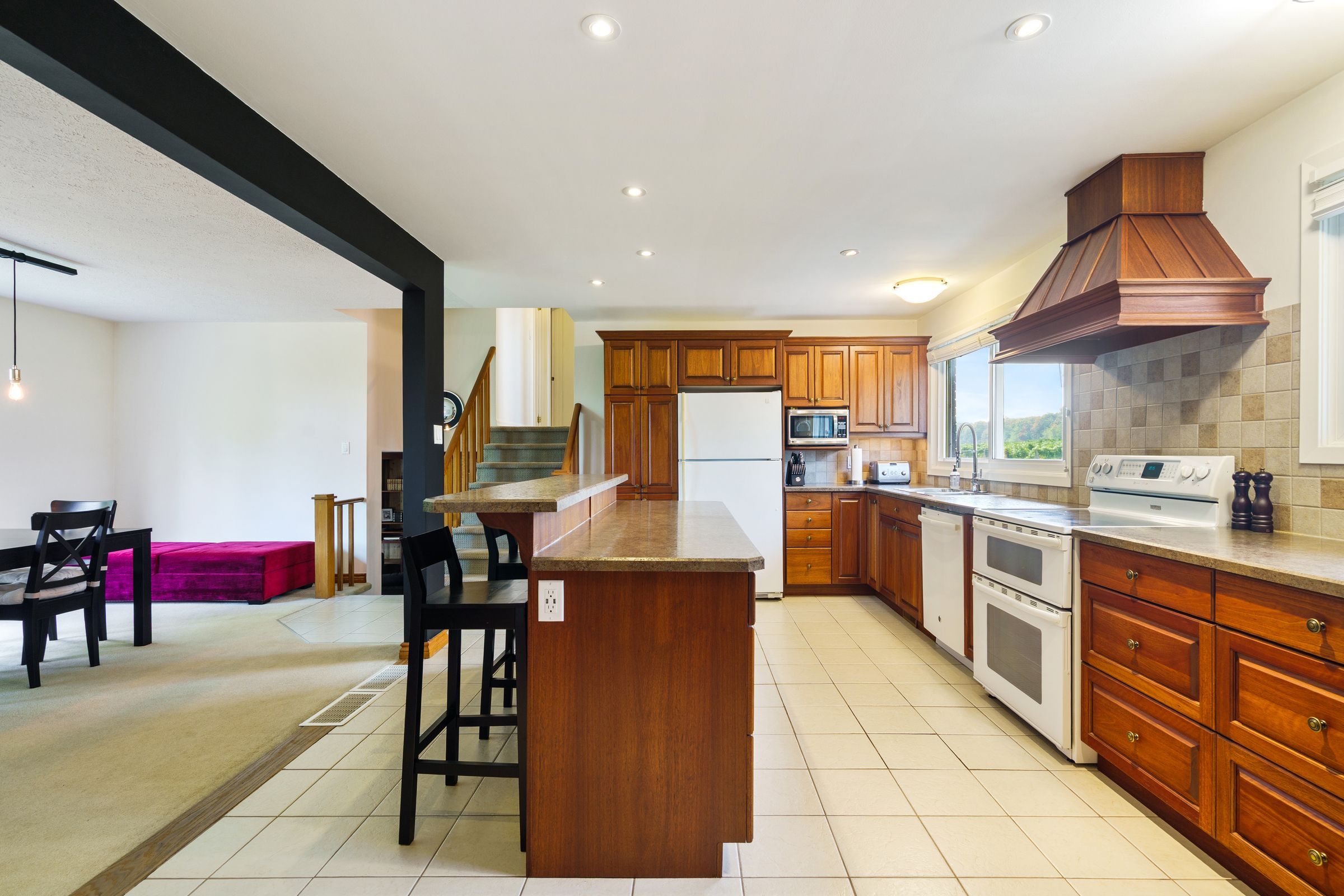 • Bright kitchen and dining room offer unforgettable sunrise views.