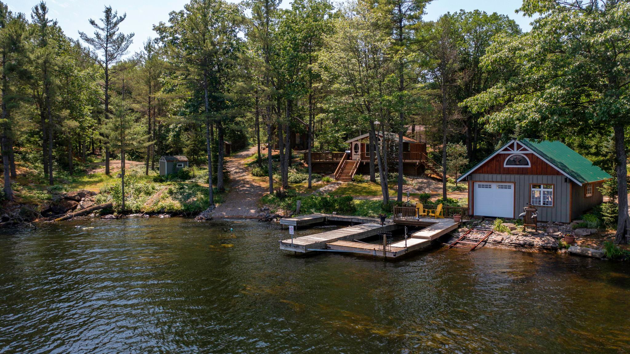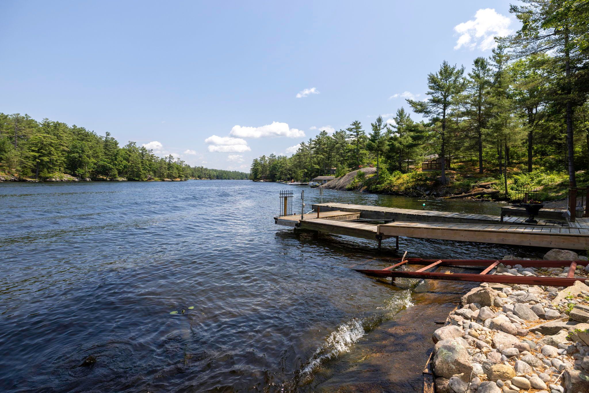 Severn river waterfront cottage with adjoining lot boasting 277. 4 feet of shoreline. A rare opportunity to own a charming 2-bedroom, 1-bathroom waterfront cottage plus an adjoining vacant lot on the severn river, offering a combined 277. 4 feet of shoreline and direct access to georgian bay. Enjoy deep, clean water perfect for swimming and fishing, with northern waterfront exposure and stunning views. The cottage features walkouts from both the living room and primary bedroom to a spacious deck overlooking the river ideal for entertaining or quiet relaxation. A propane fireplace in the living room for those chillier evenings. The property includes a deck on both sides of the oversized insulated garage, which also features a loft above for extra storage or future guest accommodations. Additional structures include a dry boathouse with marine railway and also includes your own boat launch ramp, a waterside bunkie, a wood shed, and a tool shed. The adjoining vacant lot offers additional privacy and recreational space, with a deck positioned for sunset views. A portion of this lot is environmentally protected, preserving the natural setting and enhancing long-term value. Whether you're looking for a serene retreat or an exceptional waterfront investment, this severn river gem offers year-round enjoyment and direct access to the renowned trent-severn waterway.