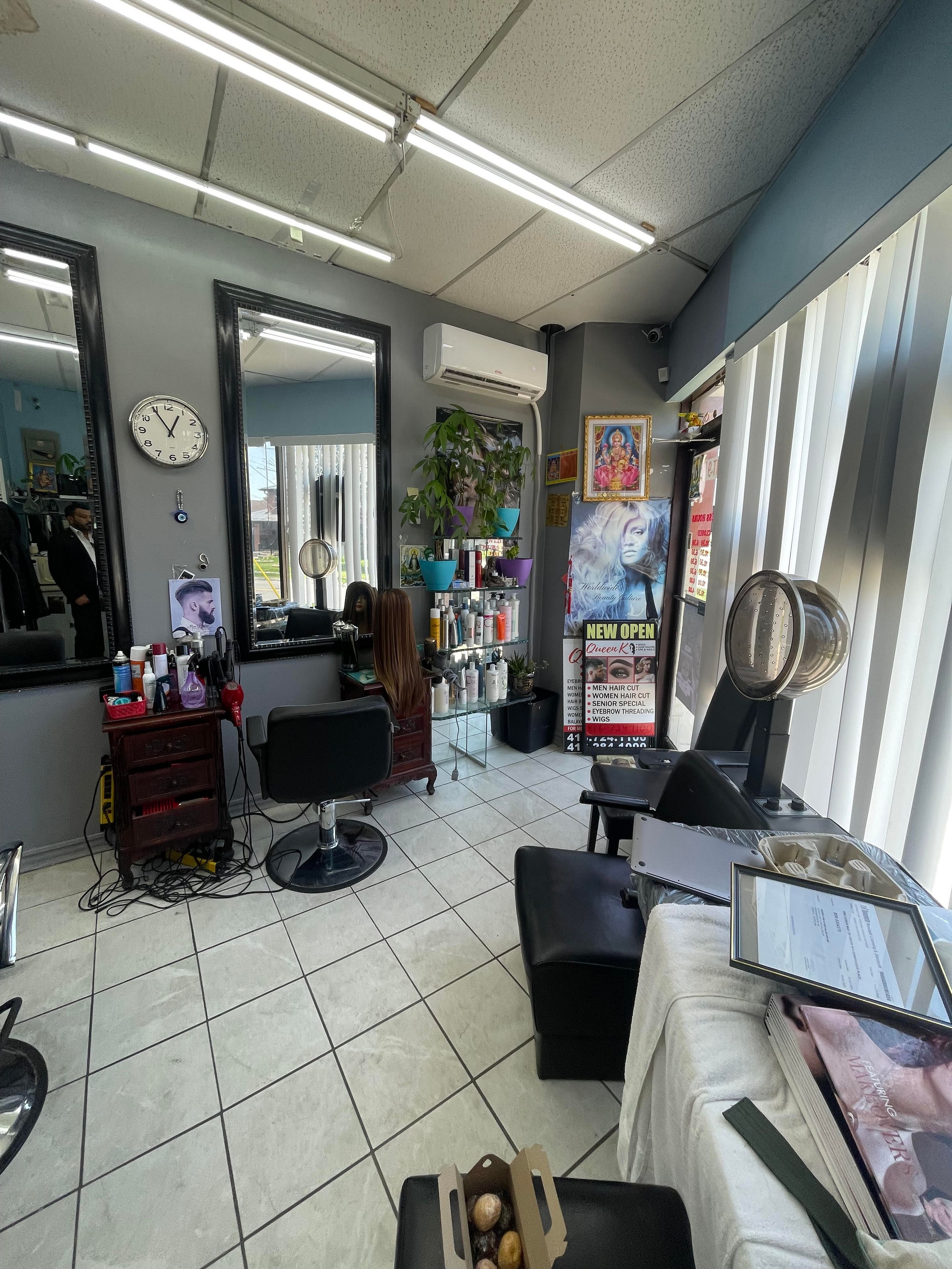 • Equipped with 3 styling stations and a facial bed for diverse services.