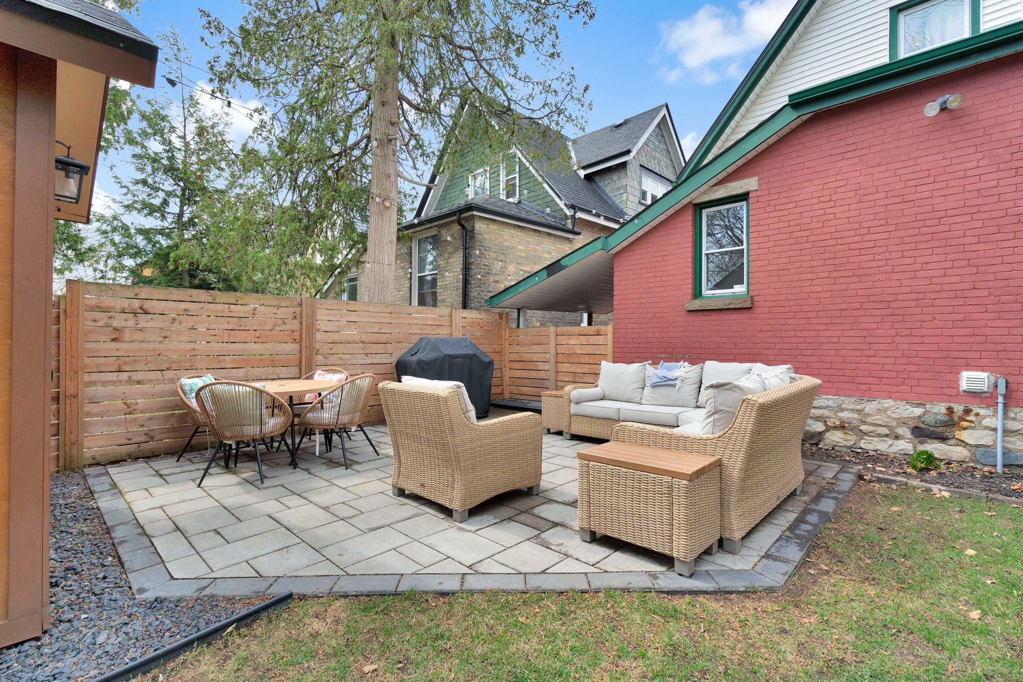 • Fully redesigned backyard with new landscaping, patio, and fencing for privacy.