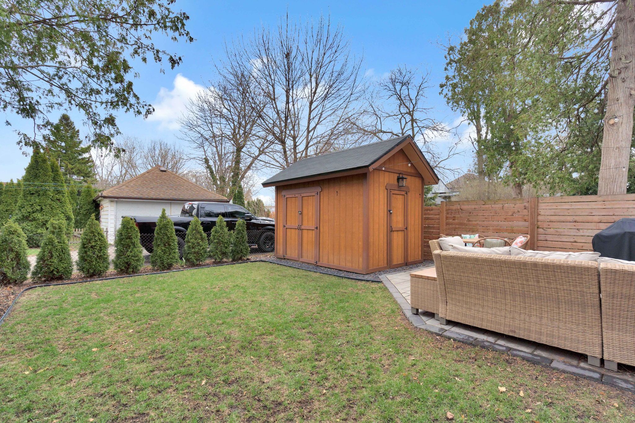 • Newly built shed with 60-amp service for additional storage or workspace.