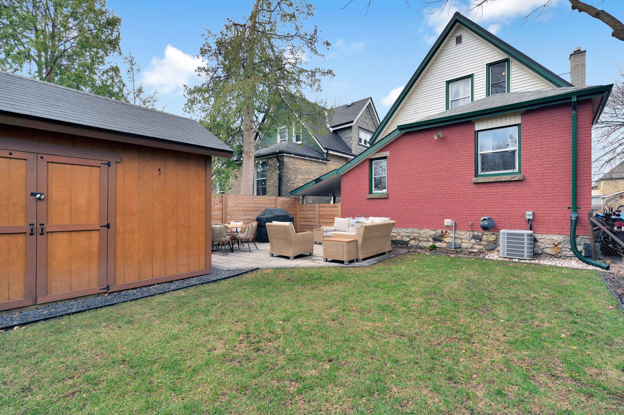 Welcome to this charming red brick home in the heart of old east village - one of london's most vibrant and rapidly evolving neighbourhoods, known for its character homes, local markets, artisan shops, and strong sense of community. Just minutes to downtown london, this location offers unmatched convenience with quick access to restaurants, entertainment, transit, and everyday amenities. Built circa 1890, this 2-bedroom, 1-bathroom home blends timeless character with thoughtful modern updates, making it an ideal opportunity for first-time buyers, small families, or investors. The main floor has been tastefully refreshed (2025) with new paint, updated light fixtures, and a functional layout that maximizes space and natural light. The kitchen features a newly replaced stove and microwave (2025), while added pantry and closet space in the primary bedroom improves everyday living and storage. Major mechanical updates provide peace of mind, including furnace and a/c (2015), and replacement of the lead water service from the curb into the home (2021). The roof is approximately 10-12 years old. The standout feature is the fully redesigned backyard (2025), offering a private, turnkey outdoor space with all new landscaping, patio, fencing, and garden beds. A newly built shed equipped with 60-amp service adds flexibility for a workshop, studio, or additional storage. The front exterior has also been enhanced with updated garden beds, new porch decking (2025), and a new front screen door. Additional updates include window coverings (2024), contributing to a move-in ready experience. A rare opportunity to own a character home with meaningful upgrades in one of london's most sought-after urban neighbourhoods.