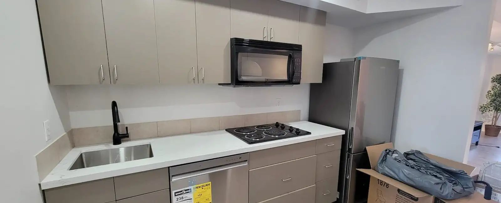 • Kitchen features new stainless steel appliances and Corian countertops.