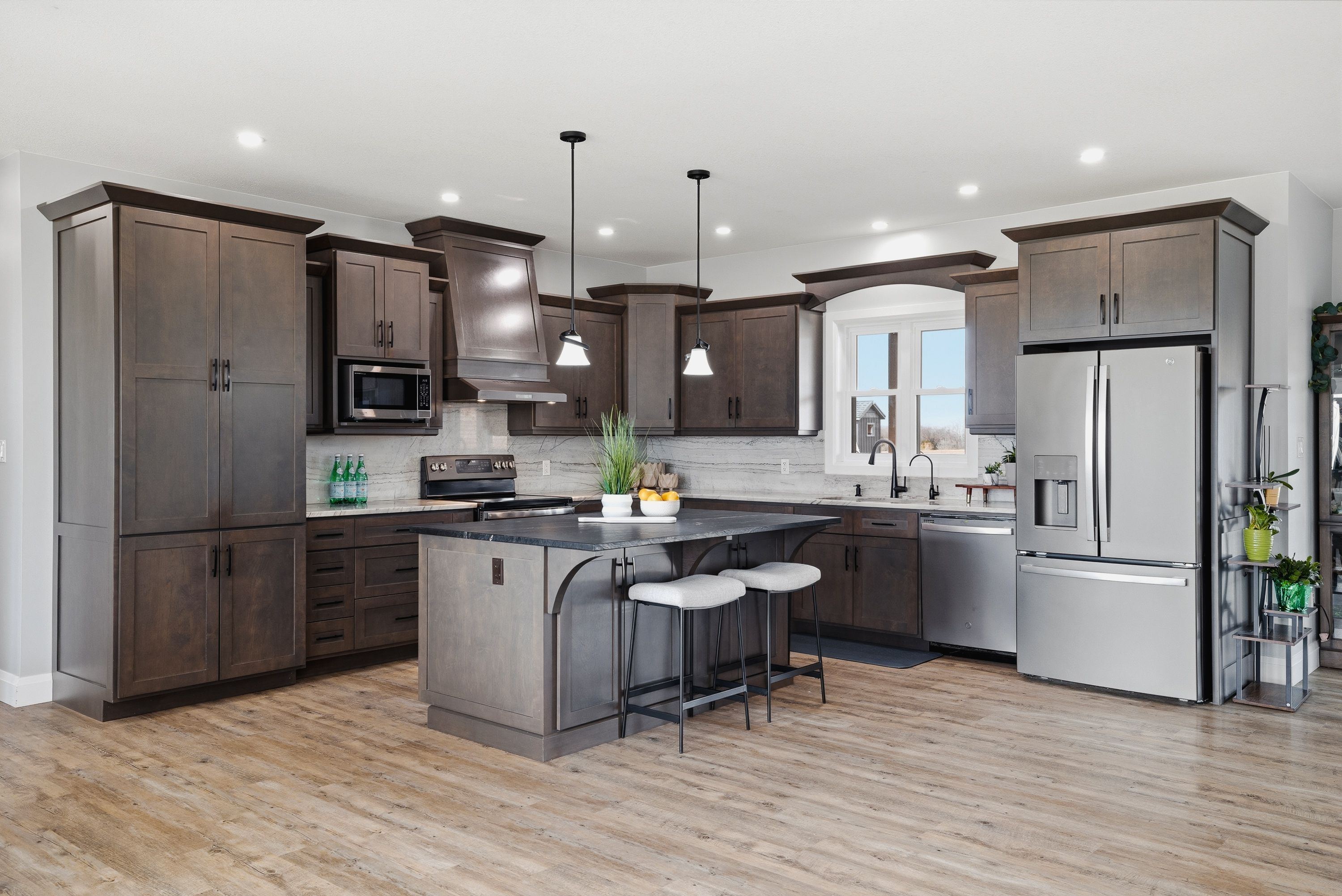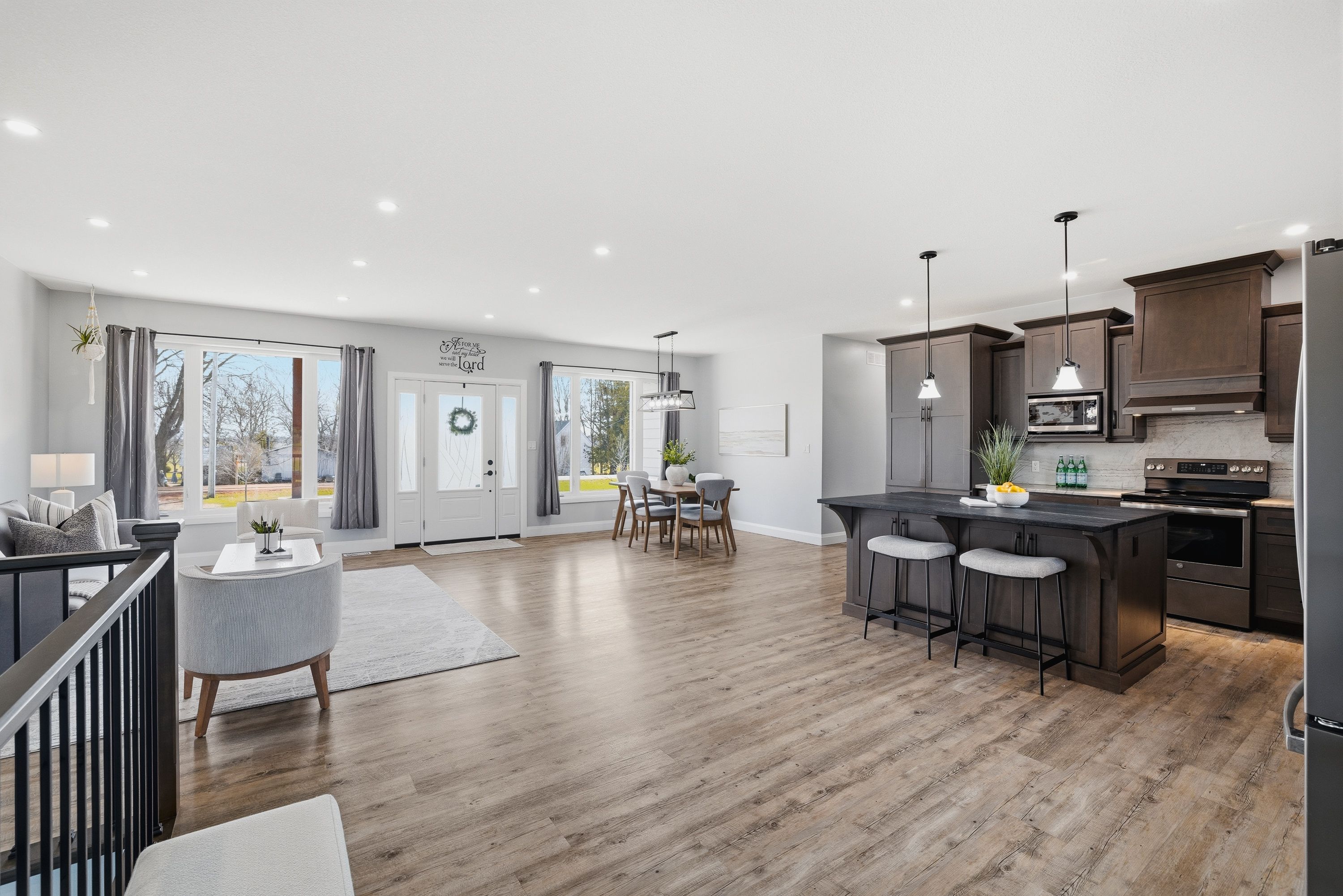 • Open concept main floor with a large kitchen and dining area.