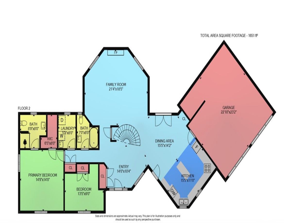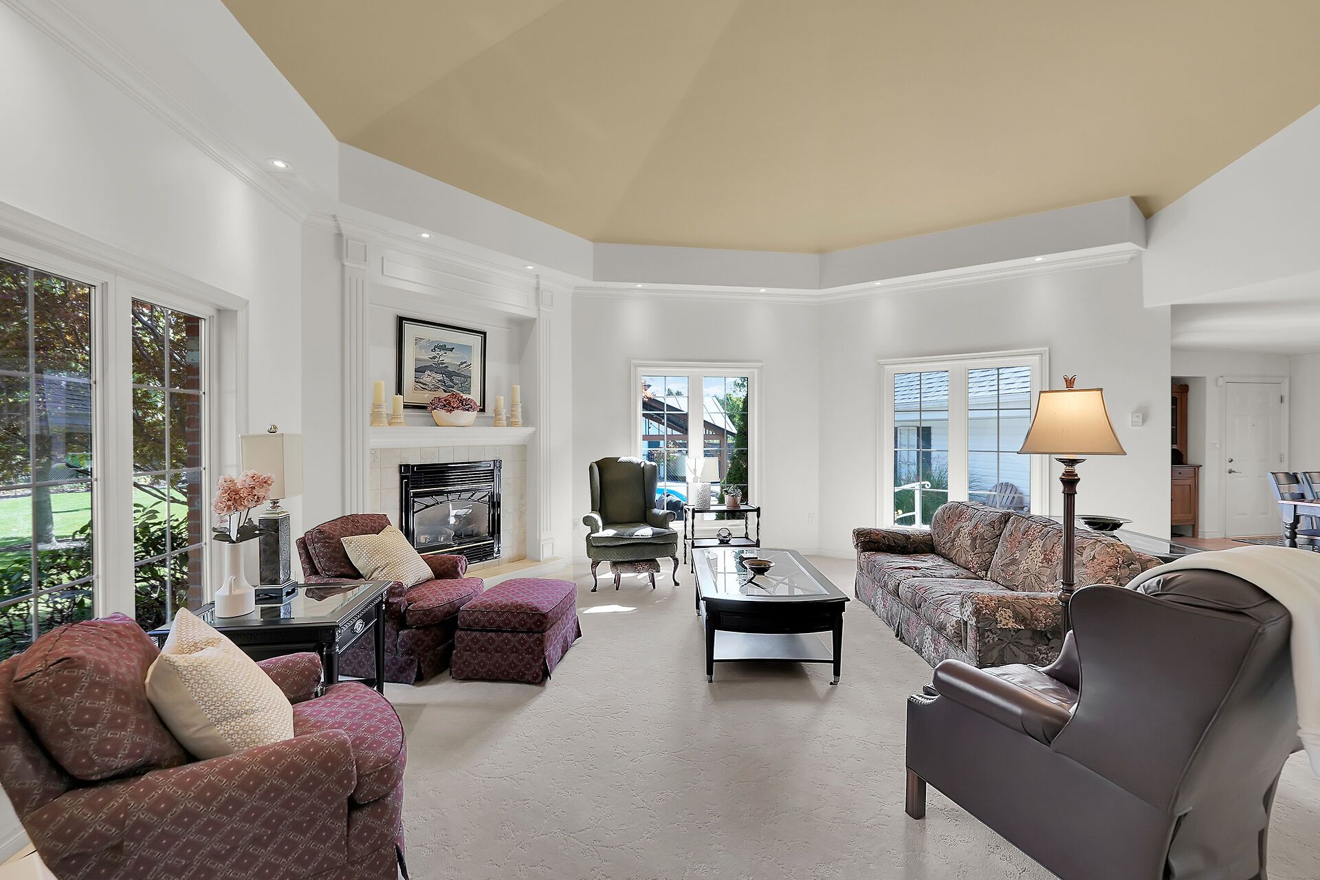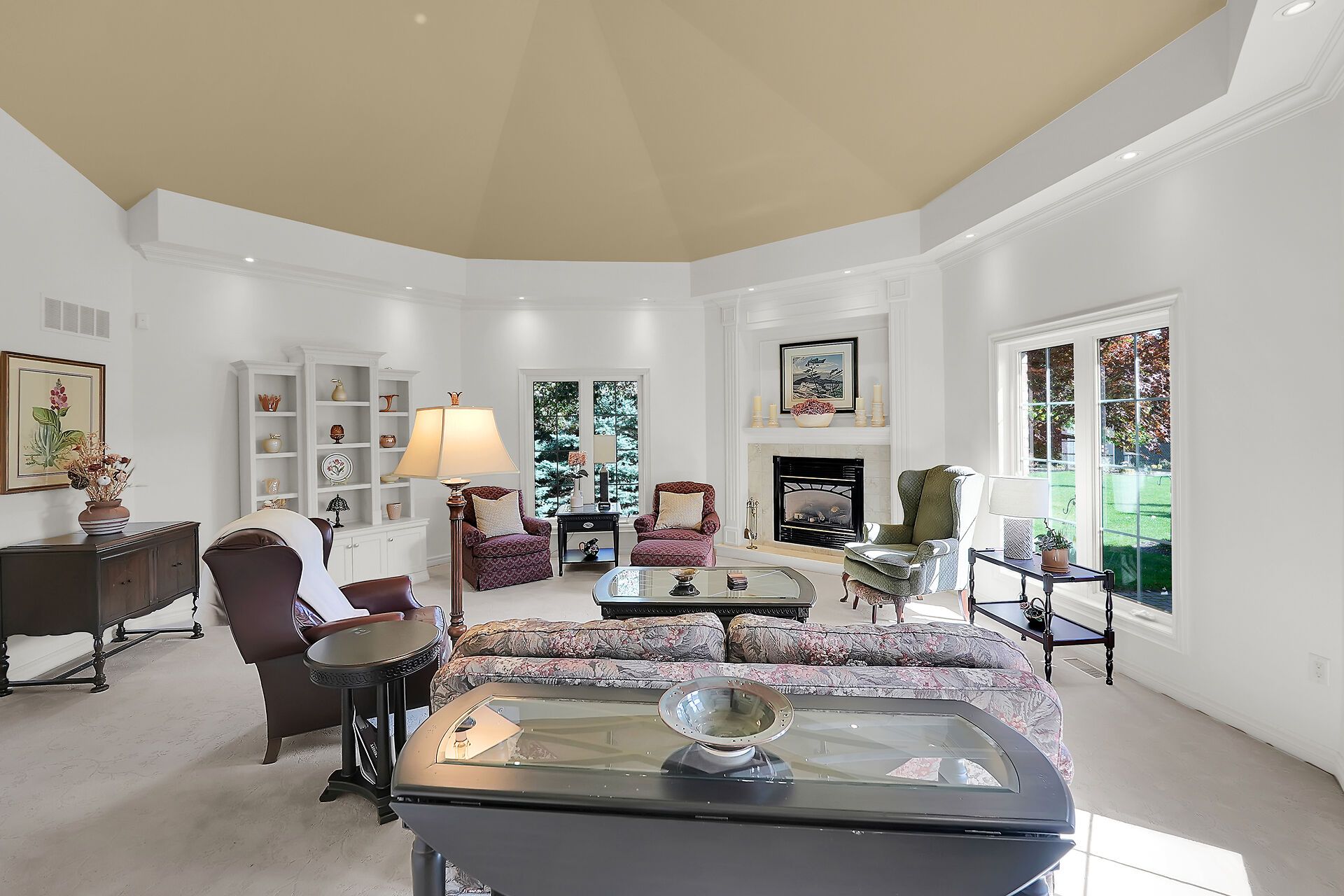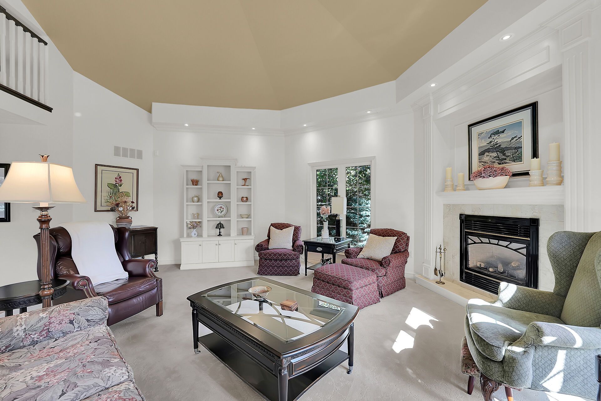 • Spacious main floor family room with vaulted ceiling and fireplace.