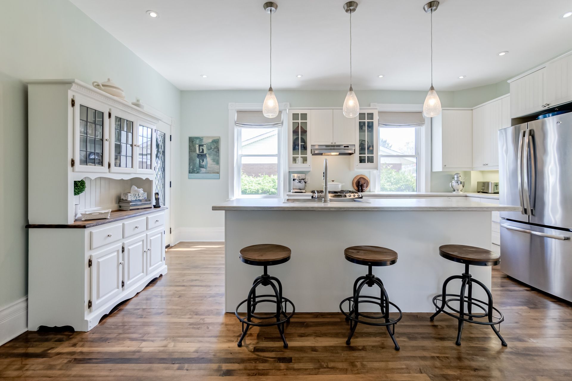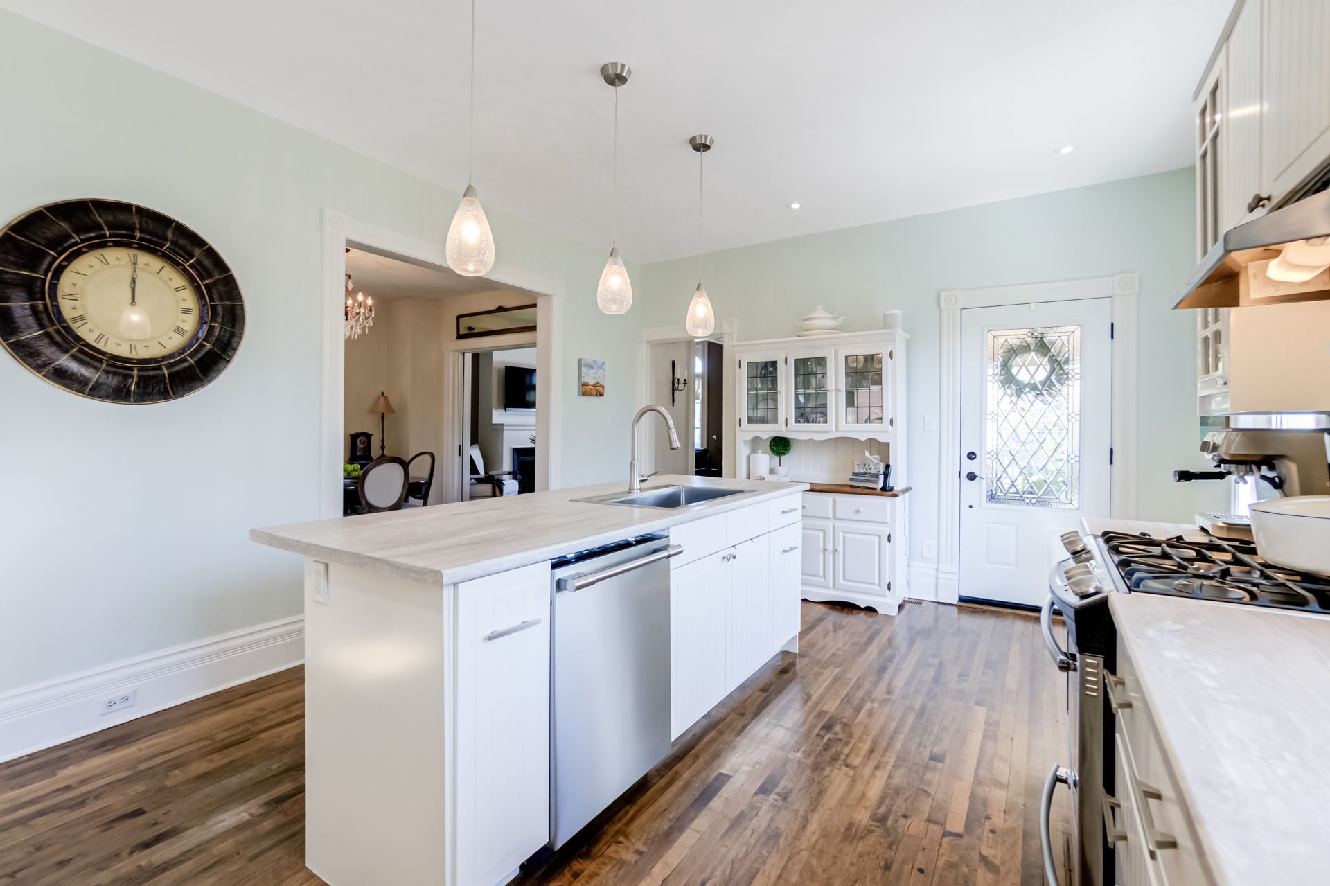 Charming brick home on coveted tree street in downtown collingwood! Located on a desirable corner lot, this gem features a rare in-law suite complete with a full kitchen and bath - ideal for extended family or guests. Step inside and be greeted by original craftsmanship and thoughtful updates throughout. The heart of the home has a bright, sun-filled kitchen, featuring stainless steel appliances, a central island, and pot lighting, with direct access to the welcoming front porch - perfect for morning coffee. The formal dining room, framed by original wood pocket doors, offers an elegant space for entertaining, while the cozy living room is anchored by a regency gas fireplace. Upstairs, you'll find three generously sized bedrooms, a full bath, and a convenient, second laundry area. A spray-foam insulated third floor provides added versatility, currently set up as a family room, bedroom, and office. Built with care and quality, the 22 x 22 insulated double car garage includes its own electrical panel and sits beneath the spacious in-law suite, offering flexible living arrangement or income potential. With two driveways and parking for up to five vehicles, space is never an issue. This home also comes with a fenced backyard and 8 x 12 bc greenhouse with double insulated glass, garden beds and lush landscaping. This is more than just a house - it's a warm, welcoming home full of history, character, modern comfort in one of collingwood's most sought-after neighborhoods. A rare opportunity that's truly a pleasure to view and a delight to own!