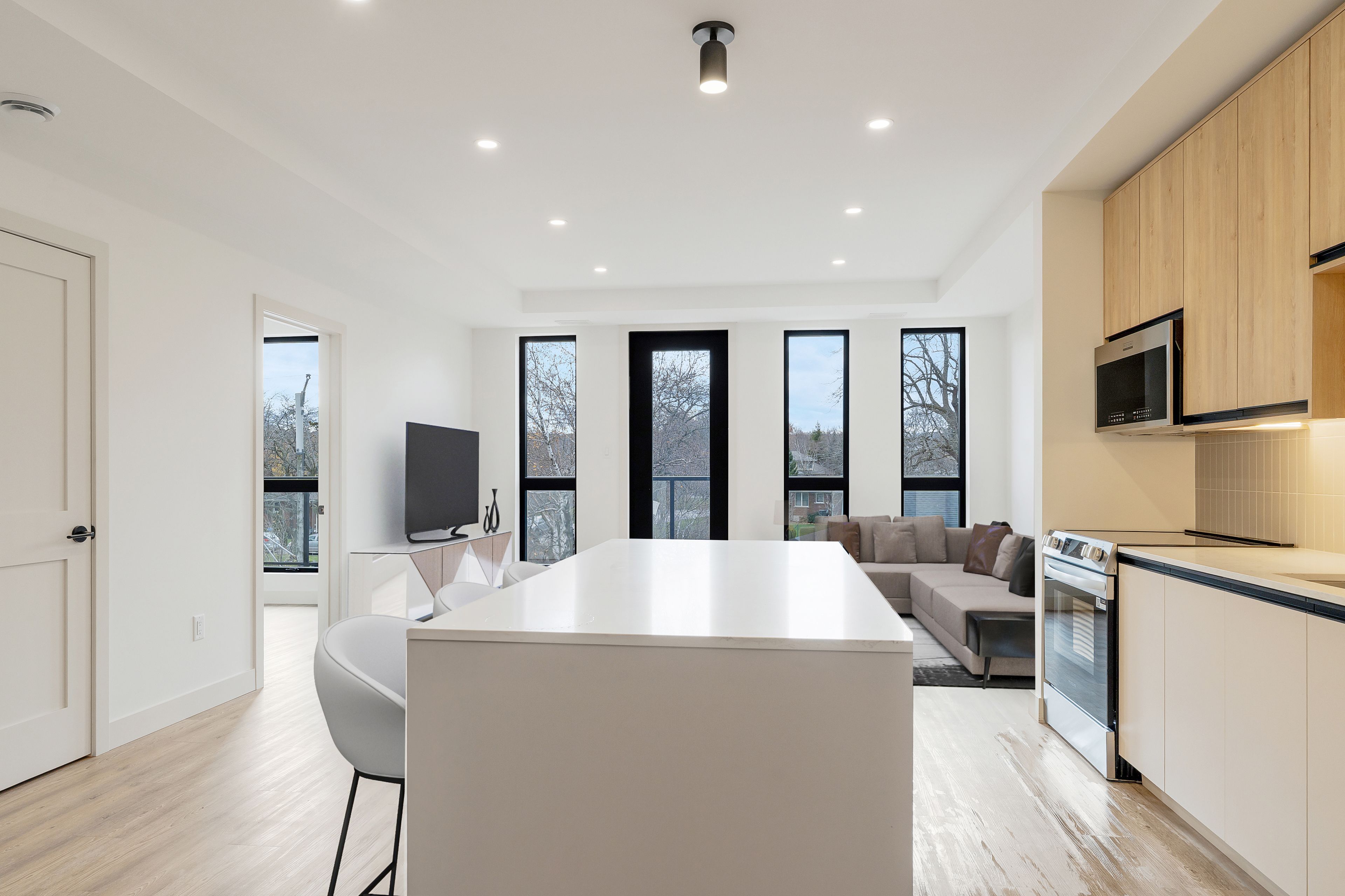 Experience modern living at the madera with assigned secured/heated parking, smart home technology, and instant high-speed internet (included in rate from cogeco) throughout the building. This pet-friendly community offers a safe and welcoming environment for those tenants seeking an upgraded lifestyle. This development offers modern interiors featuring luxury vinyl tile (lvt) in the foyer, kitchen, and living areas, with ceramic tile bathroom floors and tub/shower surrounds. Floor-to-ceiling windows, private balconies, and in-suite laundry are included in every unit, with two-bedroom layouts offering a tub in the main bath and a stand-up shower in the ensuite. Kitchens are equipped with large islands and quartz countertops, custom soft-close cabinetry, polished quartz counters with under mount stainless steel sinks and pull-down faucets, tiled backsplashes, under cabinet led lighting, and a full stainless steel appliance package including dishwasher and microwave. Mechanical and plumbing features include air-source vrf heating and cooling, ervs in each unit, modern plumbing fixtures, domestic hot water provided by an air-source heat pump, and a high-efficiency electric water heater. The building is finished with pot lights throughout, stylish flush-mount fixtures in living/dining areas and bedrooms, a tv-ready living room wall, and energy-efficient led lighting across all common and private spaces