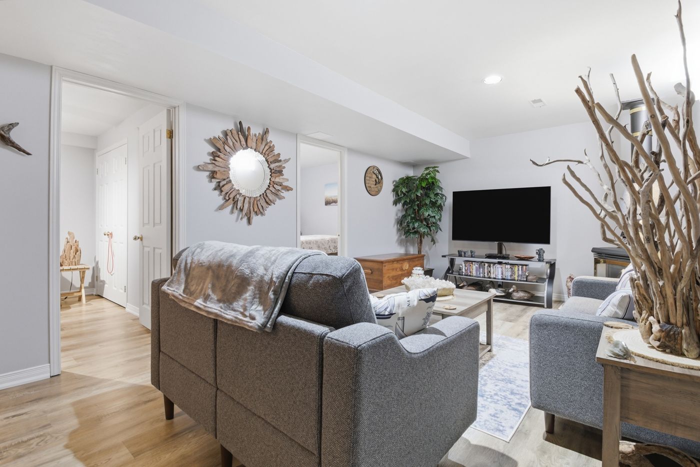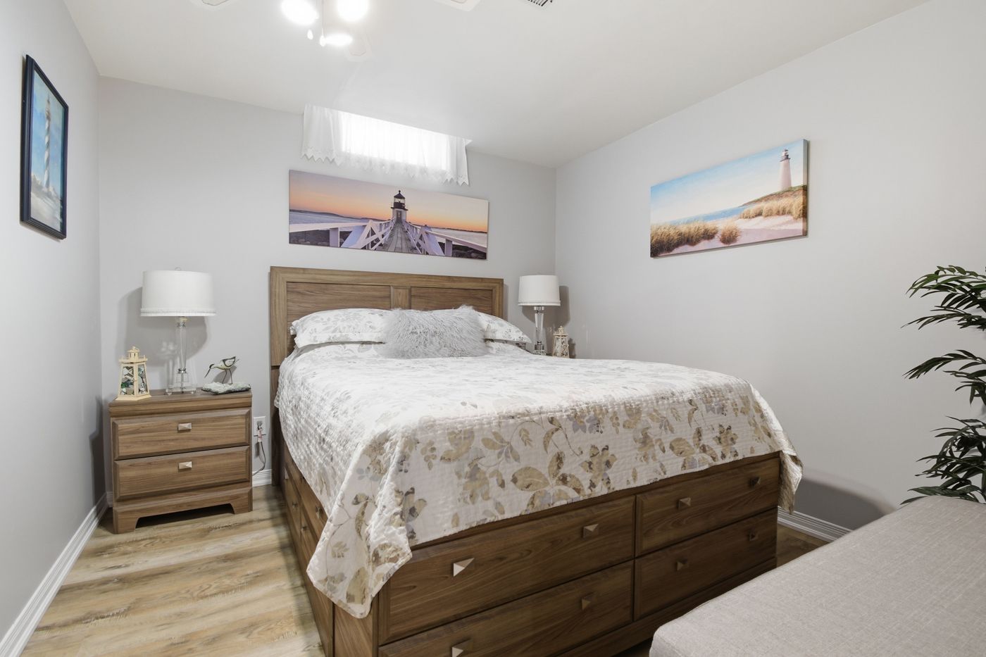 Tucked into a quiet, family-friendly neighbourhood and backing onto konkle creek and a park with winding walking trails, this home offers the perfect blend of nature, space, and convenience. Enjoy quick access to the qew while being just minutes from some of niagara's best wineries and local dining. Don't let the charming exterior fool you-this home offers over 1,800 sqft of finished living space, thoughtfully designed for growing families. The welcoming foyer features ample closet space, a convenient 2-piece bath, main floor laundry, and direct access to the attached single-car garage. The living room is a true standout, with soaring vaulted ceilings that open to the second floor, filling the space with natural light. A cozy gas fireplace anchors the room, which flows seamlessly into the dining area with sliding doors leading to a fully fenced backyard complete with a deck and gazebo - perfect for entertaining or relaxing outdoors. Upstairs, you'll find three spacious bedrooms and a 4-piece bathroom. The fully finished lower level adds incredible versatility with a large rec room featuring a second gas fireplace, two additional bedrooms or ideal work-from-home offices, and a bonus 3-piece bathroom. Originally built in 1995, this home has seen numerous updates, including roof (2009), hot water tank (2014), furnace and a/c (2022), updated flooring on the main and lower levels, fresh paint, and updated upstairs windows (2012). Set on a beautifully maintained 65 x 109 ft lot, the outdoor space is just as impressive-especially in bloom. Come spring, the gardens truly shine, creating a private and picturesque backyard retreat.