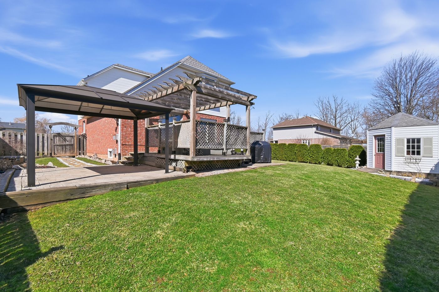 • Fenced backyard with deck and gazebo for outdoor entertaining.