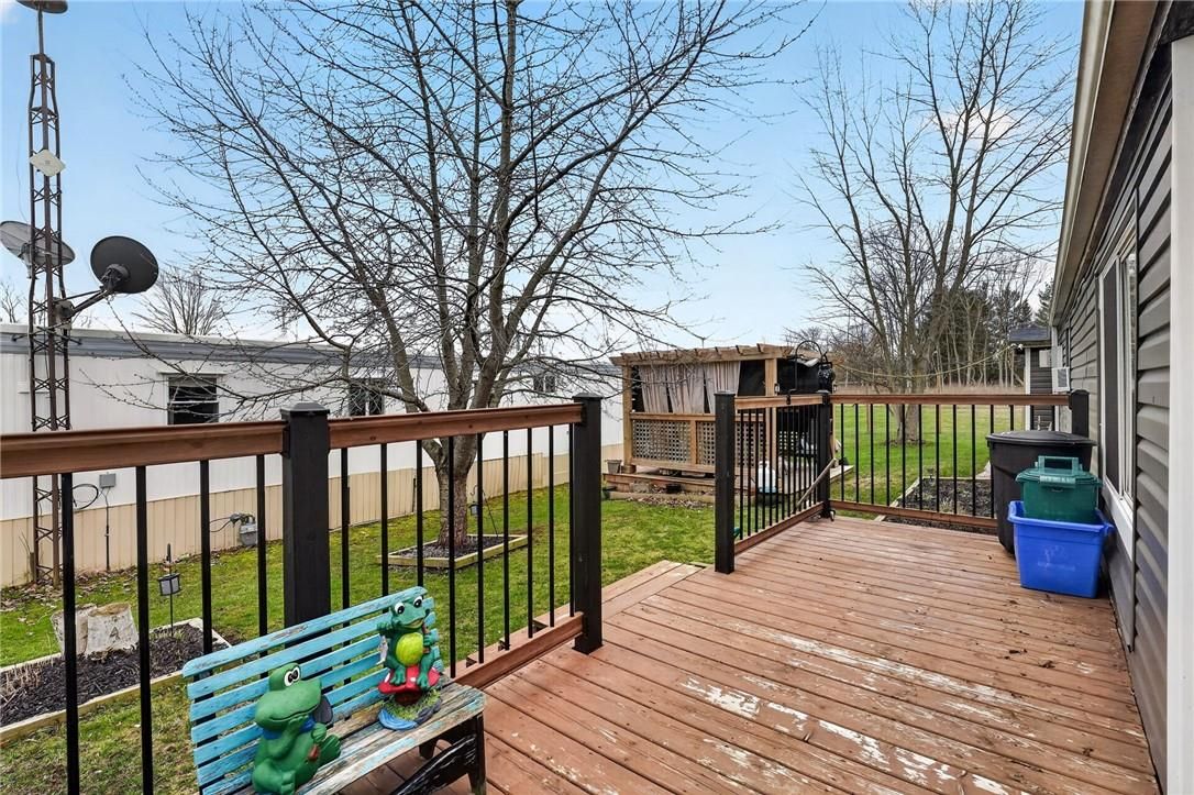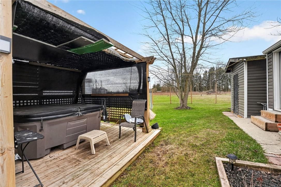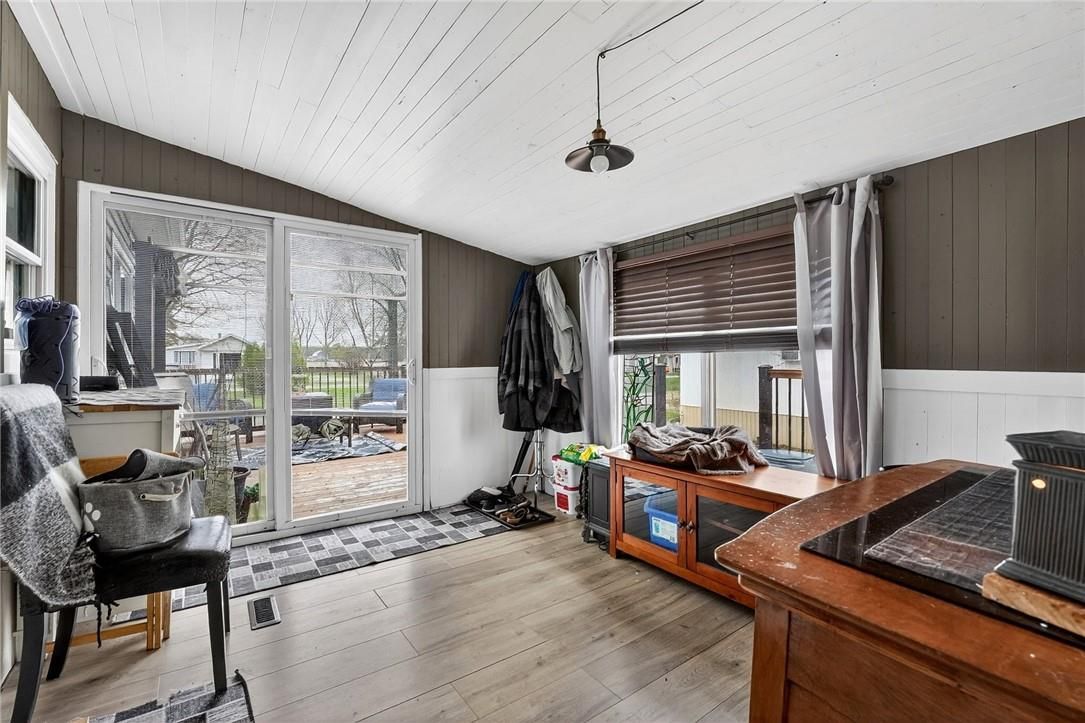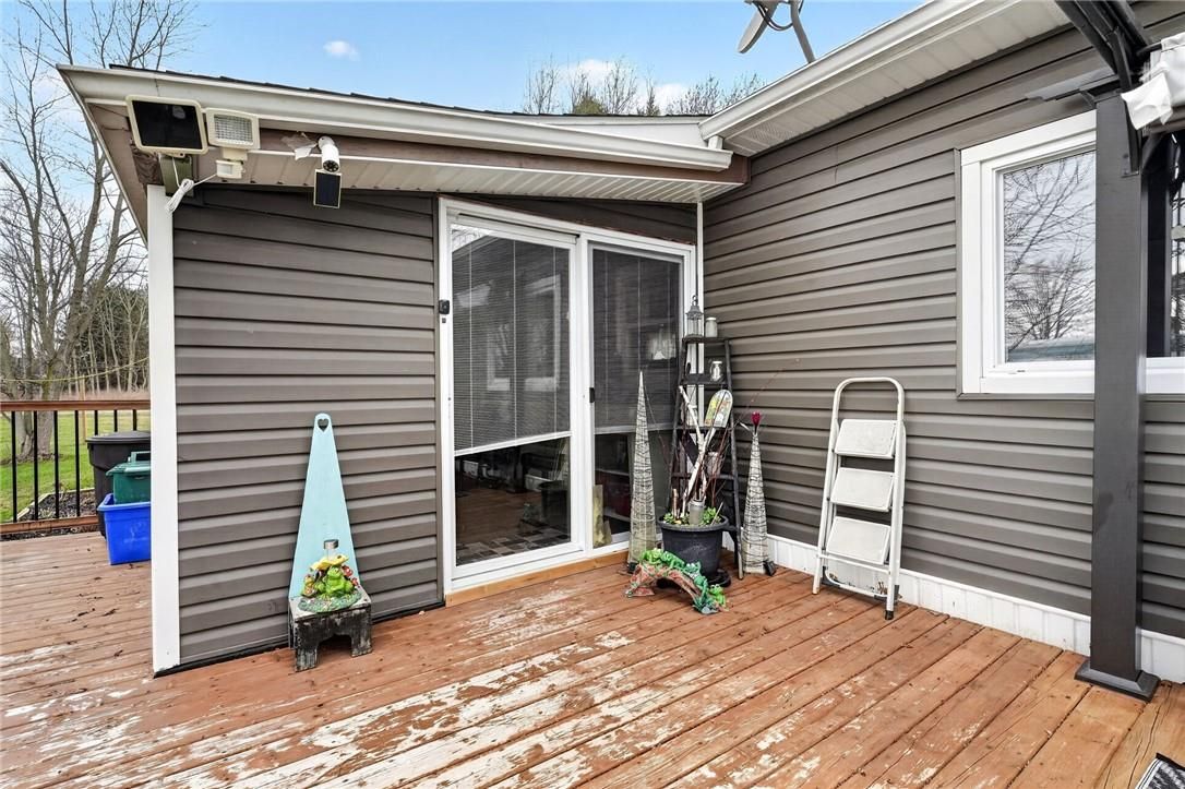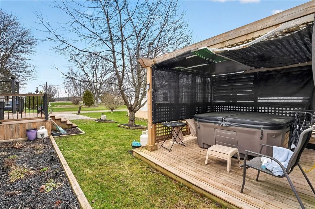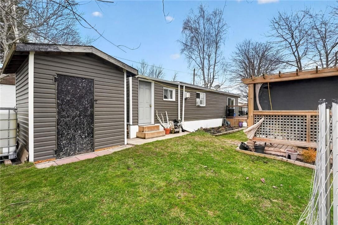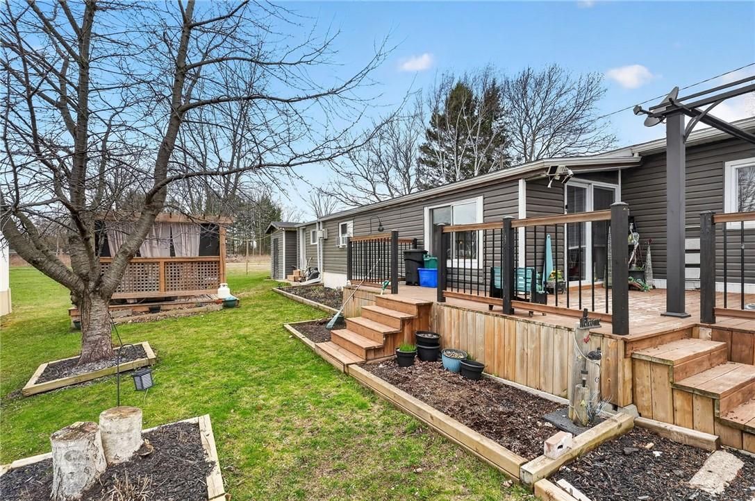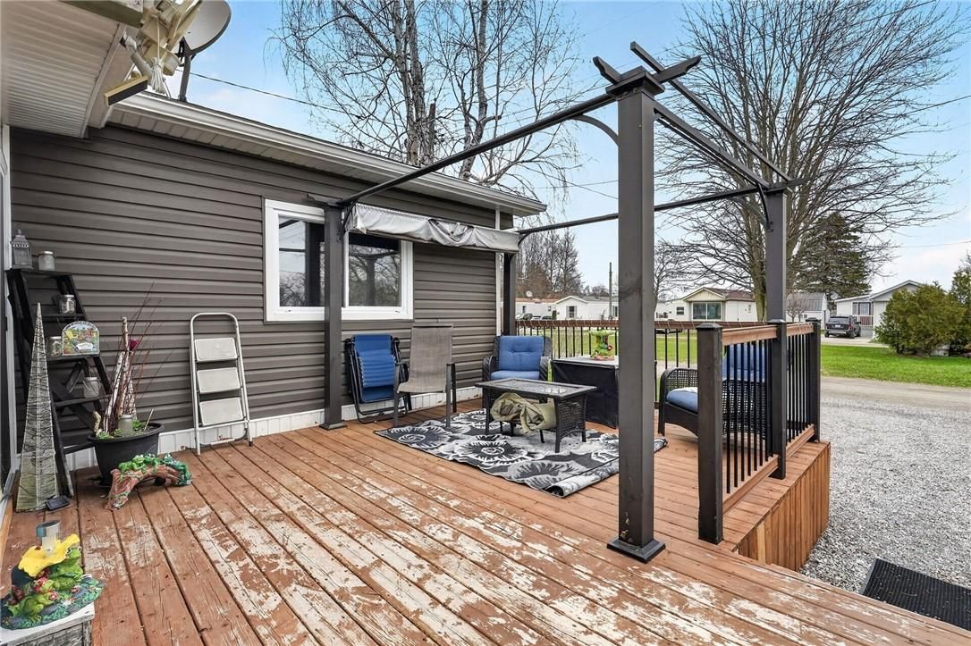Quiet, year-round country living in ellsworth acres mobile home community in wainfleet. Whether you're downsizing, retiring, or simply looking to escape the city, this well-maintained home offers comfortable one-level living with thoughtful updates throughout. This 1,005 sq ft bungalow features a spacious open-concept living room and kitchen with vaulted ceilings, pot lights, and newer luxury vinyl plank flooring. The kitchen is equipped with stainless steel appliances, offering both style and functionality. The primary bedroom is generously sized and includes a natural gas stove and plush carpeting. A second bedroom is located at the rear of the home - great for guests, kids, or a home office. Enjoy the bright sunroom with patio doors leading to a 16' x 12' deck-ideal for entertaining or relaxing outdoors. The property also includes a 10' x 10' covered gazebo area (perfect for a hot tub) and an 8' x 8' shed for additional storage. Recent updates include new vinyl siding (approx. 2019) and central a/c (approx. 2020), shingles replaced in approx. 2016, a new furnace (nov 2025), and an owned tankless hot water system and water softener. Updated windows add to the home's efficiency and appeal. A move-in ready option offering comfort, charm, and low-maintenance living in a peaceful community setting.