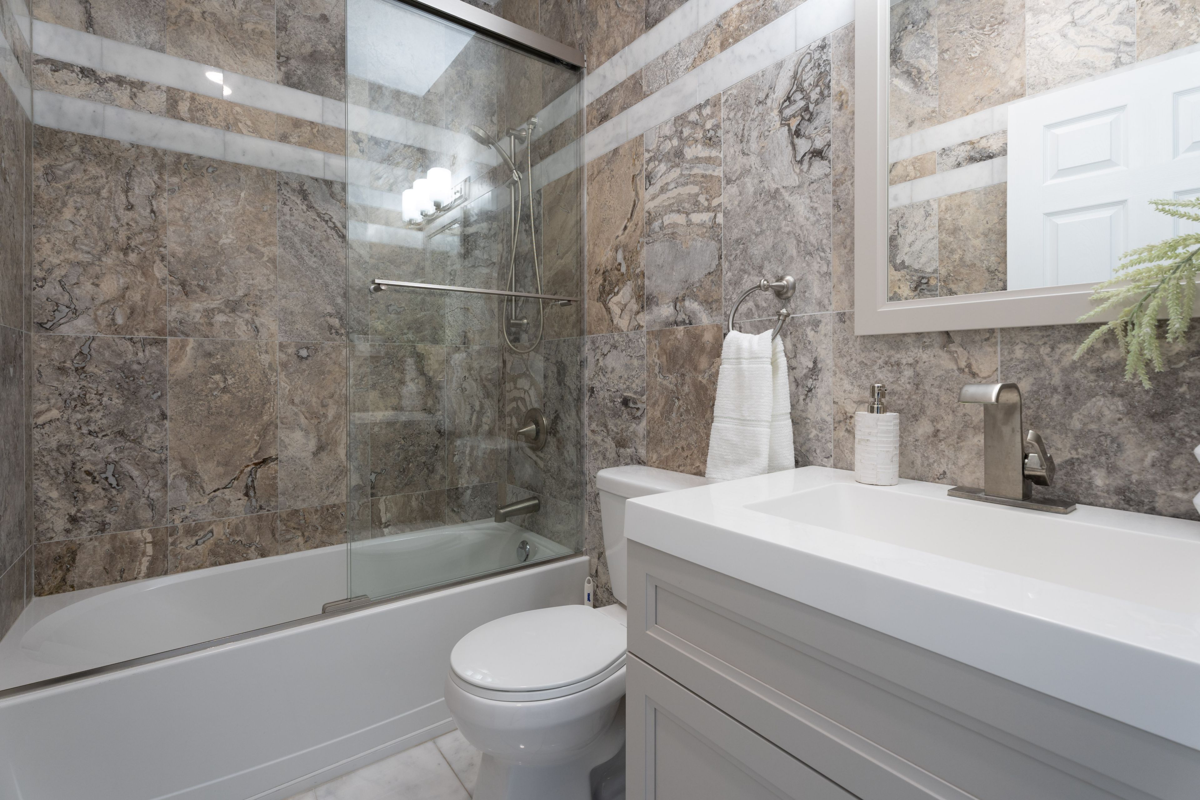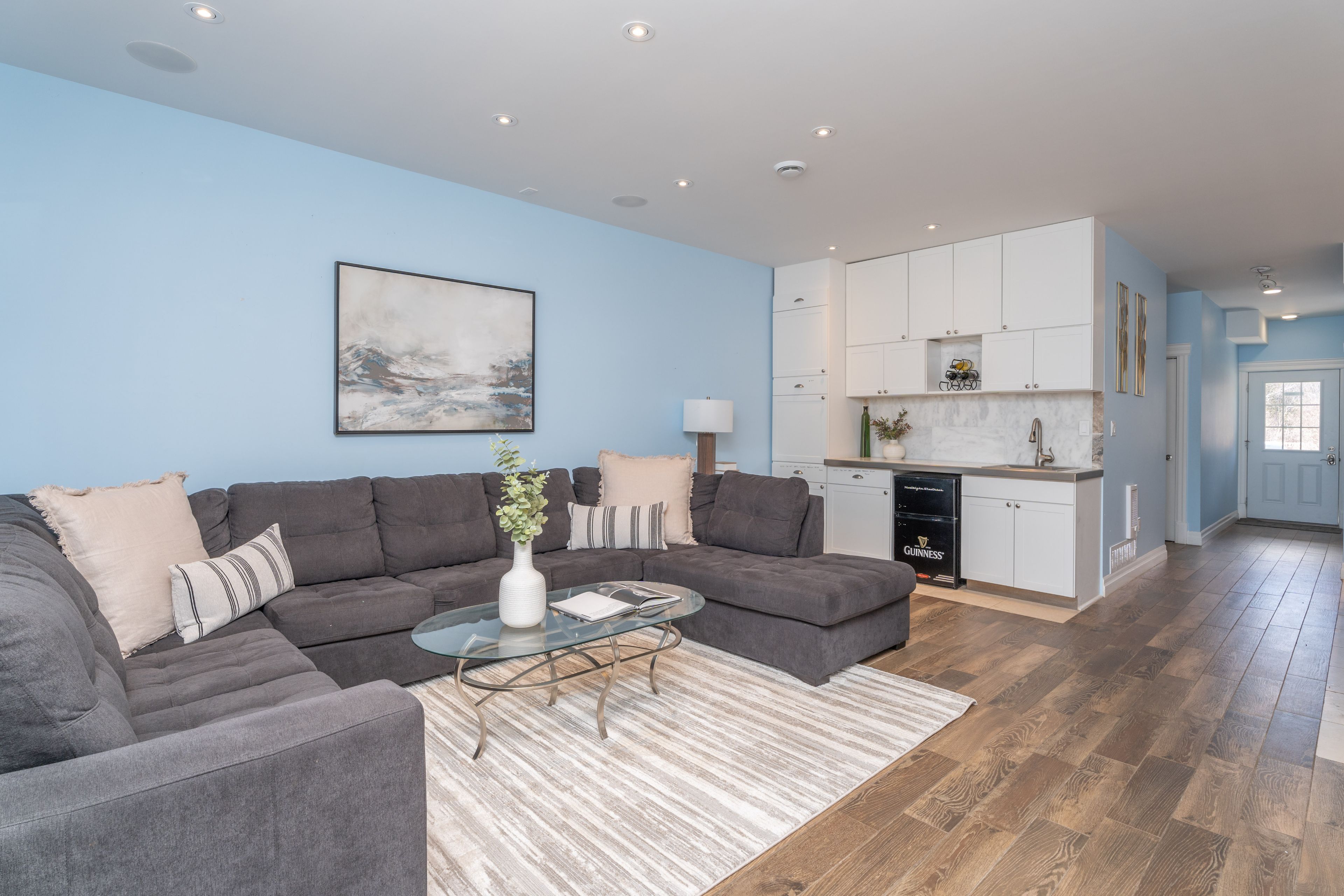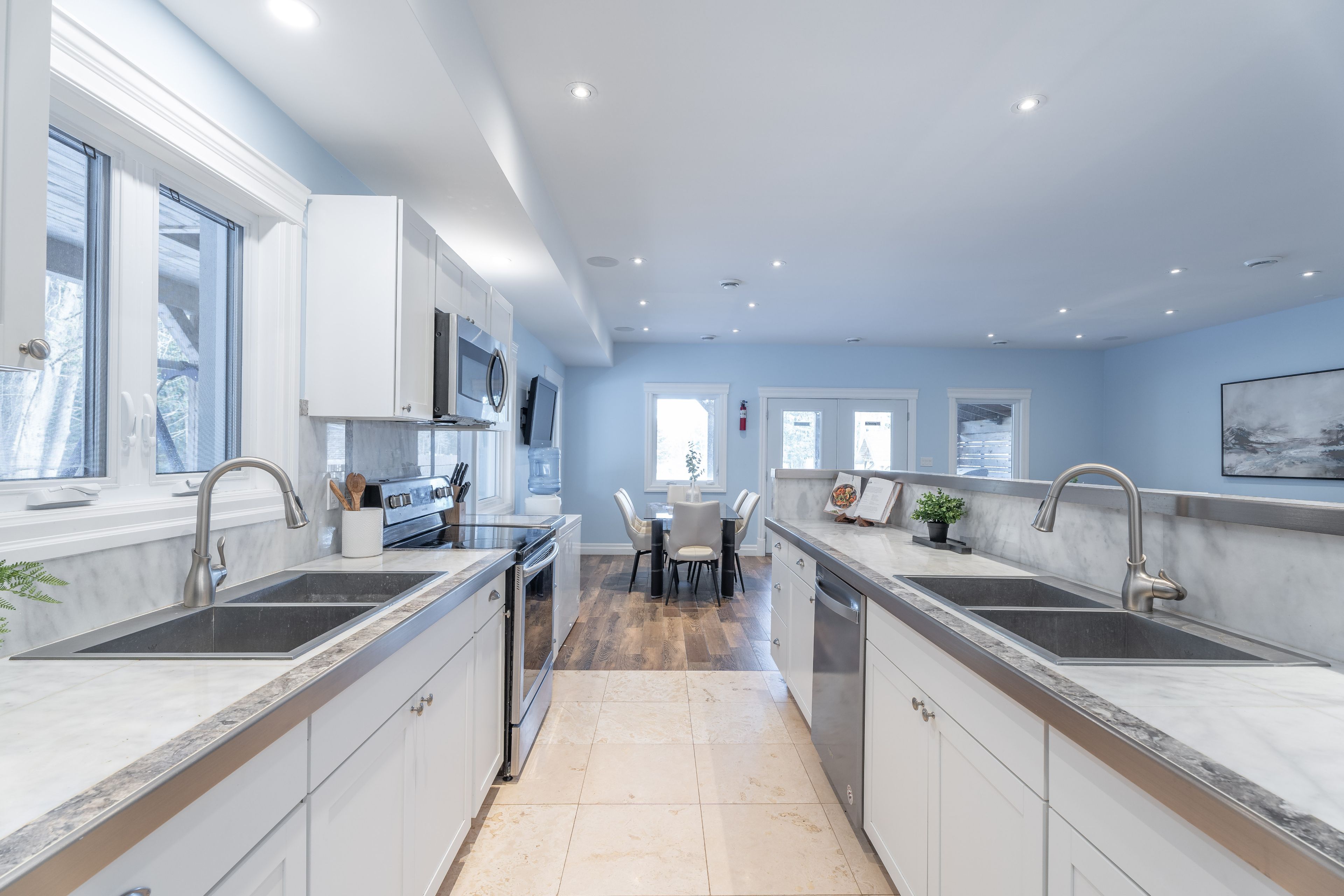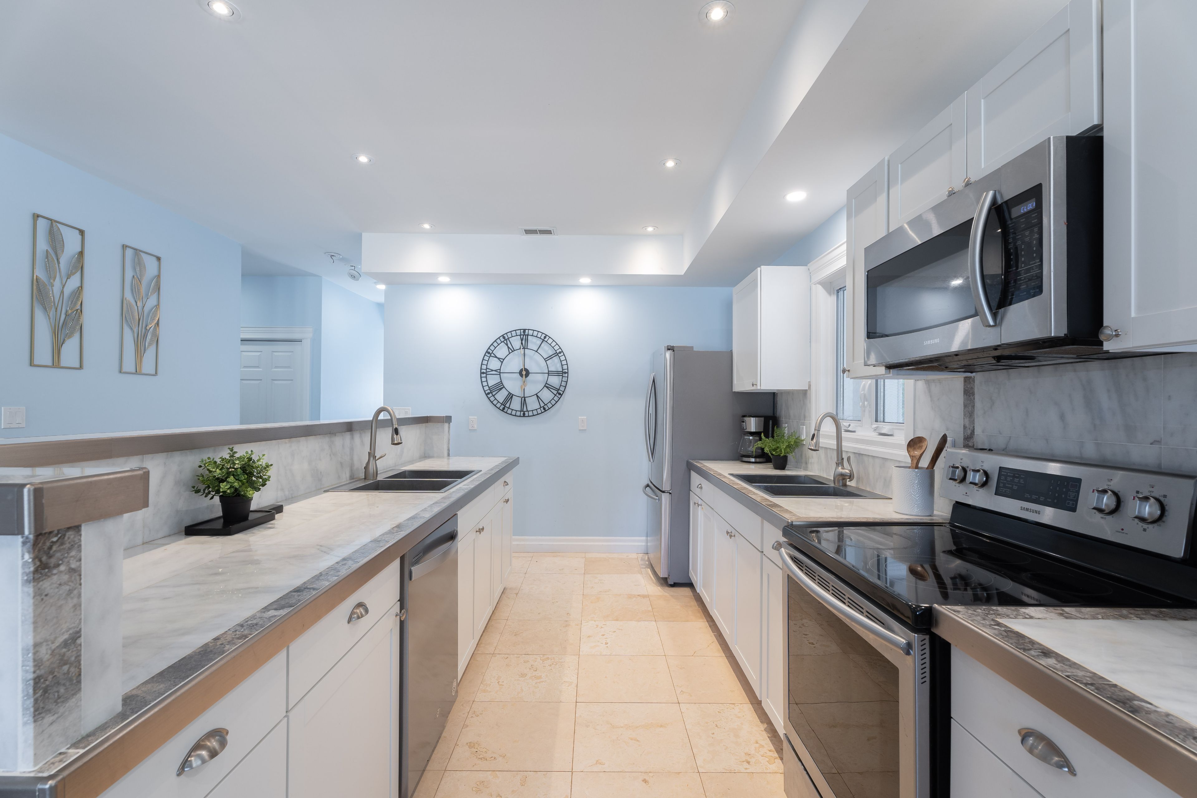 • Modern kitchen with high-end appliances and expansive counter space.