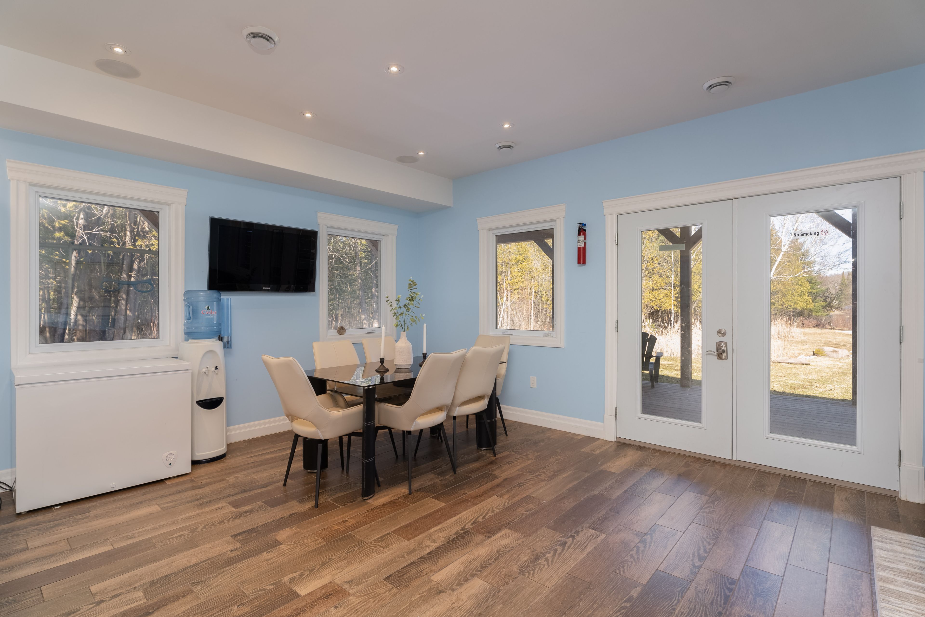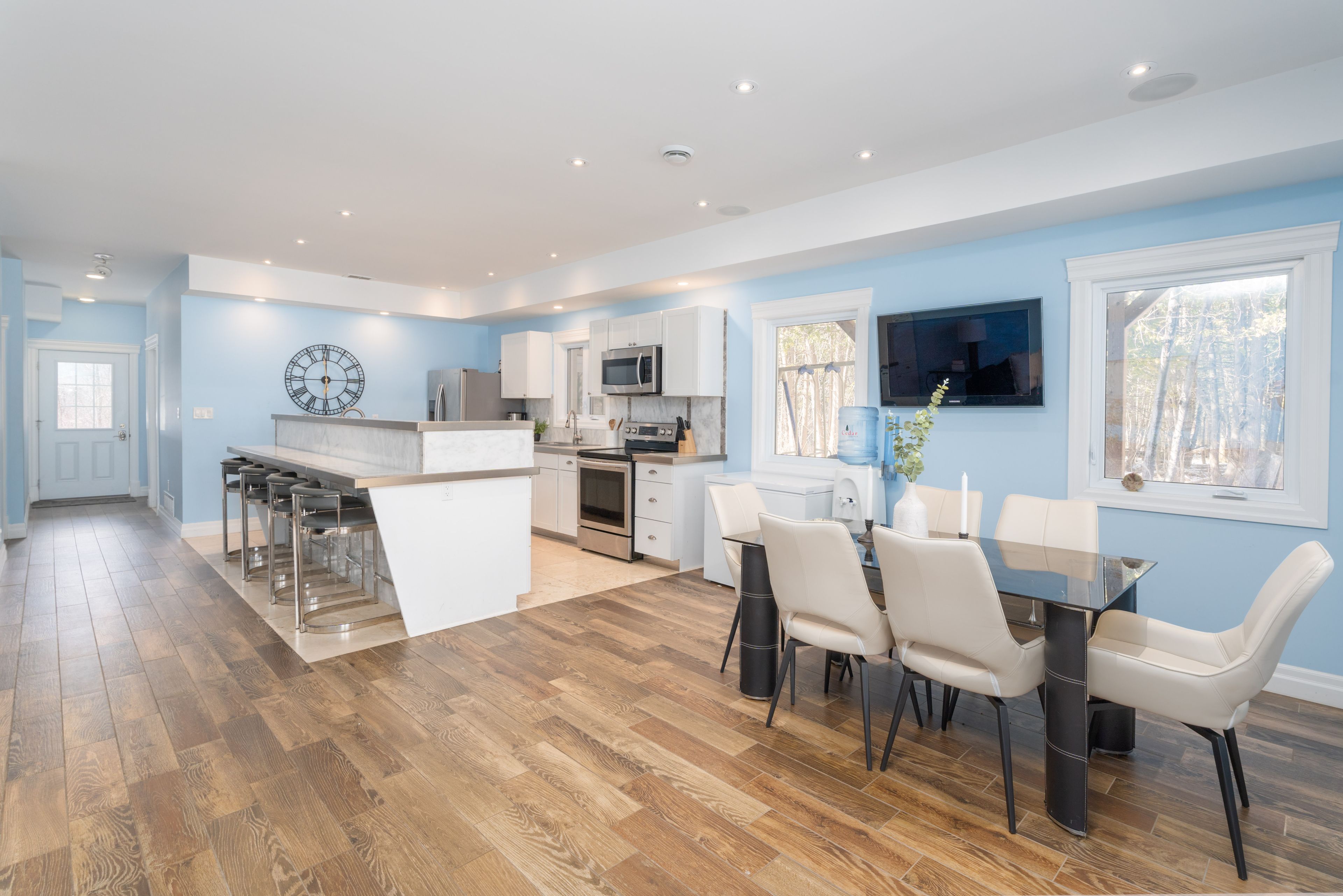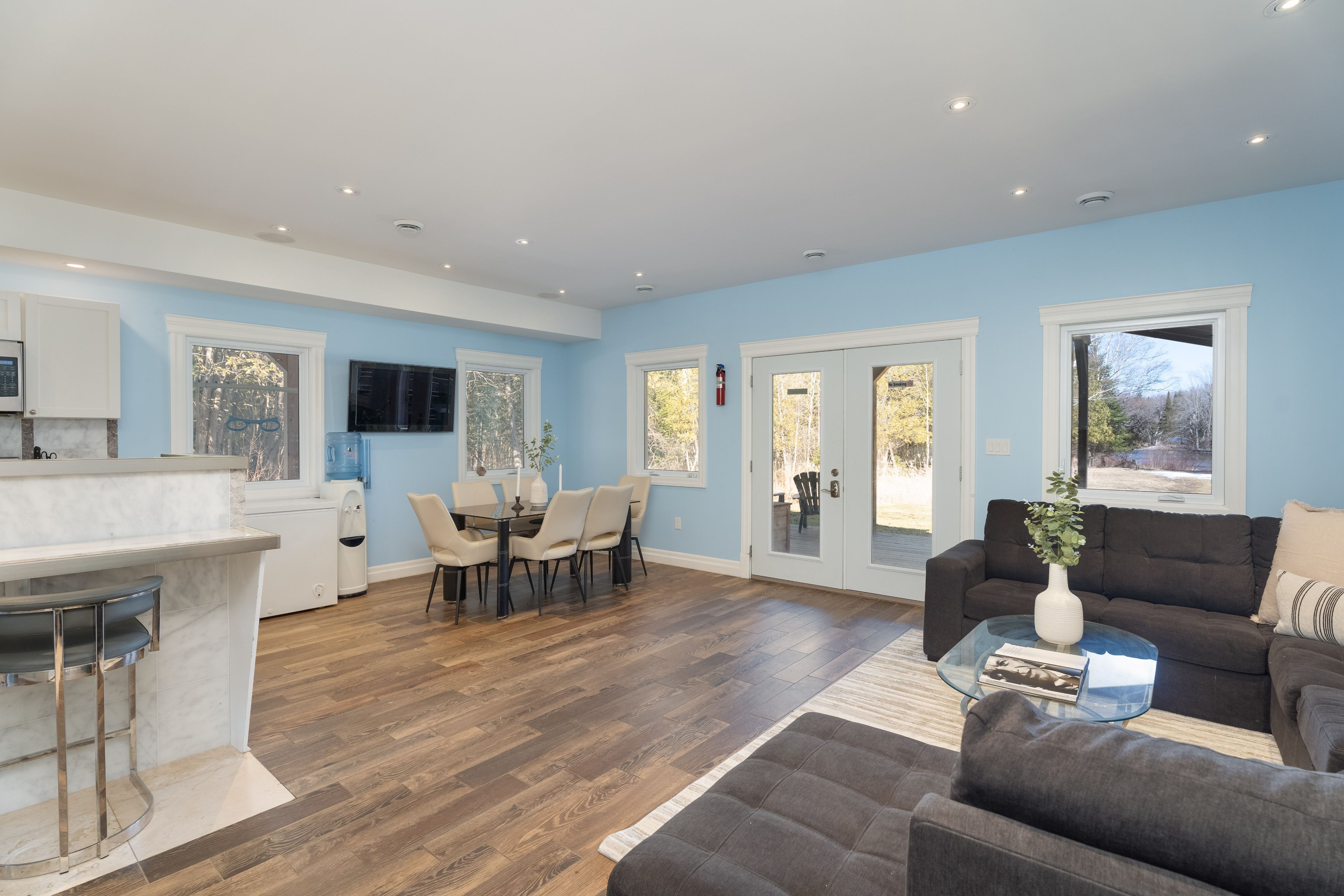 Not to miss!!!! Fully furnished!!! Ready to move-in!! A luxurious 5 bed+5 bath, modern, elegant, cottage in bobcaygeon, gem of kawartha lakes. Nestled on nearly 3. 5 acres along scenic bass lake rd. This retreat offers privacy, high-end finishes, and smart design. All bedrooms feature private balconies with stunning water views, en-suites, and heated washroom floors. Step into a contemporary open-concept living space with expensive stone counter-tops, two double sinks, a premium samsung dishwasher, and a chef's dream kitchen with led-lit breakfast island, stainless steel appliances, and a wet bar. The wraparound deck, showcasing pot lights, 3 skylights, glass railings, solar-lit bbq area, and direct gas hookup. Enjoy year-round comfort with r65 insulation on the top floor and r45 on the other floors emergency electric heaters on every floor, and a powerful auto generator capable of supporting the entire home. Hardwood flooring on the 2nd and 3rd levels adds warmth and sophistication, while built-in speakers with room-by-room control create the perfect ambiance. Outdoors, a heated pipeline from the well, a top-tier septic system with high-water alarm, a separate gazebo, a spacious water patio, and a floating dock for endless lakefront enjoyment. 5 mins to downtown bobcaygeon, proximity to fenelon falls, year around festivals, gatherings & enjoyment.