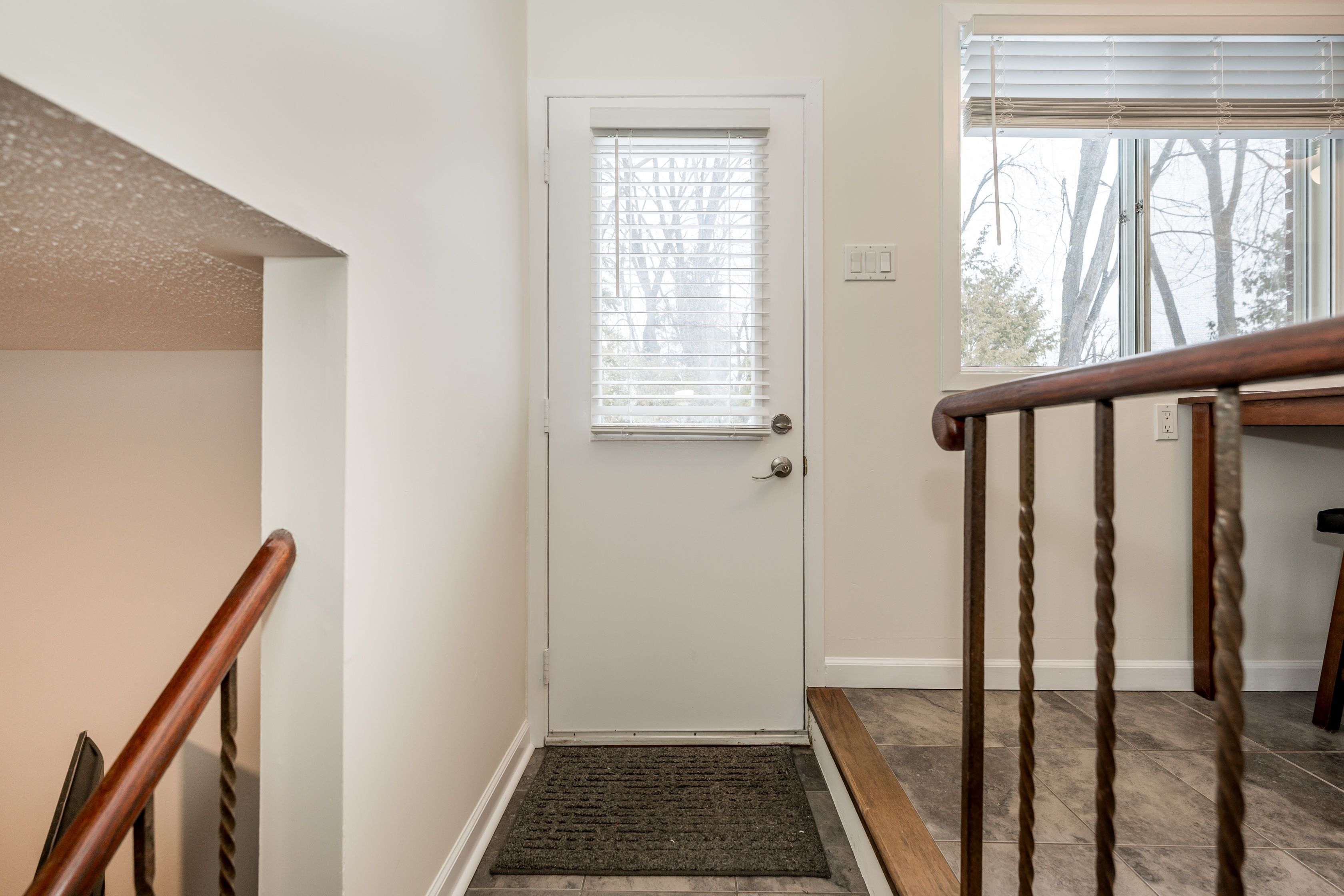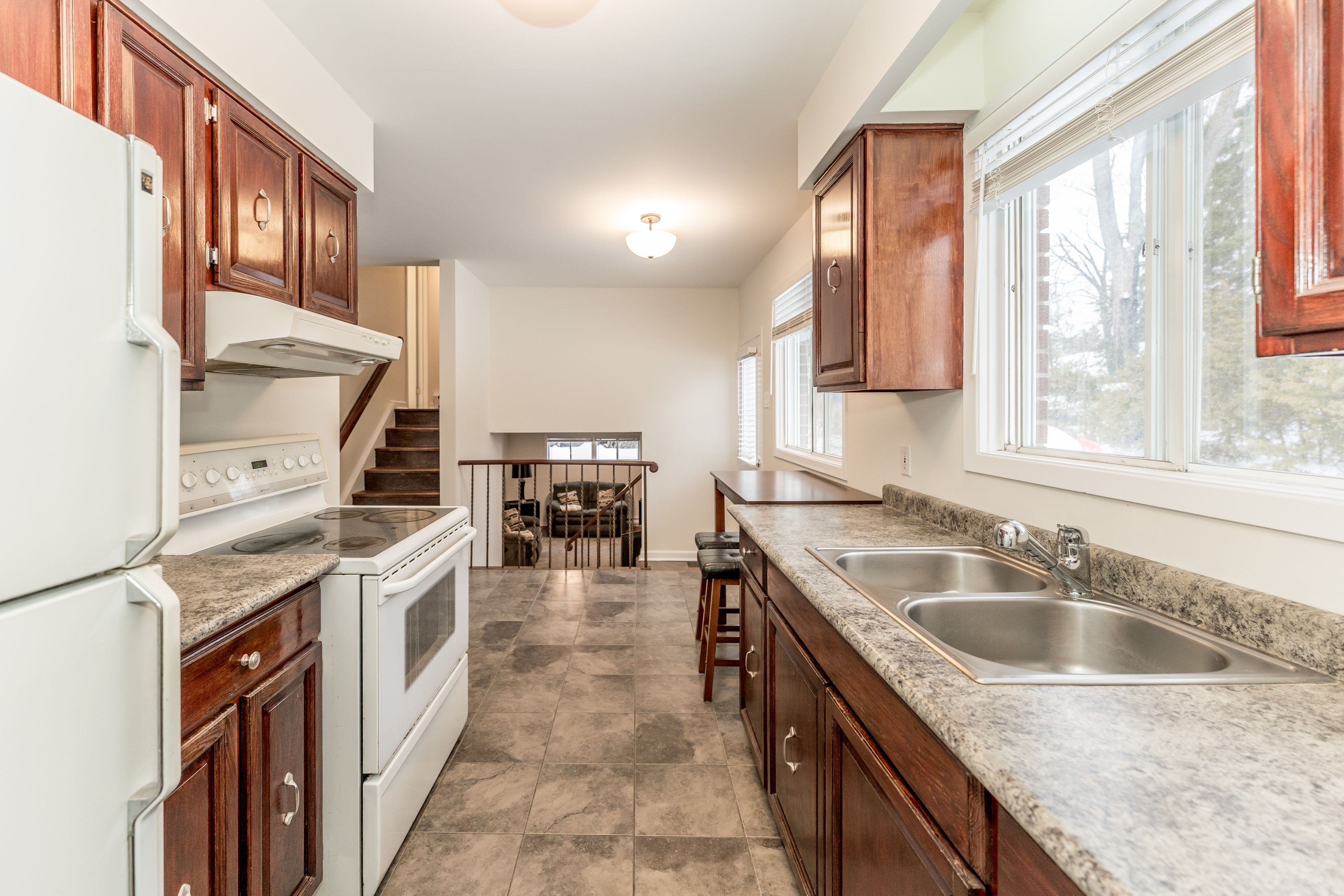 • L-shaped kitchen with modern appliances and access to the side yard.