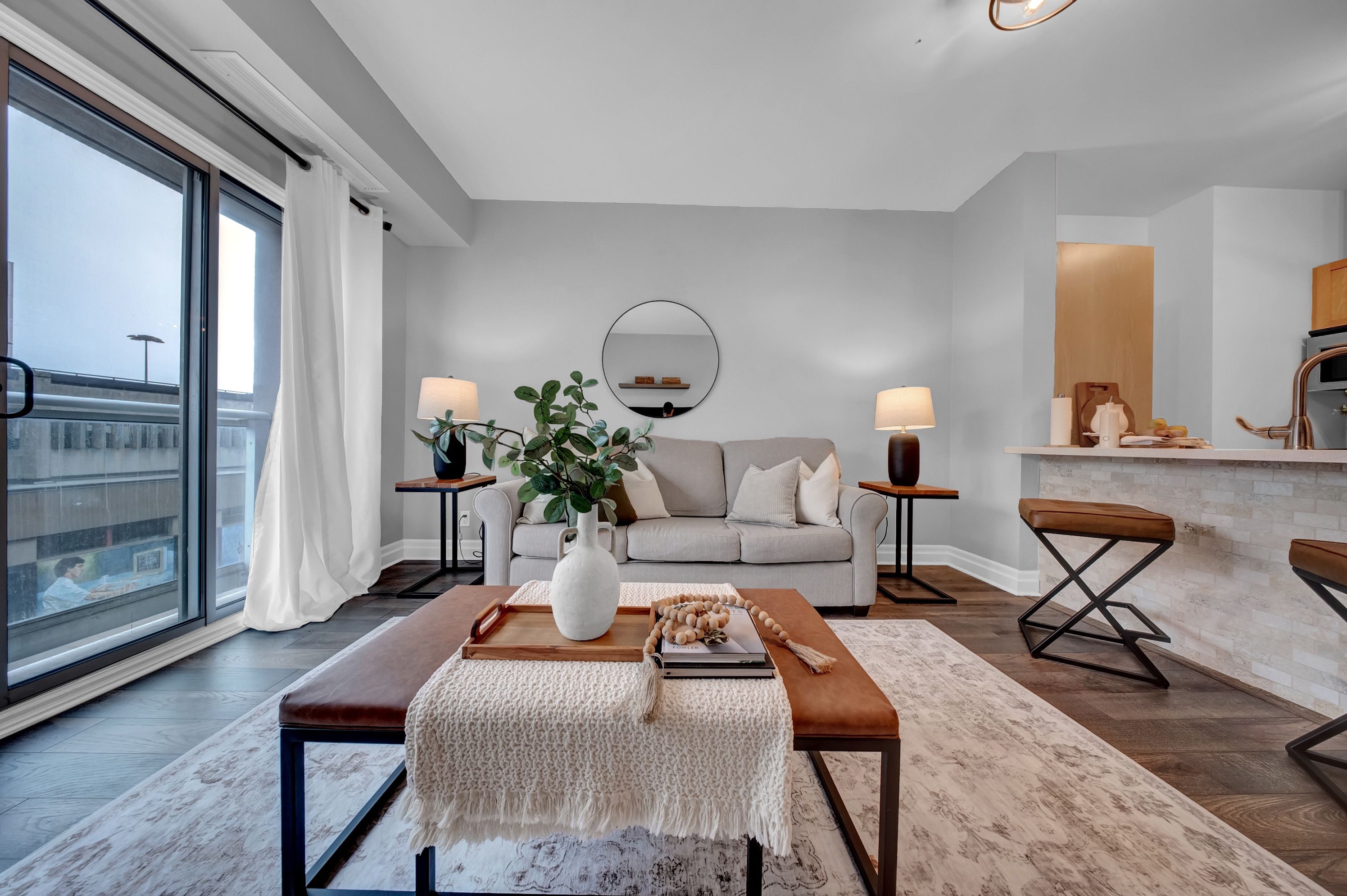 • Spacious layout with 9-ft ceilings and large windows for great city views.