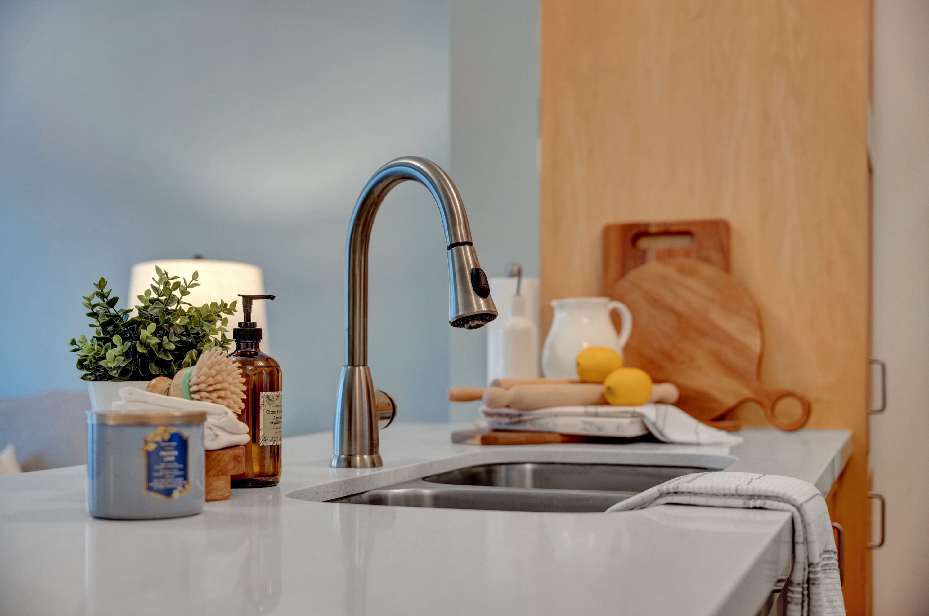 • Modern kitchen features quartz countertops and stainless steel appliances.