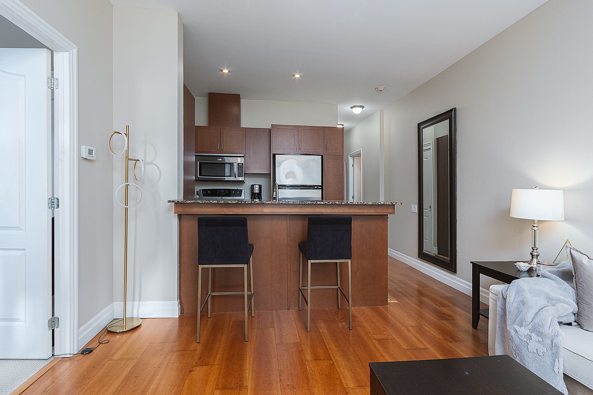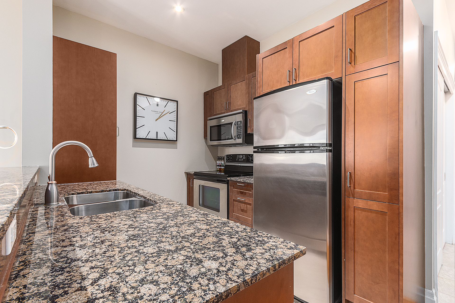 • Stylish open concept condo with upgraded kitchen and granite counters.